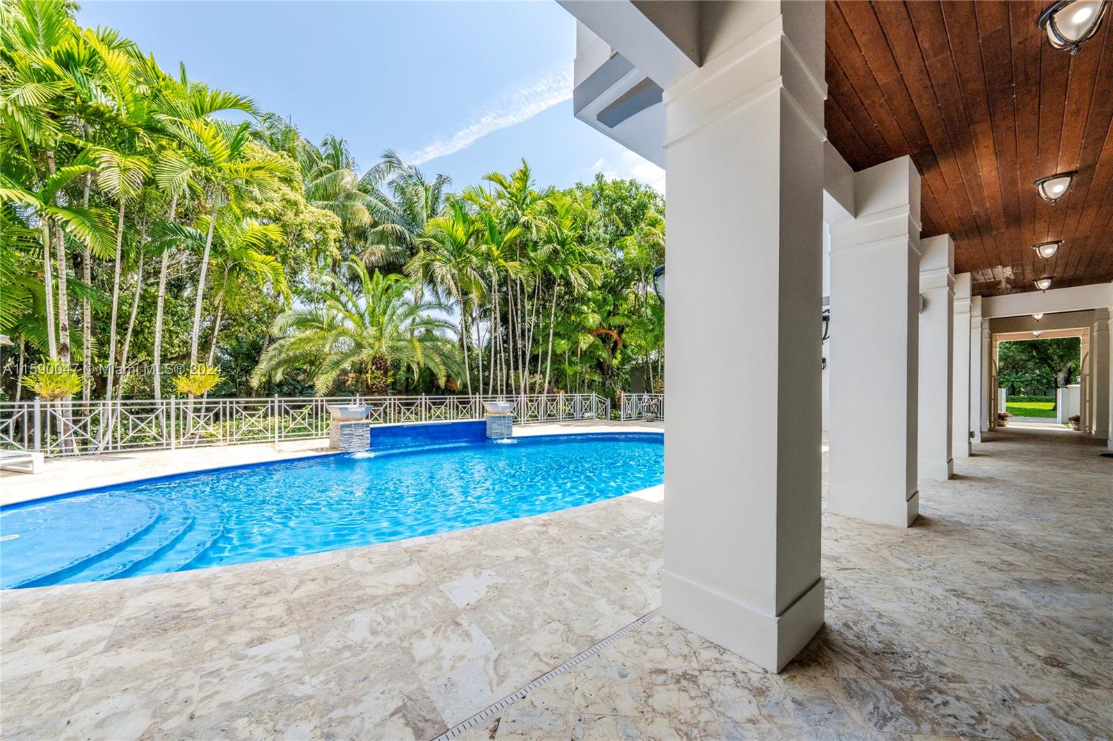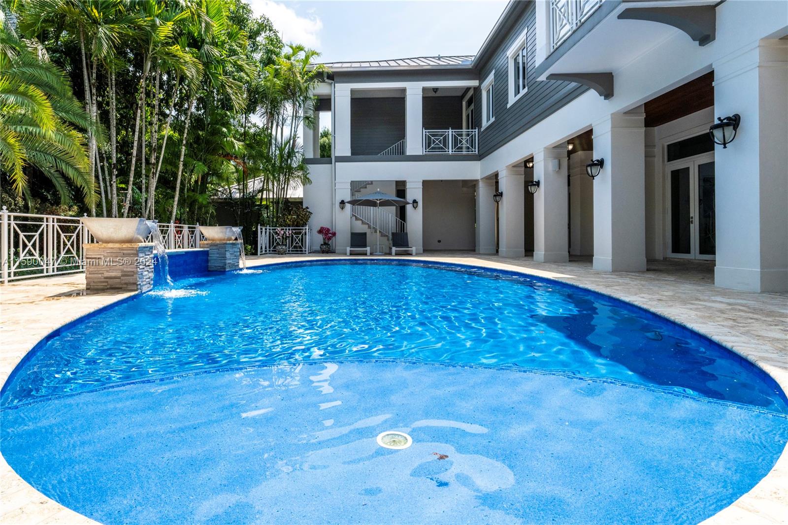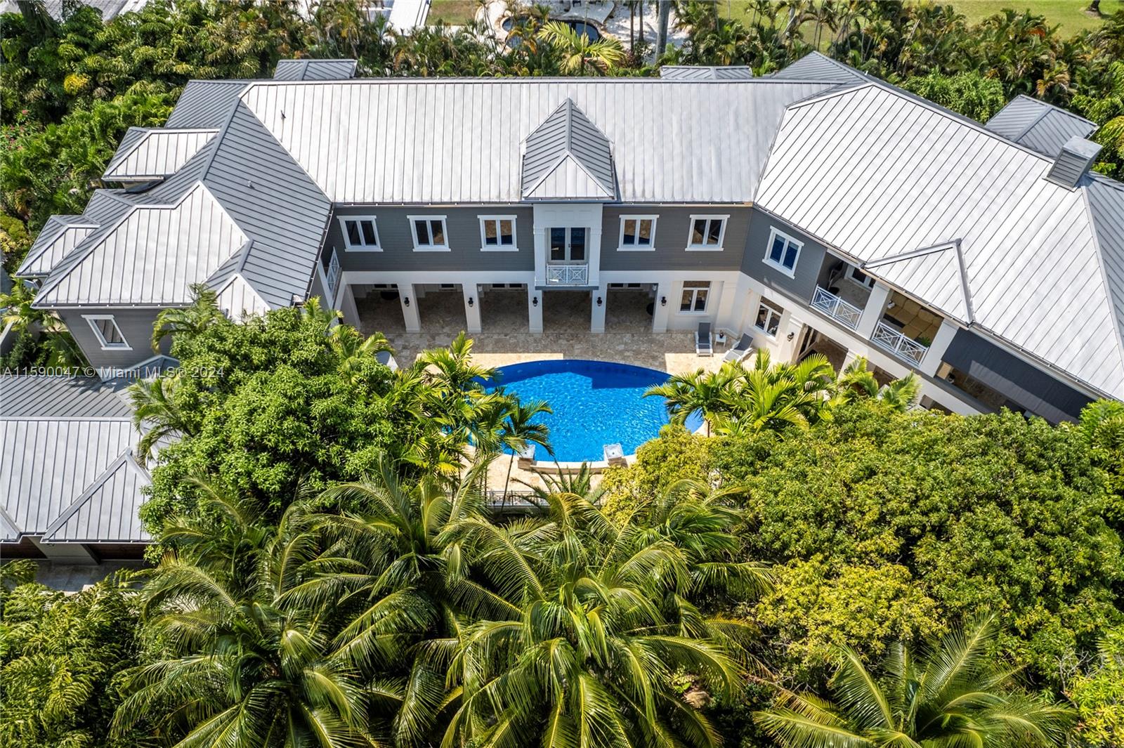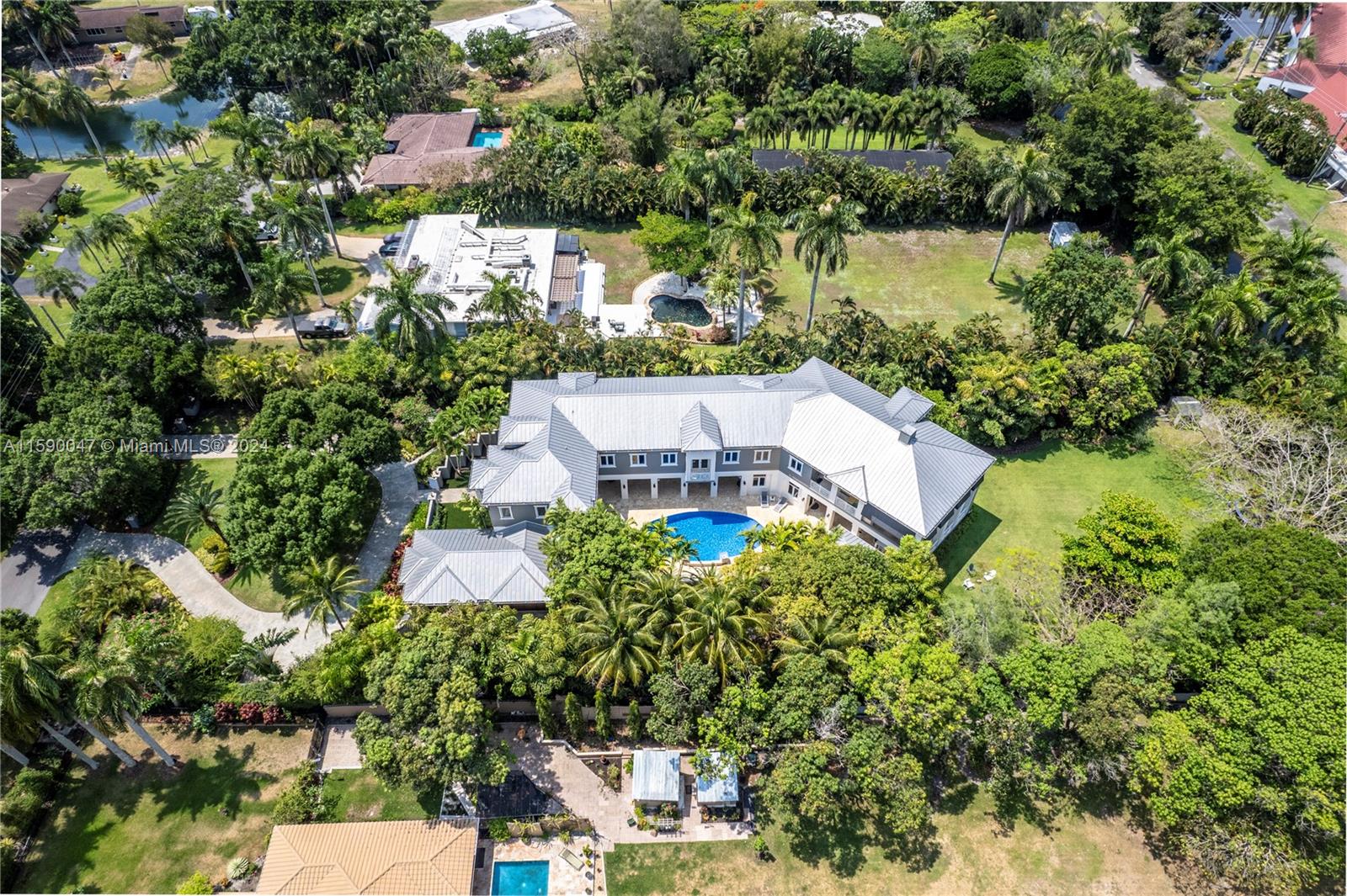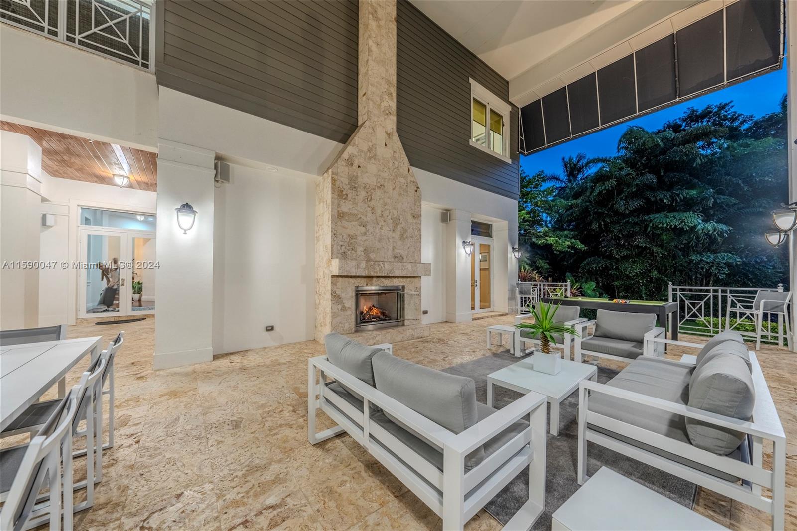Enter through a private gate to find luxury at every turn. The grand living room boasts 28-foot ceilings and elegant pine floors throughout, and the gourmet kitchen impresses with a 12-foot island, 6-burner gas stove, Sub-Zero refrigerator, dual Wolf ovens, and a walk-in pantry. Set on a meticulously landscaped 1.3-acre lot, the 9,000+ square foot estate features 6 beds, 6 baths, an office, and a 4-car garage; cypress ceilings, a Dominican coral deck, and a 30-foot outdoor gas fireplace create a magical ambiance. There are multiple terraces, 2 outdoor kitchens, 5 A/C units, 2 tankless water heaters, a metal roof, impact glass, a guest house, and maid quarters. A brilliant combination of impeccable craftsmanship, timeless architecture & incredible finishes.