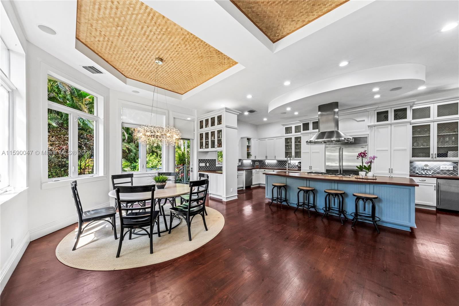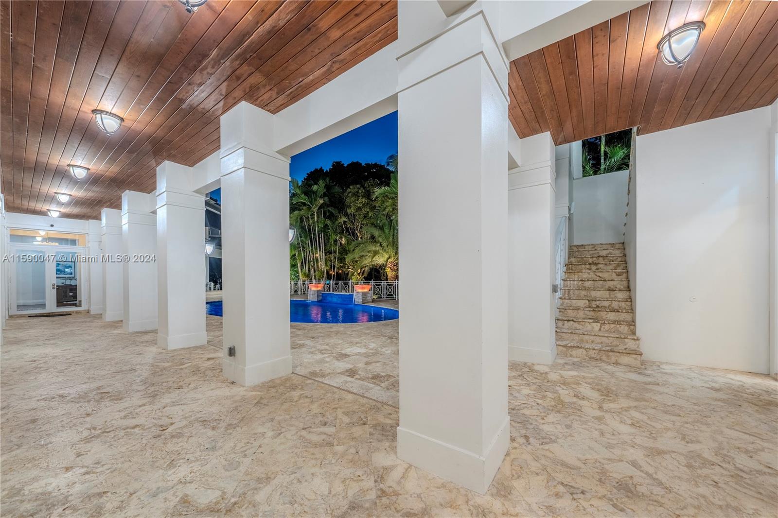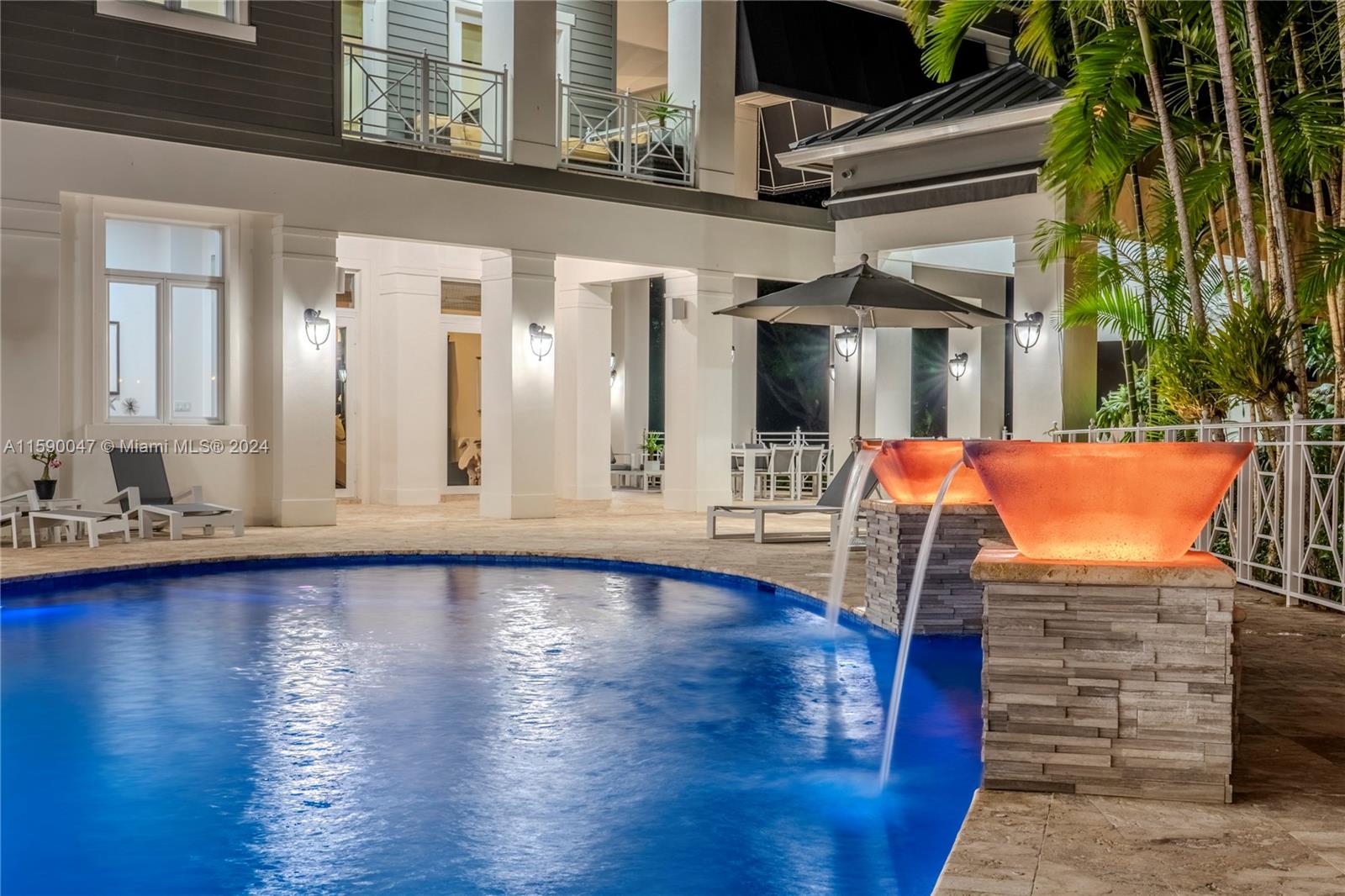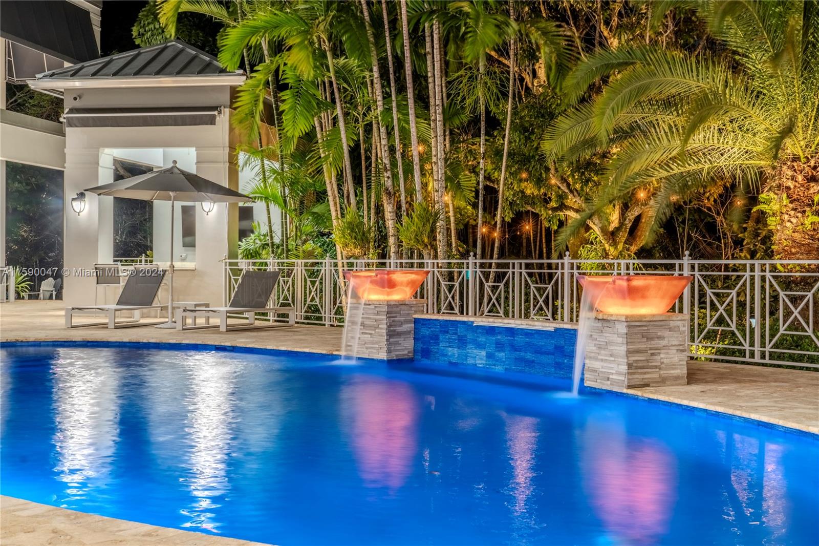 Enter through a private gate to find luxury at every turn. The grand living room boasts 28-foot ceilings and elegant pine floors throughout, and the gourmet kitchen impresses with a 12-foot island, 6-burner gas stove, Sub-Zero refrigerator, dual Wolf ovens, and a walk-in pantry. Set on a meticulously landscaped 1.3-acre lot, the 9,000+ square foot estate features 6 beds, 6 baths, an office, and a 4-car garage; cypress ceilings, a Dominican coral deck, and a 30-foot outdoor gas fireplace create a magical ambiance. There are multiple terraces, 2 outdoor kitchens, 5 A/C units, 2 tankless water heaters, a metal roof, impact glass, a guest house, and maid quarters. A brilliant combination of impeccable craftsmanship, timeless architecture & incredible finishes.