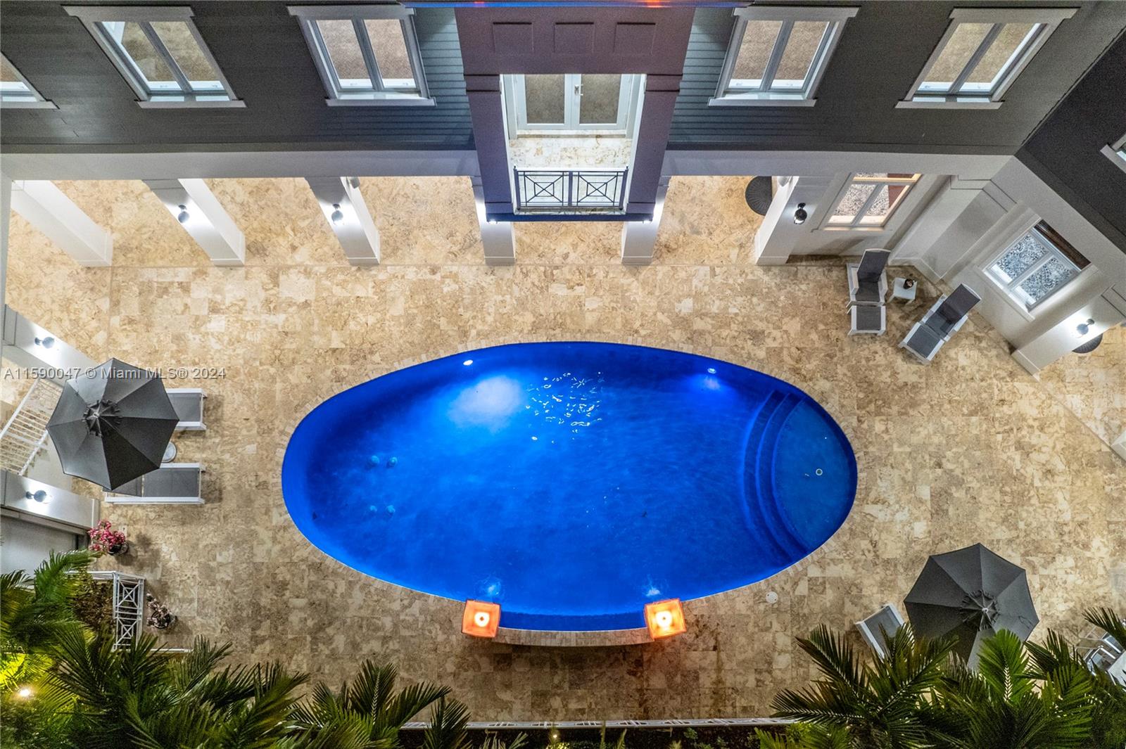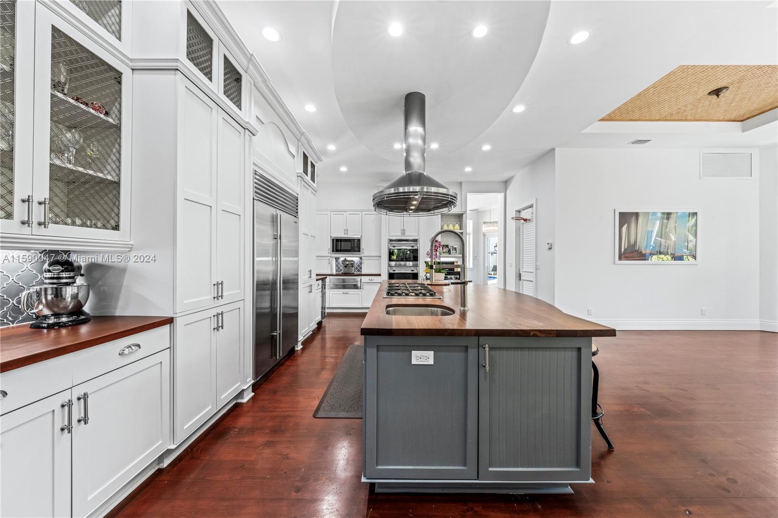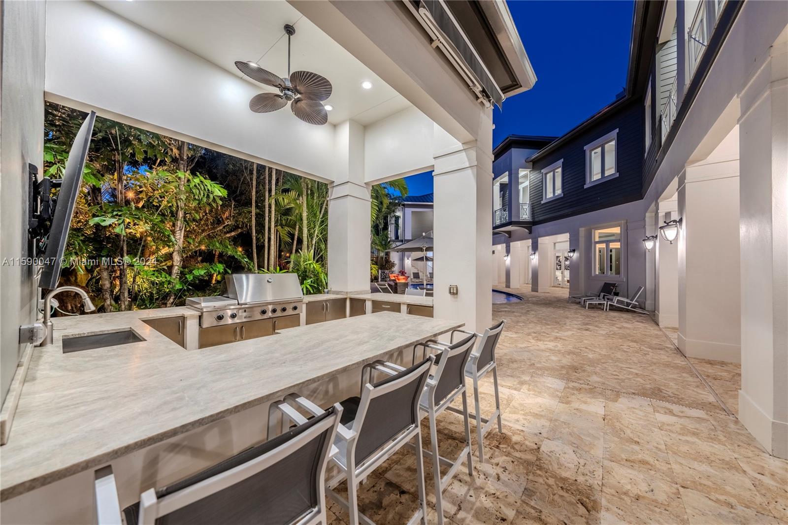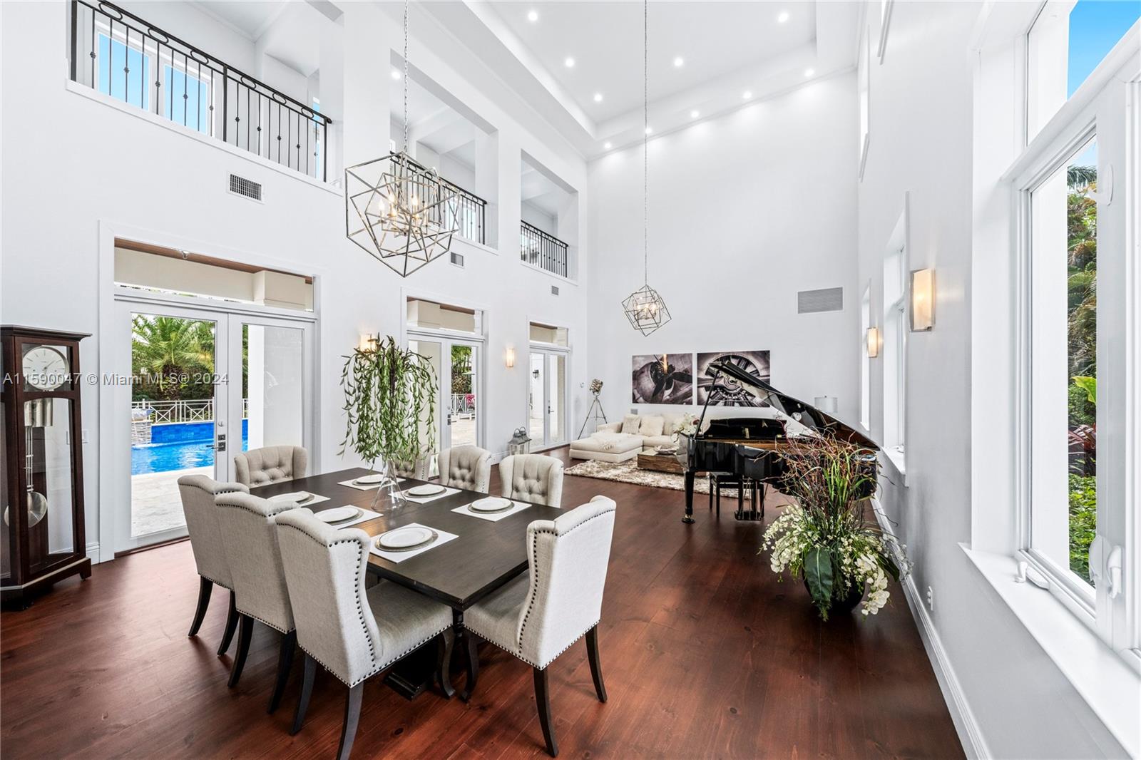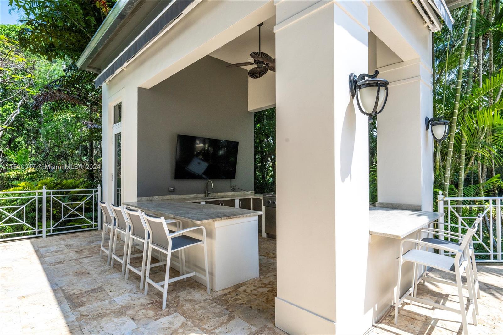 Enter through a private gate to find luxury at every turn. The grand living room boasts 28-foot ceilings and elegant pine floors throughout, and the gourmet kitchen impresses with a 12-foot island, 6-burner gas stove, Sub-Zero refrigerator, dual Wolf ovens, and a walk-in pantry. Set on a meticulously landscaped 1.3-acre lot, the 9,000+ square foot estate features 6 beds, 6 baths, an office, and a 4-car garage; cypress ceilings, a Dominican coral deck, and a 30-foot outdoor gas fireplace create a magical ambiance. There are multiple terraces, 2 outdoor kitchens, 5 A/C units, 2 tankless water heaters, a metal roof, impact glass, a guest house, and maid quarters. A brilliant combination of impeccable craftsmanship, timeless architecture & incredible finishes.
