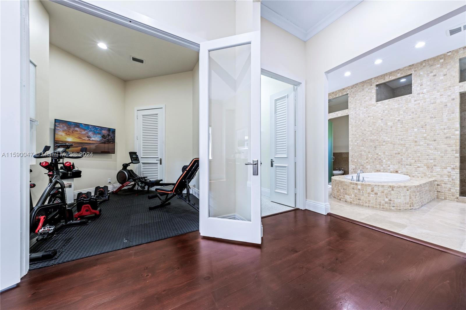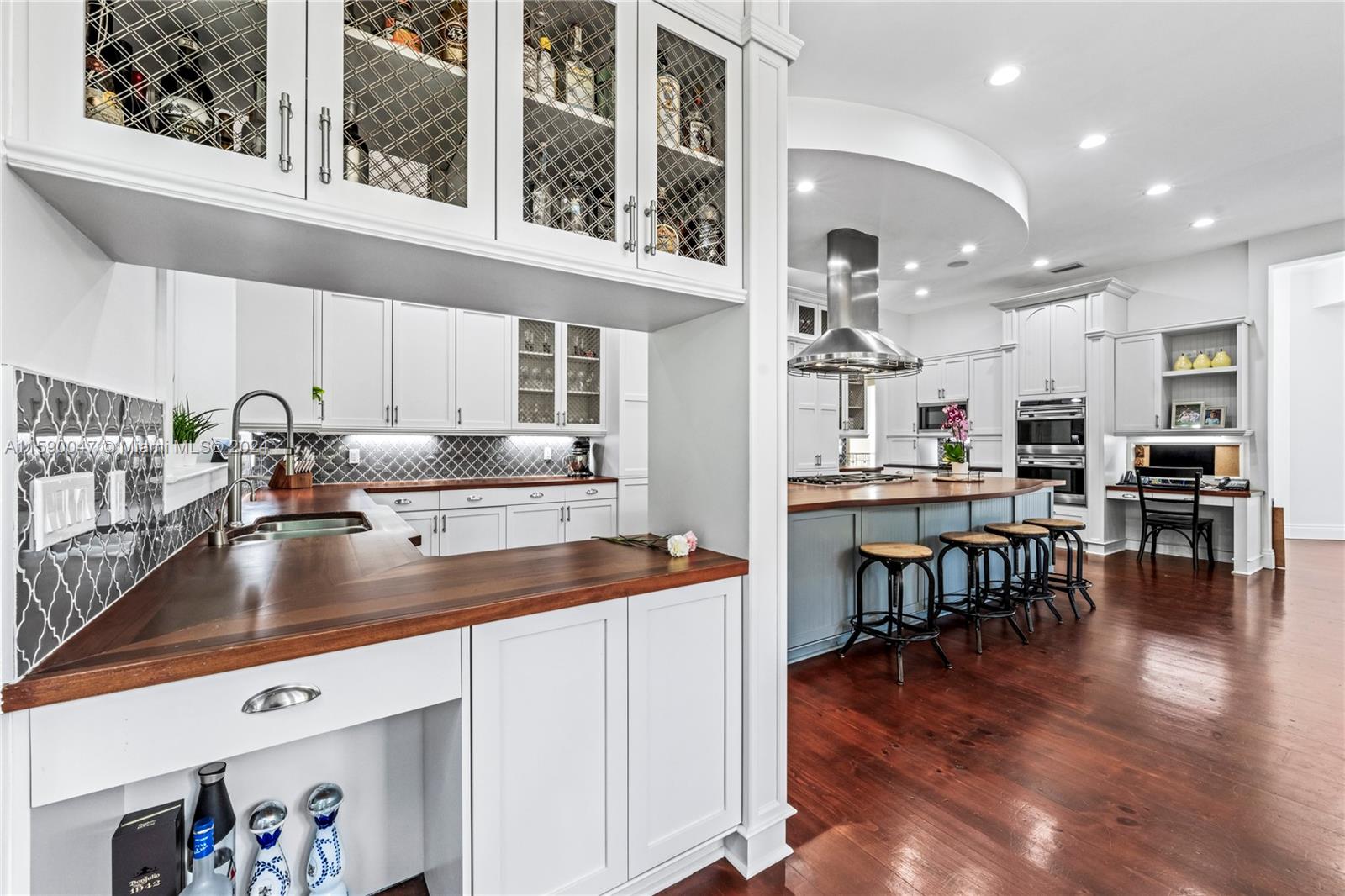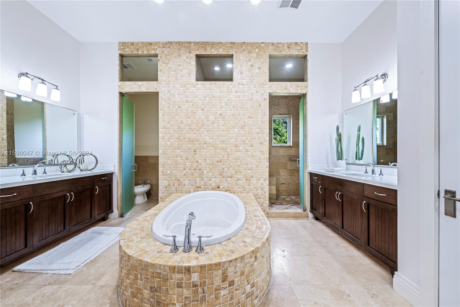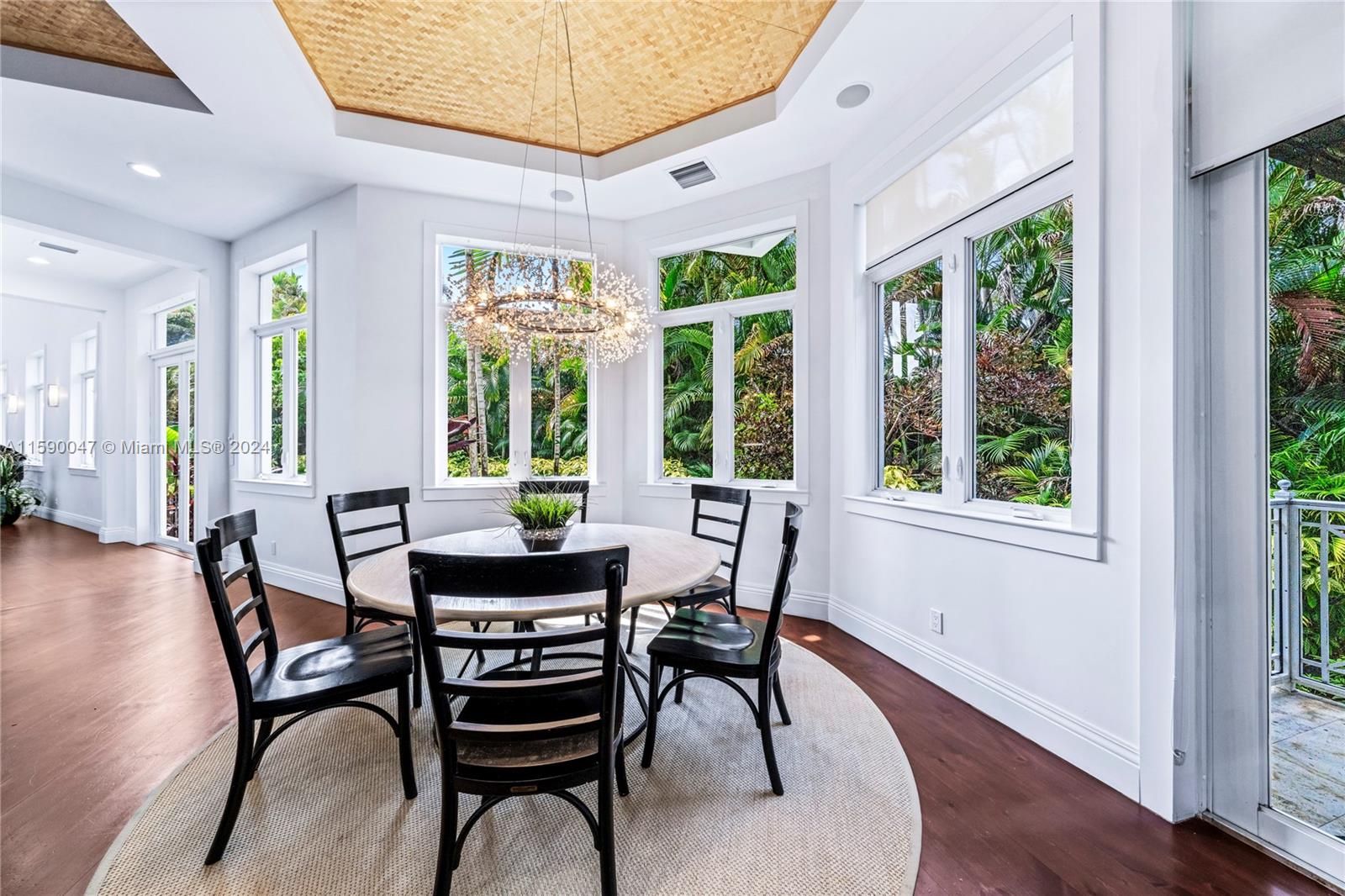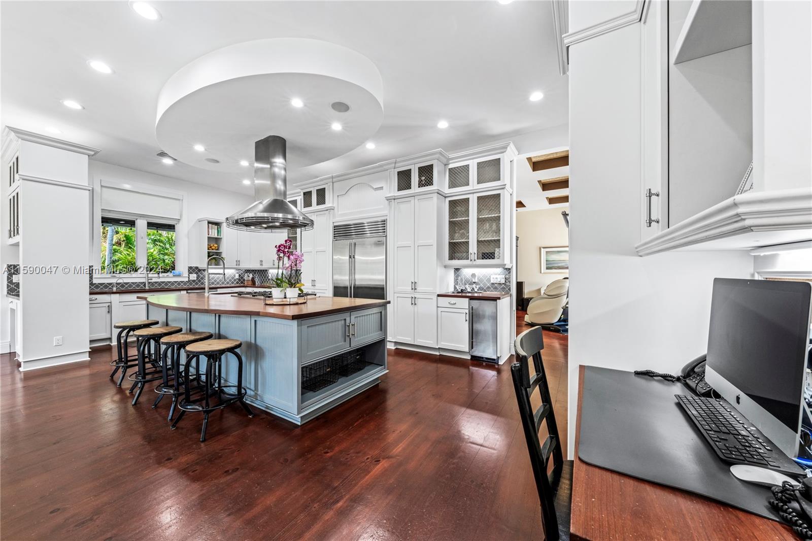 Enter through a private gate to find luxury at every turn. The grand living room boasts 28-foot ceilings and elegant pine floors throughout, and the gourmet kitchen impresses with a 12-foot island, 6-burner gas stove, Sub-Zero refrigerator, dual Wolf ovens, and a walk-in pantry. Set on a meticulously landscaped 1.3-acre lot, the 9,000+ square foot estate features 6 beds, 6 baths, an office, and a 4-car garage; cypress ceilings, a Dominican coral deck, and a 30-foot outdoor gas fireplace create a magical ambiance. There are multiple terraces, 2 outdoor kitchens, 5 A/C units, 2 tankless water heaters, a metal roof, impact glass, a guest house, and maid quarters. A brilliant combination of impeccable craftsmanship, timeless architecture & incredible finishes.