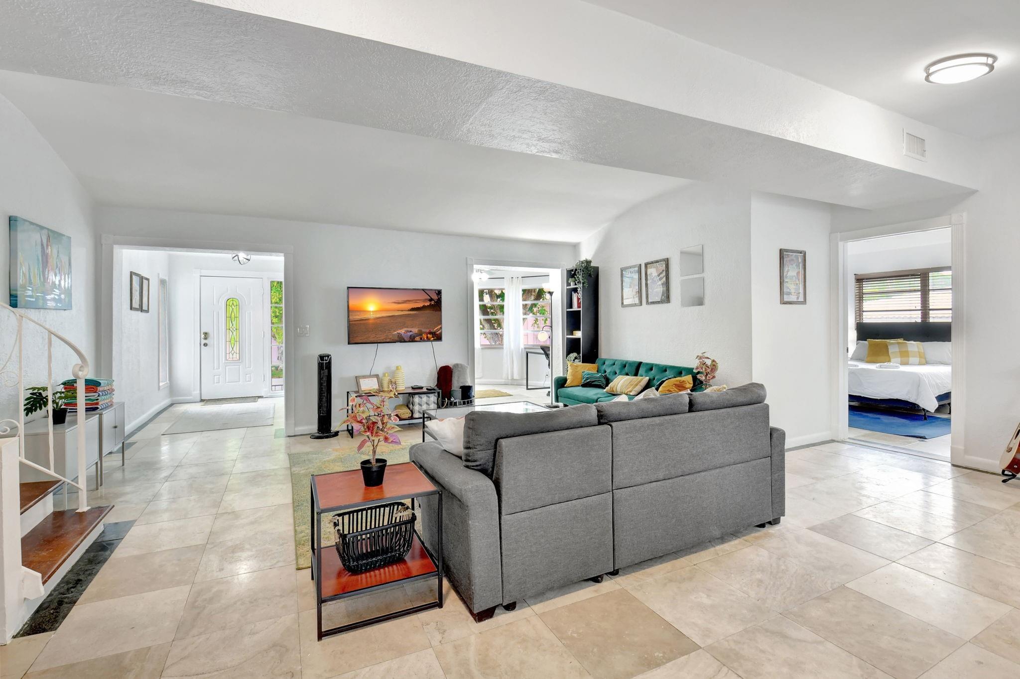 Luxury Art Deco home in A-rated school district, walking to Middle/High, near FAU. No HOA, 10mins to beach, 4-car garage, painted 6-car driveway & street parking. Open floor plan, kitchen with exotic granite, custom cabinetry, SS appliances. Travertine tiles on 1st floor, hardwood on 2nd. Primary bedroom with walk-in closet, new glass shower doors & Italian marble. Rare basement with walk-in access. Garage has potential for 4th bed/in-law suite, with plumbing & electrical installed. Updated bathrooms, plumbing, new roof (2024), newer water heater & interior air unit. Freshly painted interior & exterior, Epoxy garage floor. Landscaped exterior with deck, patio, new sprinkler system, mango tree, room for pool. 4-Point & Wind Mitigation (2024). Great rental potential, easy access to I-95.