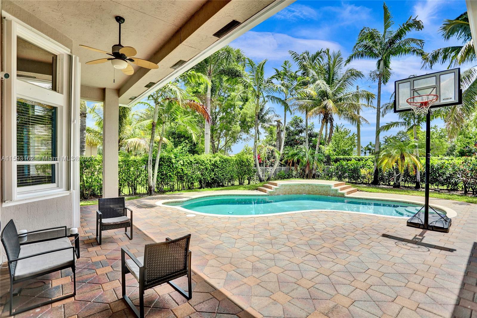 **Attention**Lenox Supreme model behind the gates of "The Sanctuary" double gated within Pembroke Falls, privacy at the most. Large single story floor plan lay out offers 4 bedrooms plus library-den-office-bonus room, 3 bath with 3 car garage. Open plan, formal dining, living room, ample family room connected to open kitchen featuring granite counter tops, wooden cabinets, gourmet island and more. Primary bedroom is 19x15 size & it has a phenomenal master bathroom upgraded with all marble, roman tub, dual sides, all primary quarters is situated in left wing of the house privately away from the 3 other rooms. Crown molding throughout, central vacuum sys, French doors access, upgraded hurricane accordion shutters in all windows, covered patio, freeform pool, all property is fenced.