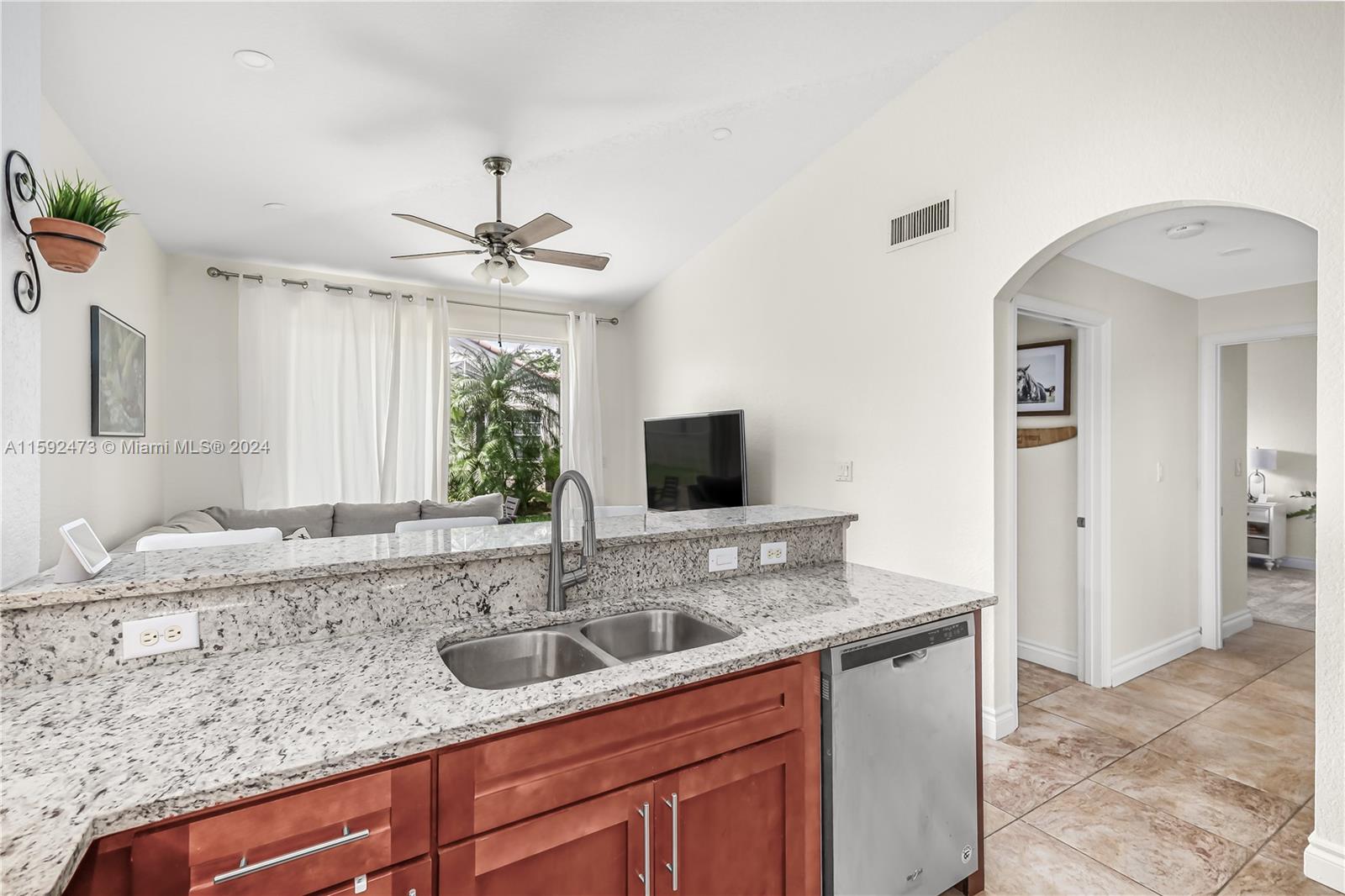 ***Lowest Priced Home in the community*** Built in 2001, this beautiful corner townhouse offers 3 beds, 2 baths, and over 1,300 Sqft of living space, all on one story. The home features a 1-car garage, 2-car driveway, and a kitchen at its heart with granite countertops, stainless steel appliances, a serving bar, and extra windows for abundant natural light. Vaulted ceilings enhance the spacious feel, and plantation shutters add a cozy touch. The primary suite boasts a walk-in closet, dual sinks, and a wide soaking tub. Outside, enjoy a large, relaxing backyard. Sunset Lakes amenities include a resort-style pool, fitness center, tennis courts, and more. Let's explore this inviting home and vibrant community together! Very Easy to Show!