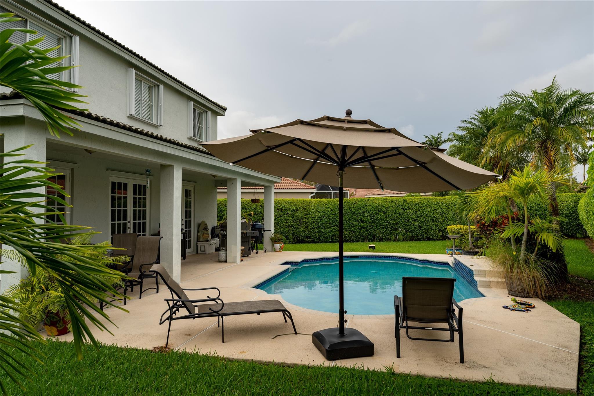 Relaxing home is in Savanna-Weston - Florida. This property features 5 bedrooms, a den, 3.5 bathrooms, a two-car garage, and a pool. Fenced oversized lot, new a/c, accordion shutters on the second floor. Walking distance to the school. A gated community with an “A” rated school and a large community clubhouse, a community club includes several swimming pools, water slides, miniature golf, a basketball court, a soccer field, a large playground, and much more!!