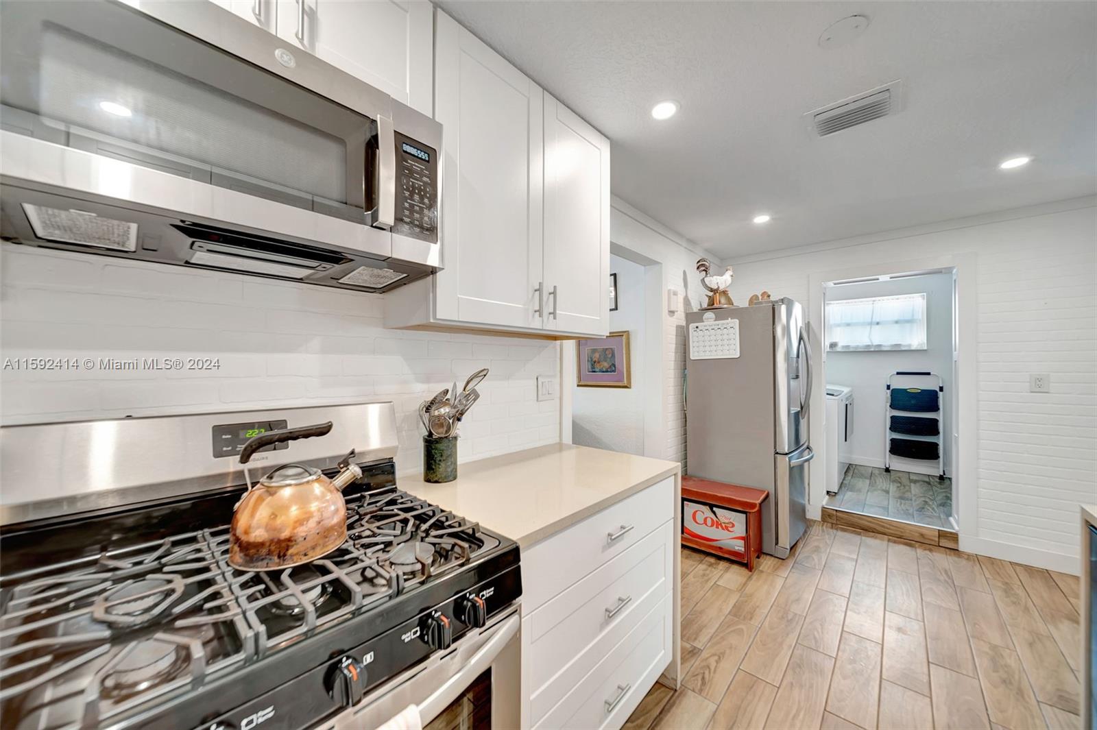 Recently RENOVATED! Located in the heart of Hollywood on a large private lot, this unique property consists of a spacious 3 bedroom / 2 bath main home plus a 1 bed /1 bath guest house. The renovation completed by previous owner in 2022 included new appliances, kitchen with quartz counters and plenty of cabinet space, baths with 2nd bathroom renovated anew in 2023, IMPACT windows and doors in the main house. Roof done in 2019, new washer and dryer 2024. The detached guest house is perfect for your visitors or your office and the yard has plenty of room for a pool. Click the virtual tour link to view the interactive floor plan and 360 views!