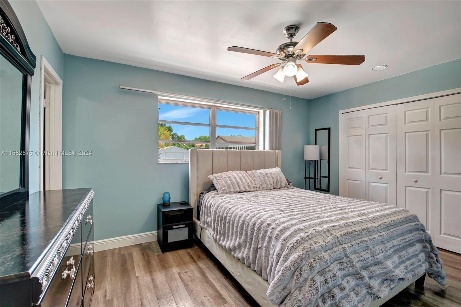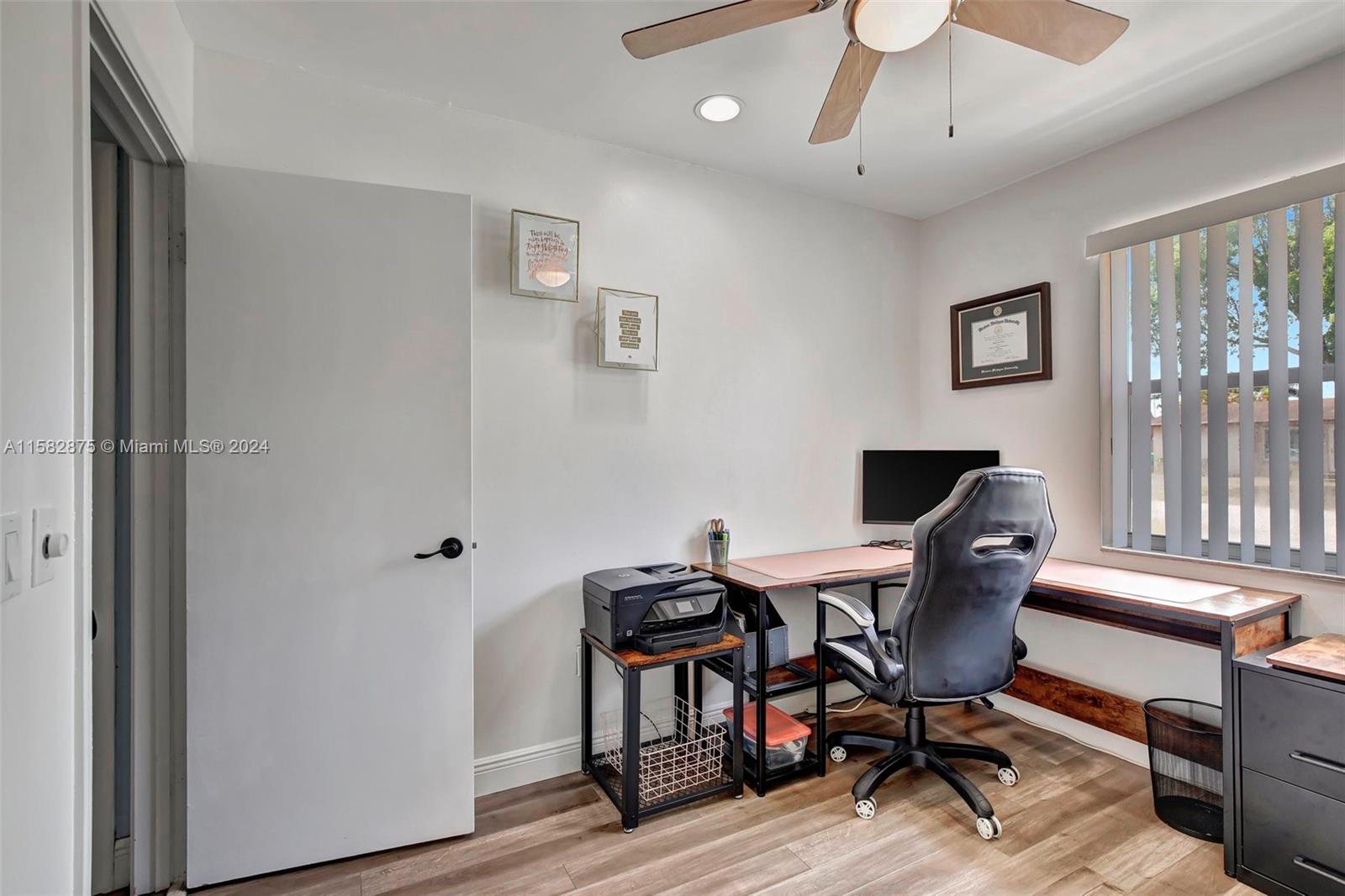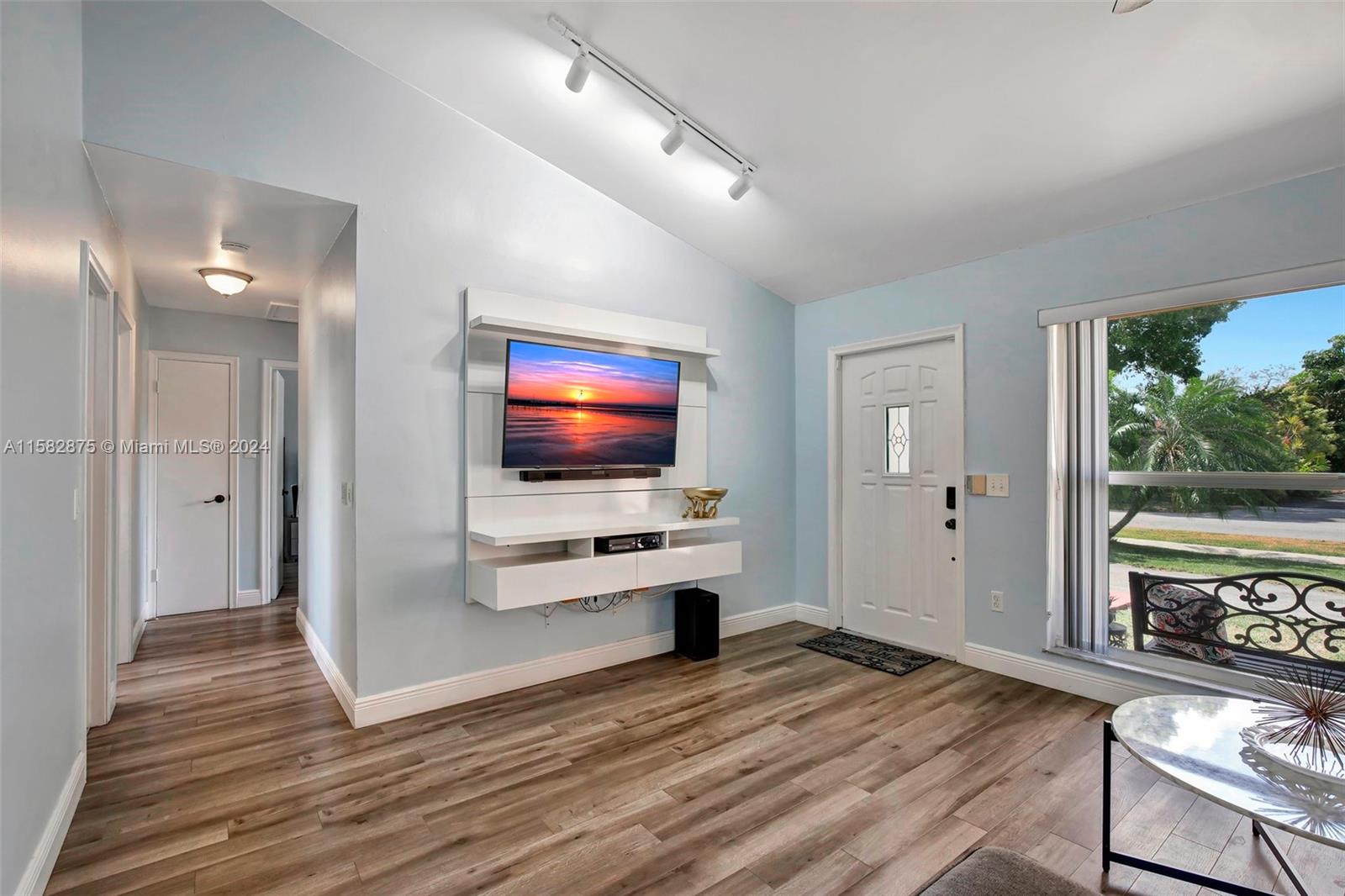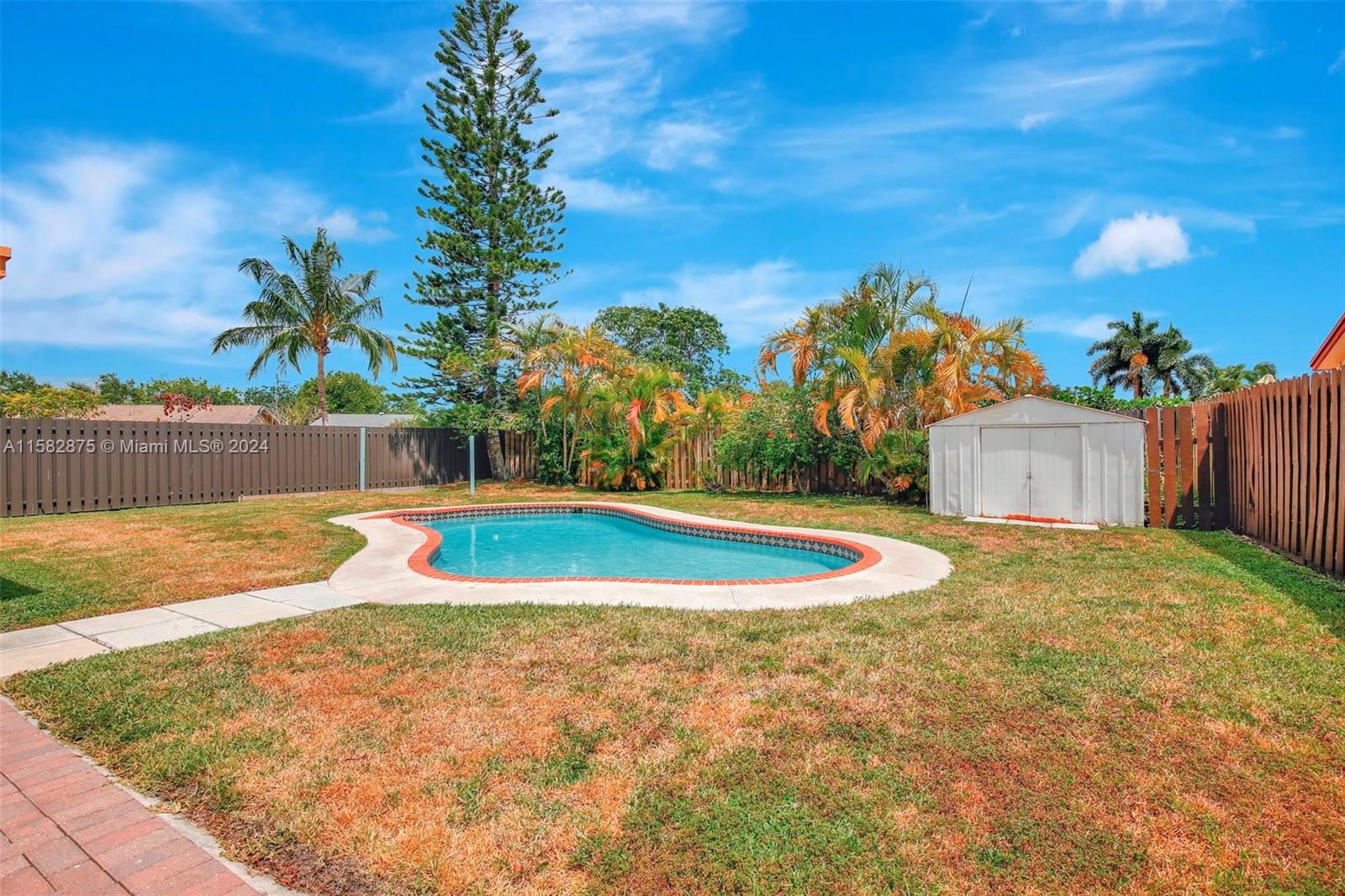 Fantastic 3 bed/2 bath pool home in Sunrise Golf Village! Open floorplan w/ vaulted ceilings & recessed lighting. Beautiful laminate flooring throughout living areas and bedrooms. Large kitchen features wood cabinetry & granite countertops. Circular driveway. Large yard completely fenced! AC (2019). Gas Water heater (2020). Washer/dryer (2020). Impact rated garage door & panel hurricane shutters. Primary bath vanity replaced in 2022. New dishwasher (2024). Screened in porch. No HOA!!!