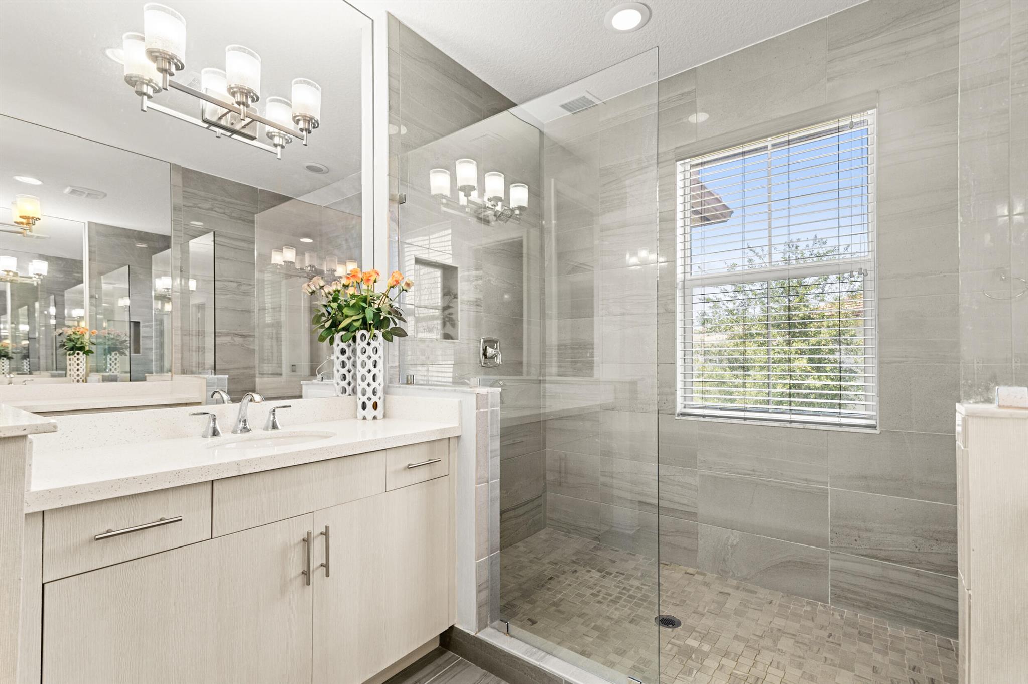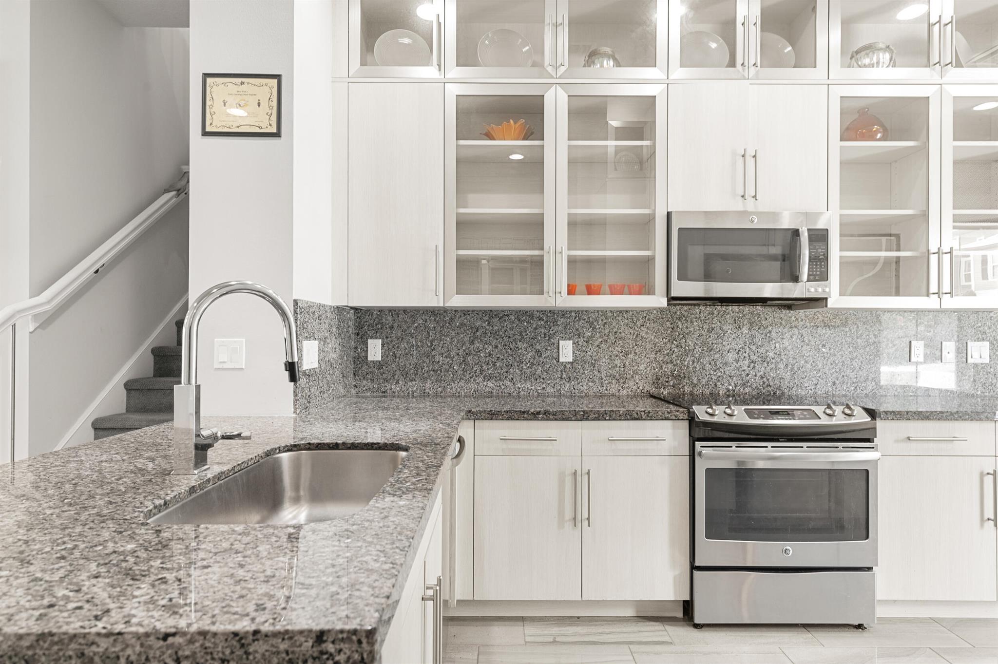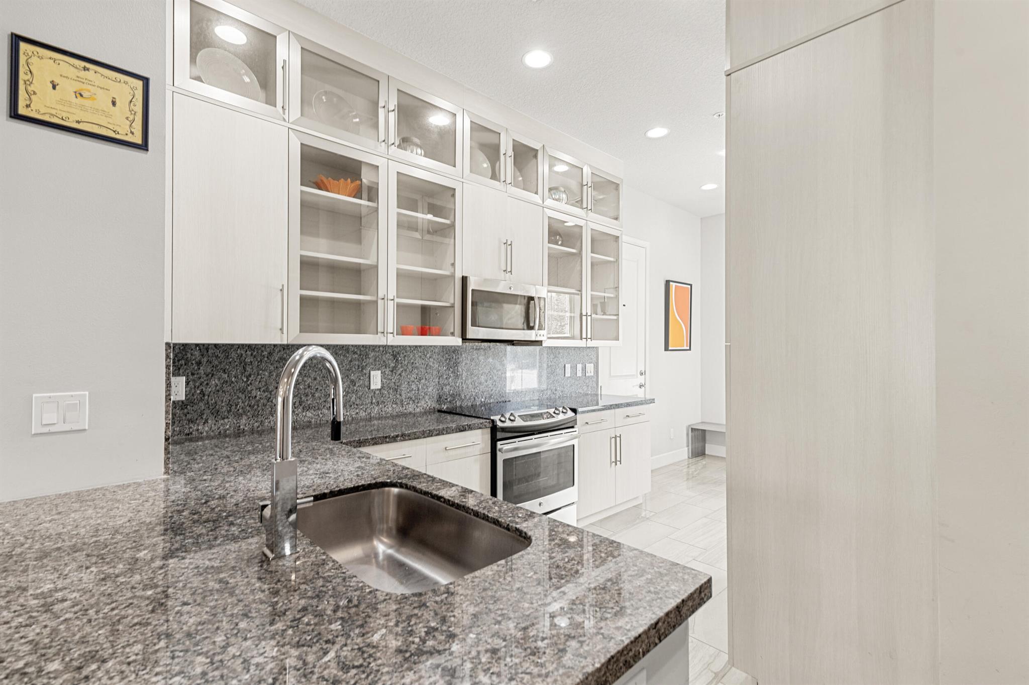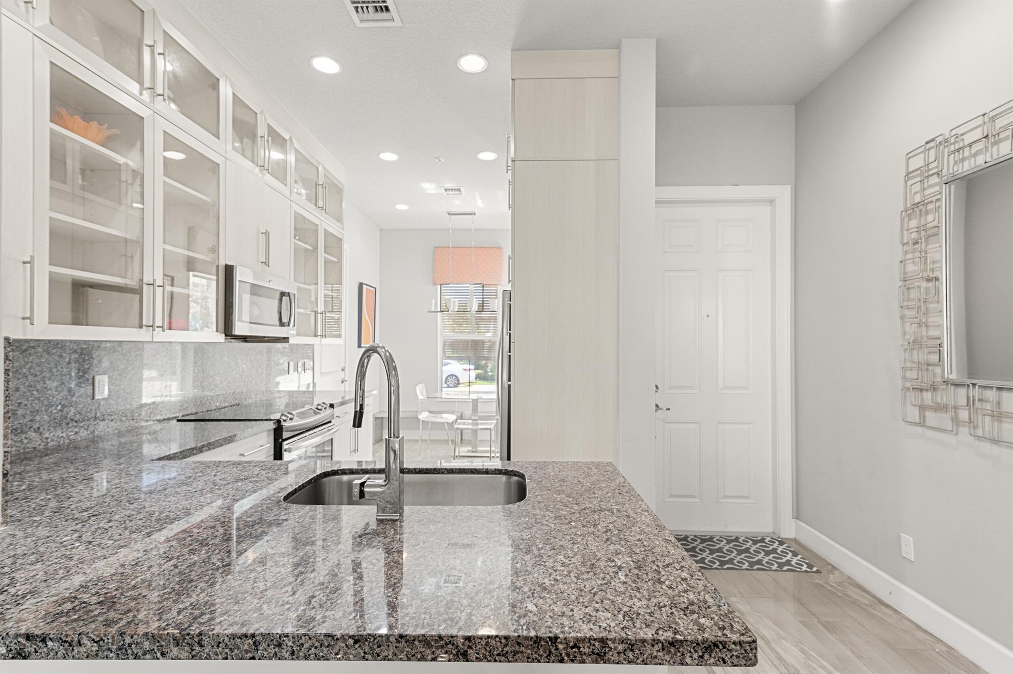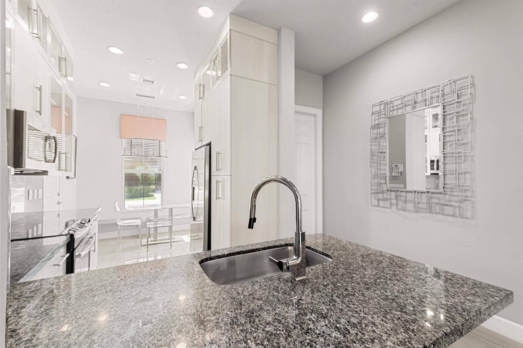 Stunning 4-Bedroom Home with Luxury Upgrades and Spacious LivingDiscover elegance and comfort in this meticulously designed 4-bedroom, 3.5-bathroom home, featuring high-end finishes and ample space for modern living.Main Living AreaStep into an open and airy downstairs living area, boasting high ceilings and custom mirrors that enhance the spacious feel. The dining area is perfect for entertaining, complemented by a covered patio for outdoor relaxation.Gourmet KitchenThe chef's kitchen is a true delight, featuring tile flooring, granite countertops, stainless steel appliances, a built-in pantry, and glass cabinets that extend to the ceiling. The sleek design includes a textured ceiling and a ceiling fan for added comfort.