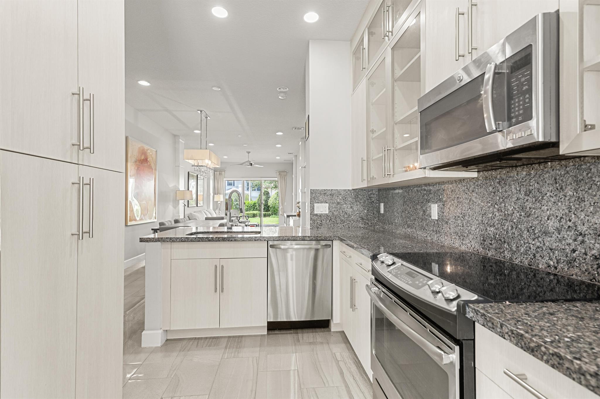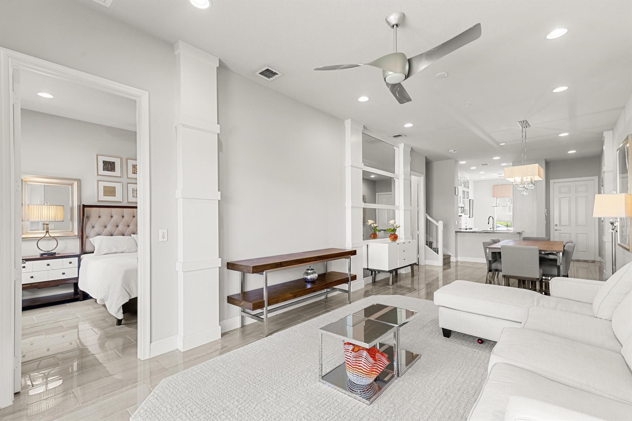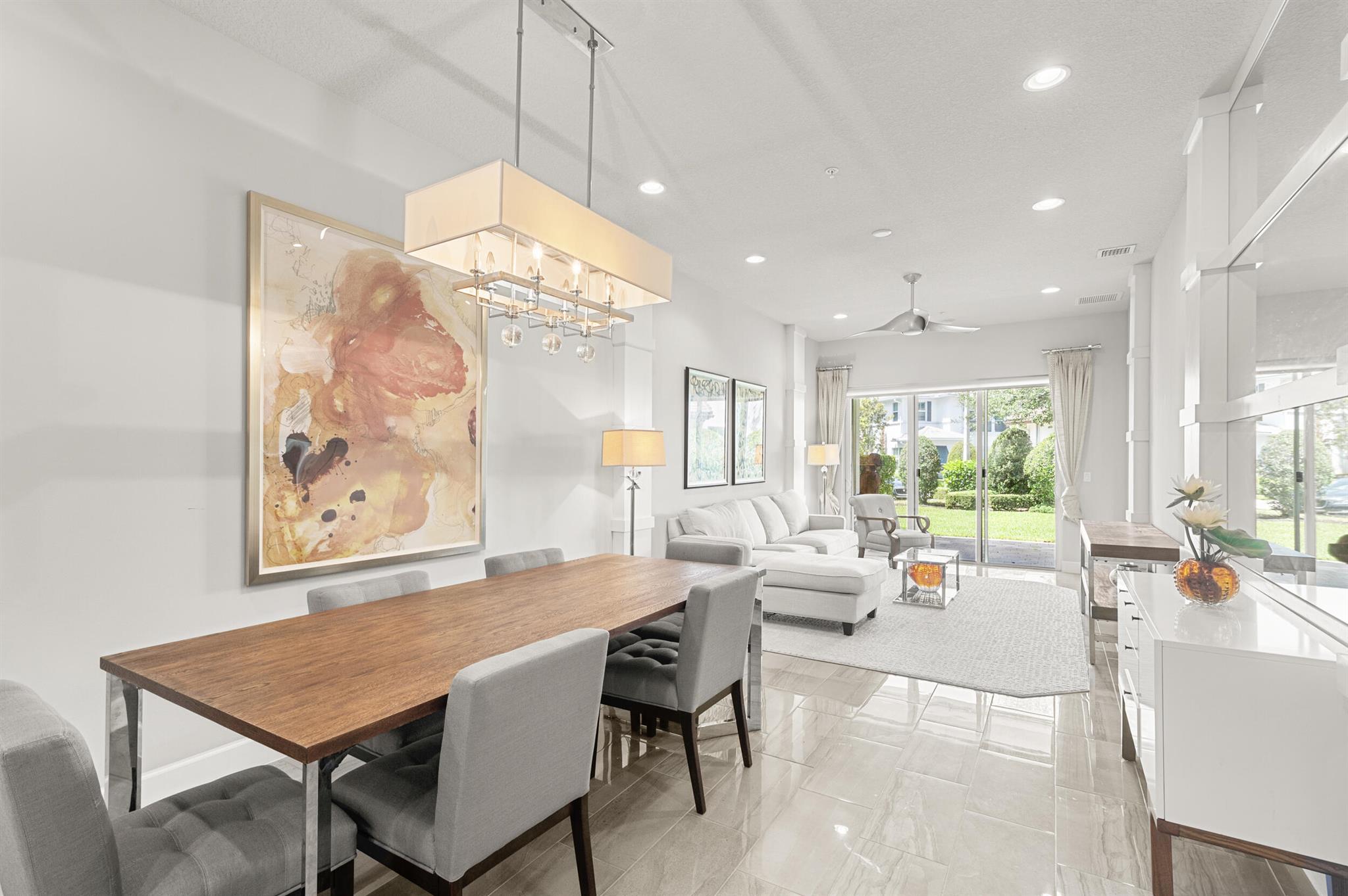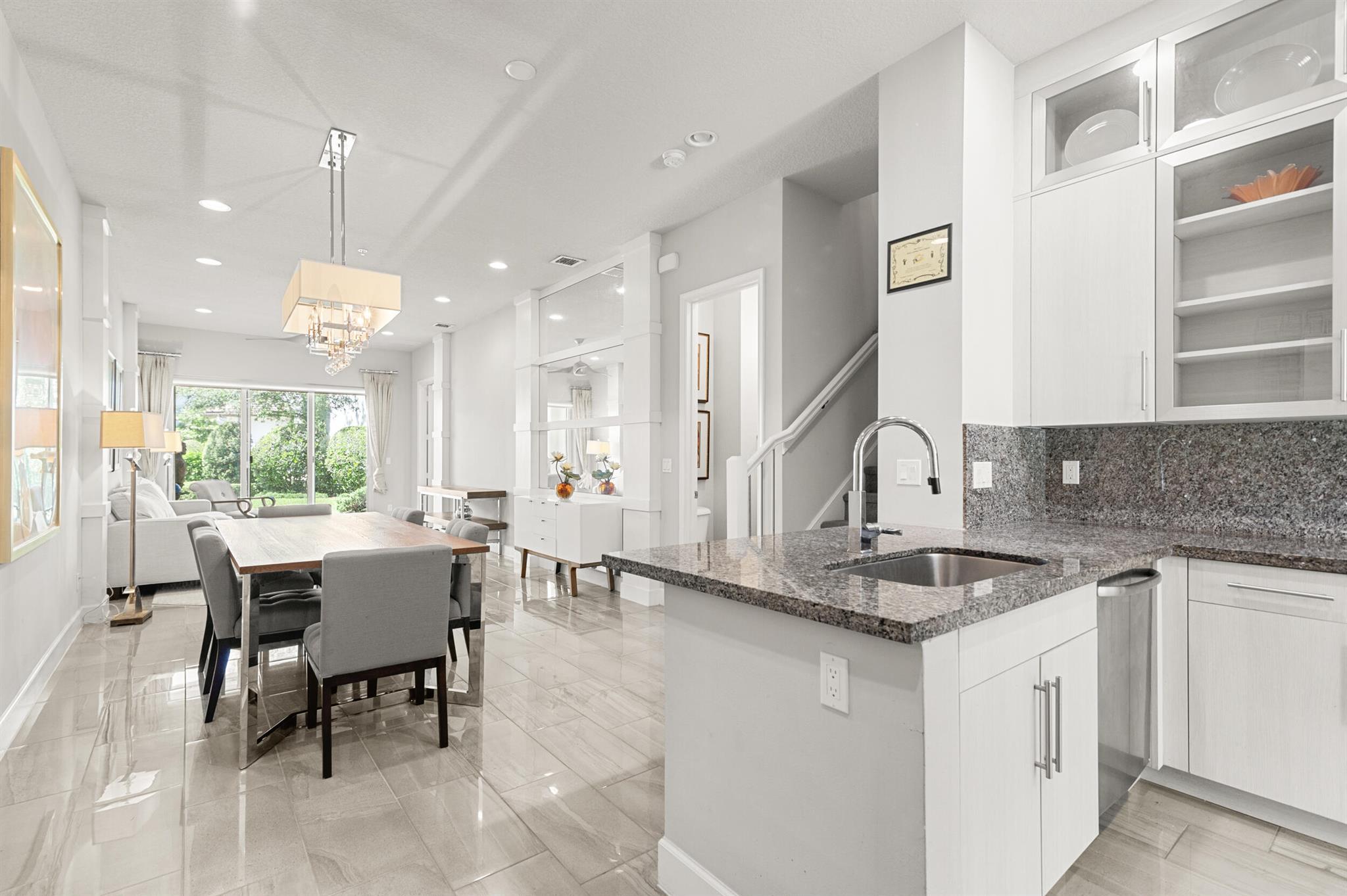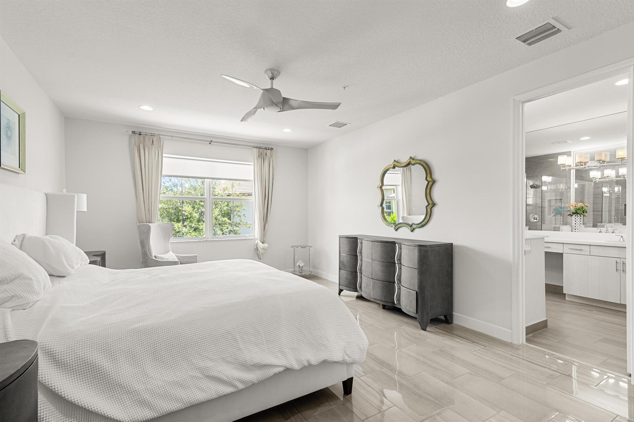 Stunning 4-Bedroom Home with Luxury Upgrades and Spacious LivingDiscover elegance and comfort in this meticulously designed 4-bedroom, 3.5-bathroom home, featuring high-end finishes and ample space for modern living.Main Living AreaStep into an open and airy downstairs living area, boasting high ceilings and custom mirrors that enhance the spacious feel. The dining area is perfect for entertaining, complemented by a covered patio for outdoor relaxation.Gourmet KitchenThe chef's kitchen is a true delight, featuring tile flooring, granite countertops, stainless steel appliances, a built-in pantry, and glass cabinets that extend to the ceiling. The sleek design includes a textured ceiling and a ceiling fan for added comfort.