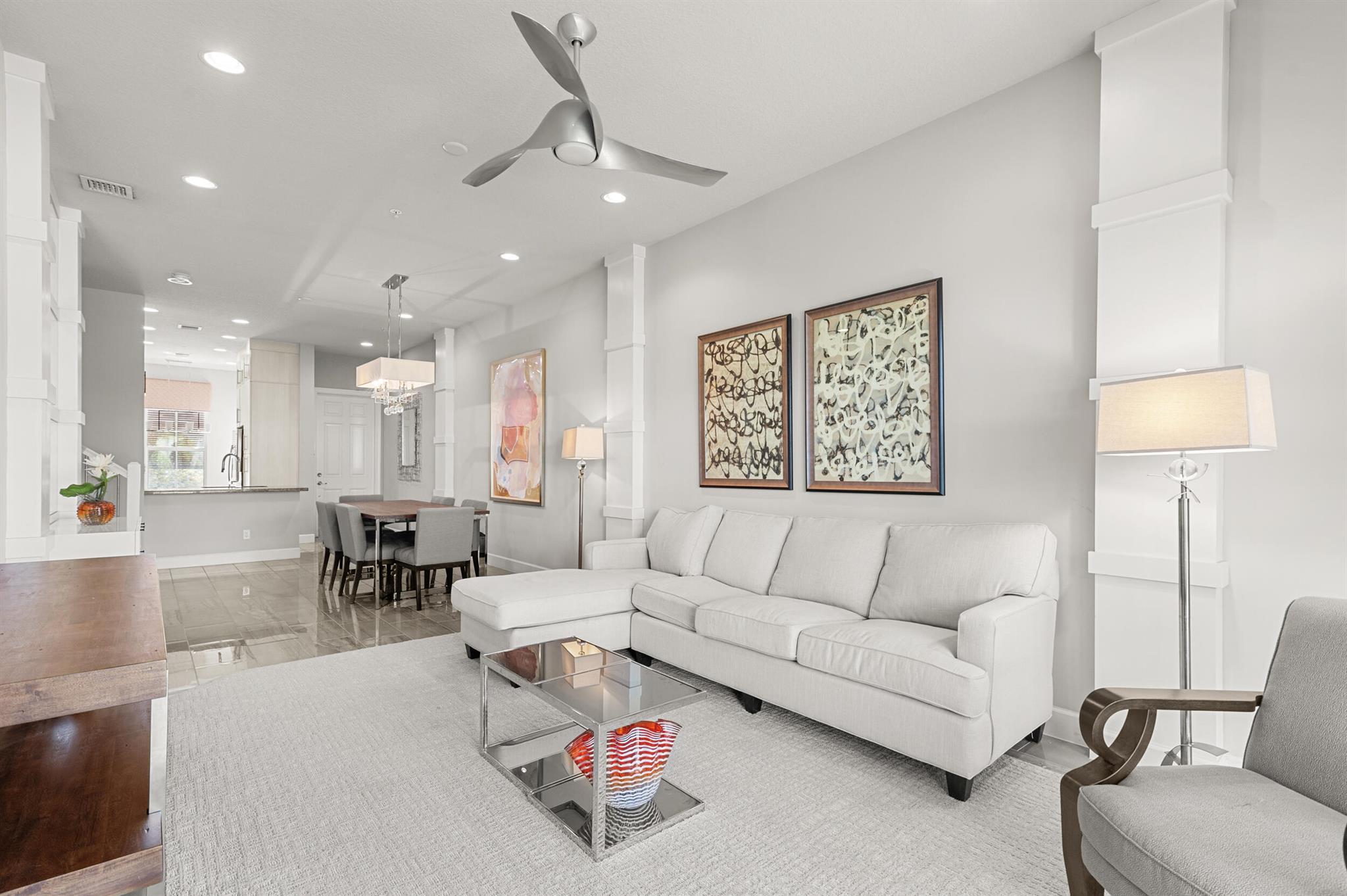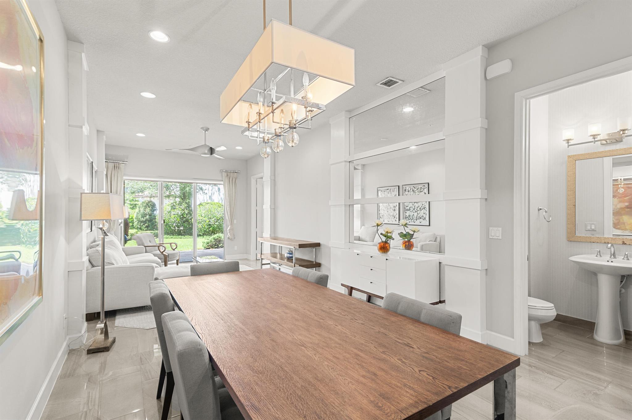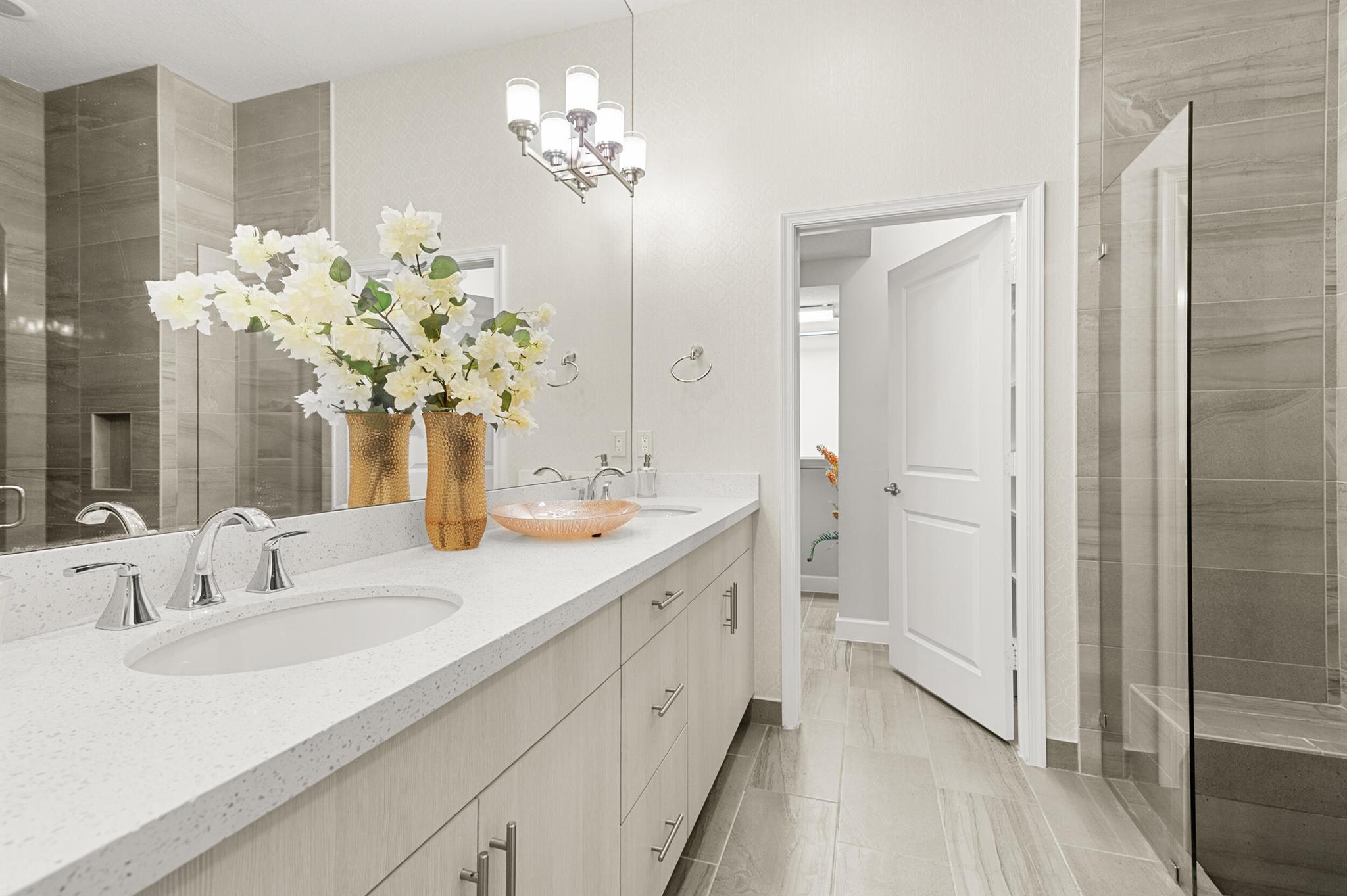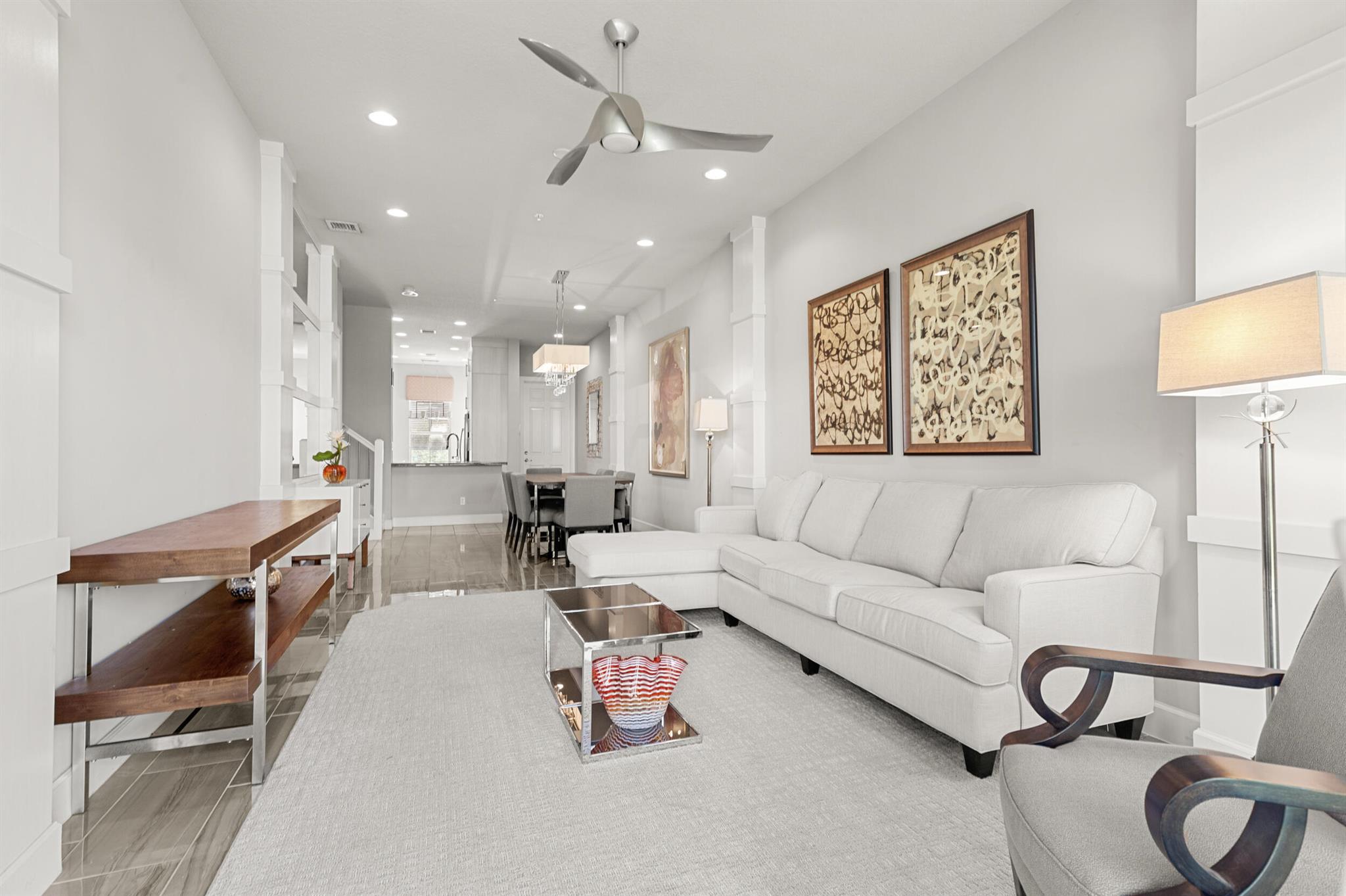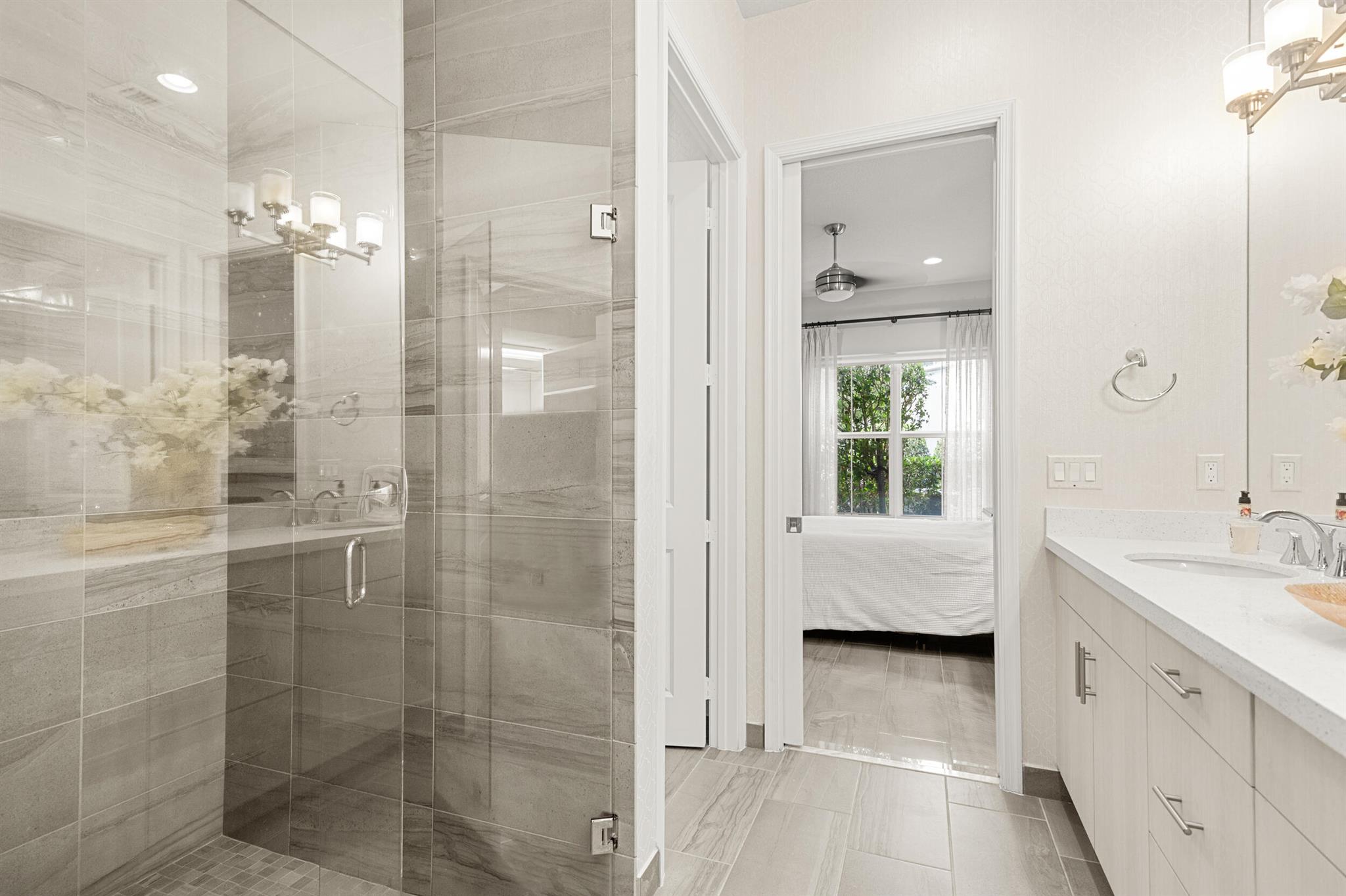 Stunning 4-Bedroom Home with Luxury Upgrades and Spacious LivingDiscover elegance and comfort in this meticulously designed 4-bedroom, 3.5-bathroom home, featuring high-end finishes and ample space for modern living.Main Living AreaStep into an open and airy downstairs living area, boasting high ceilings and custom mirrors that enhance the spacious feel. The dining area is perfect for entertaining, complemented by a covered patio for outdoor relaxation.Gourmet KitchenThe chef's kitchen is a true delight, featuring tile flooring, granite countertops, stainless steel appliances, a built-in pantry, and glass cabinets that extend to the ceiling. The sleek design includes a textured ceiling and a ceiling fan for added comfort.