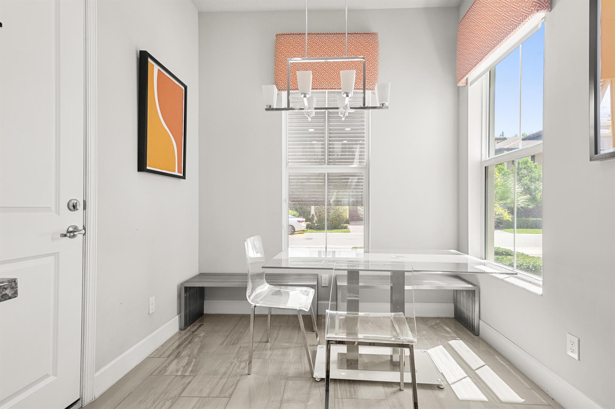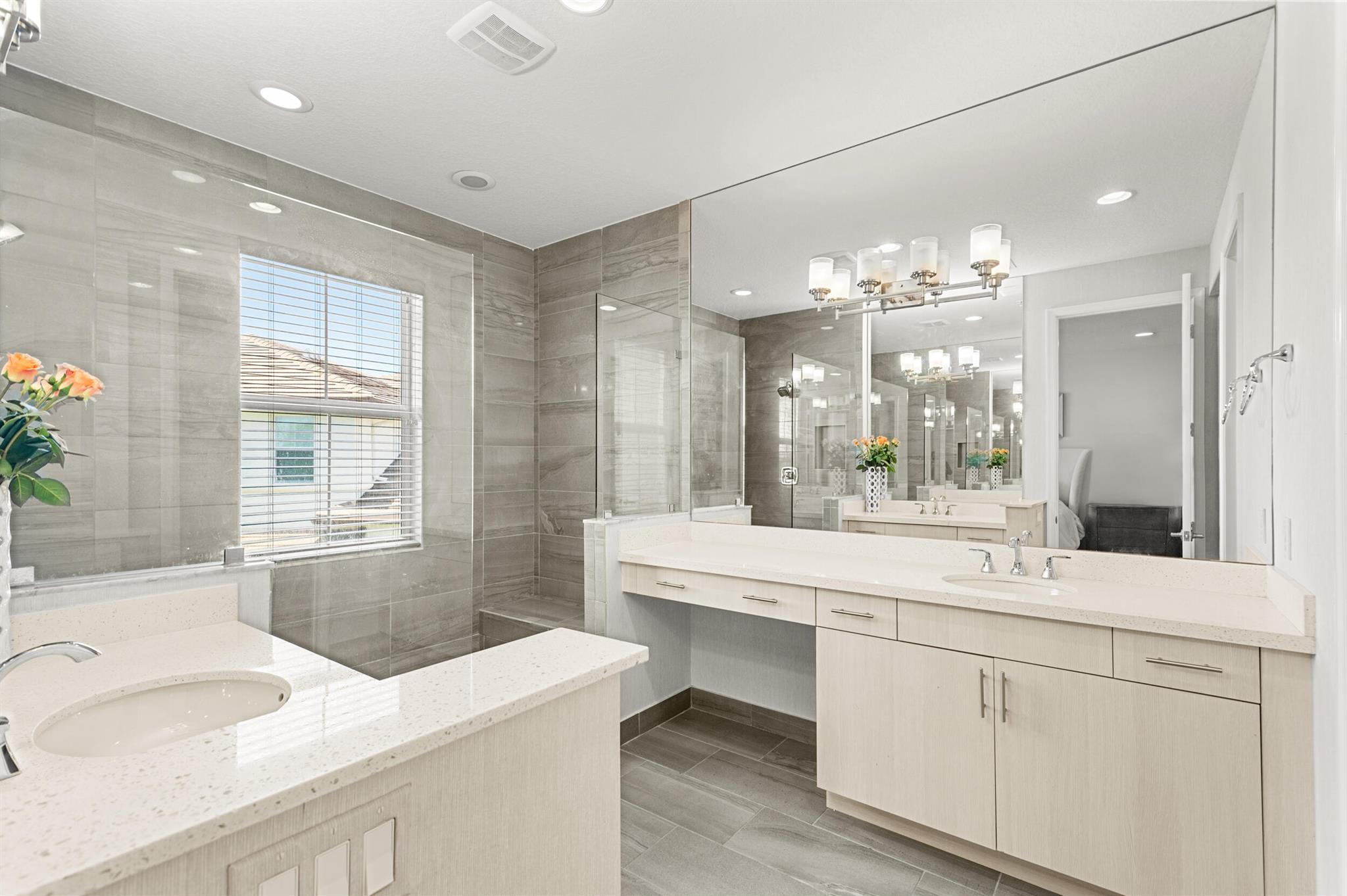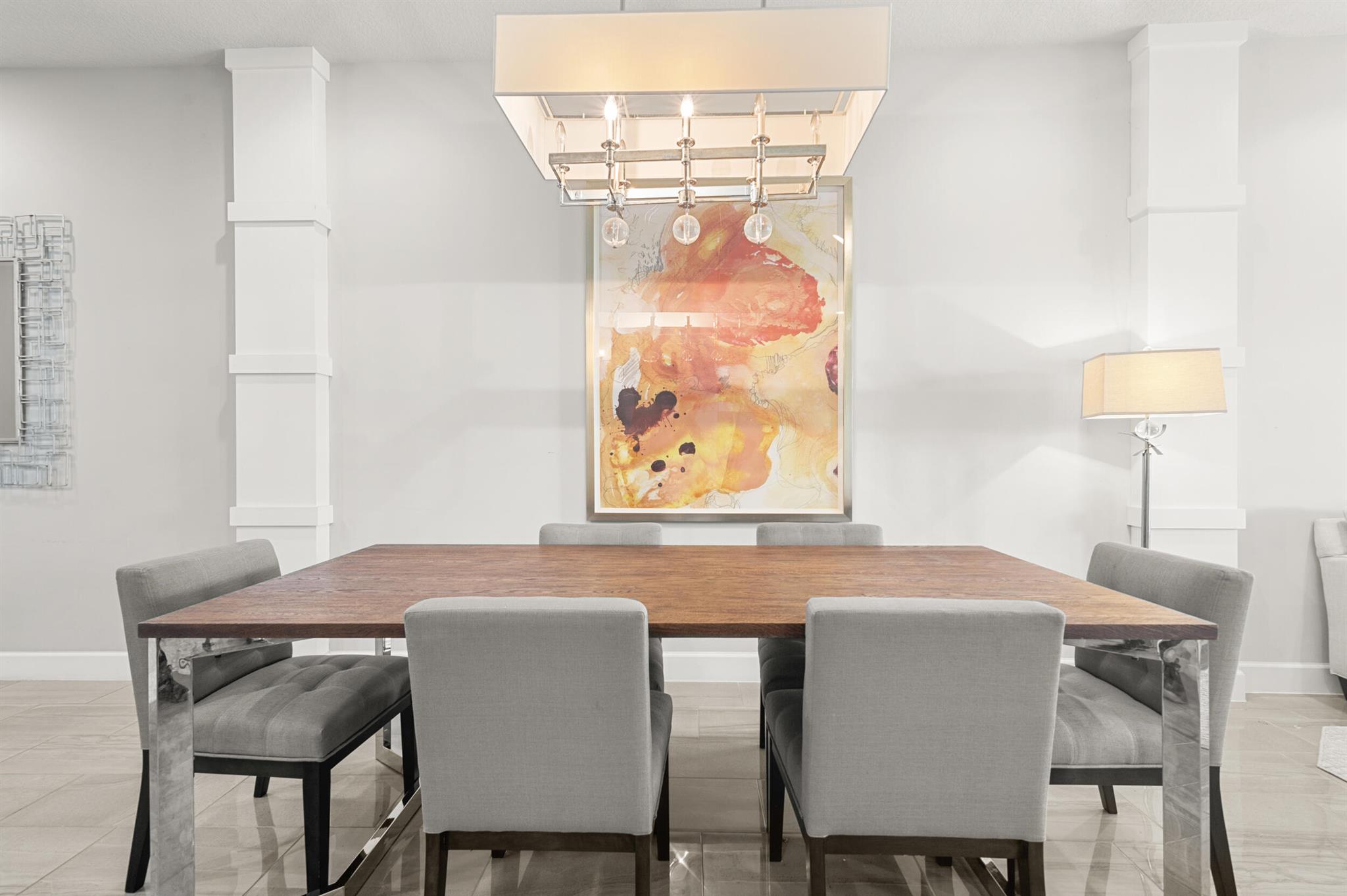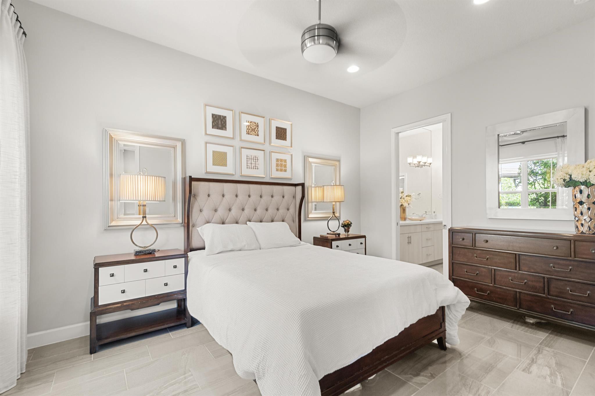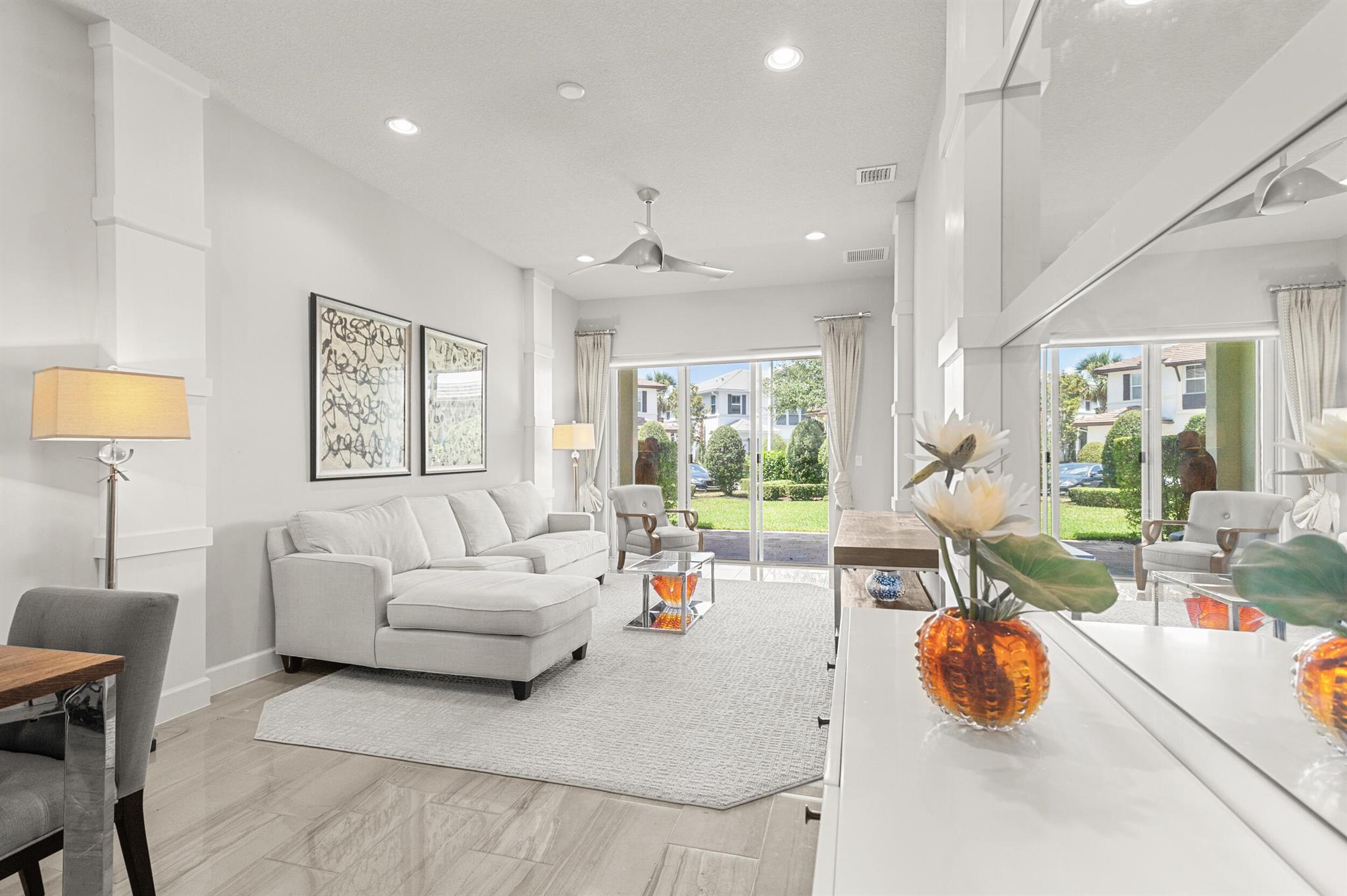 Stunning 4-Bedroom Home with Luxury Upgrades and Spacious LivingDiscover elegance and comfort in this meticulously designed 4-bedroom, 3.5-bathroom home, featuring high-end finishes and ample space for modern living.Main Living AreaStep into an open and airy downstairs living area, boasting high ceilings and custom mirrors that enhance the spacious feel. The dining area is perfect for entertaining, complemented by a covered patio for outdoor relaxation.Gourmet KitchenThe chef's kitchen is a true delight, featuring tile flooring, granite countertops, stainless steel appliances, a built-in pantry, and glass cabinets that extend to the ceiling. The sleek design includes a textured ceiling and a ceiling fan for added comfort.
