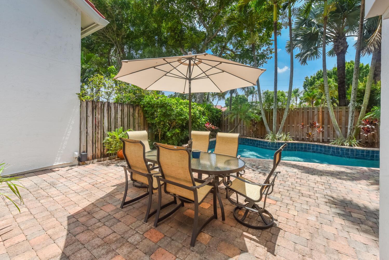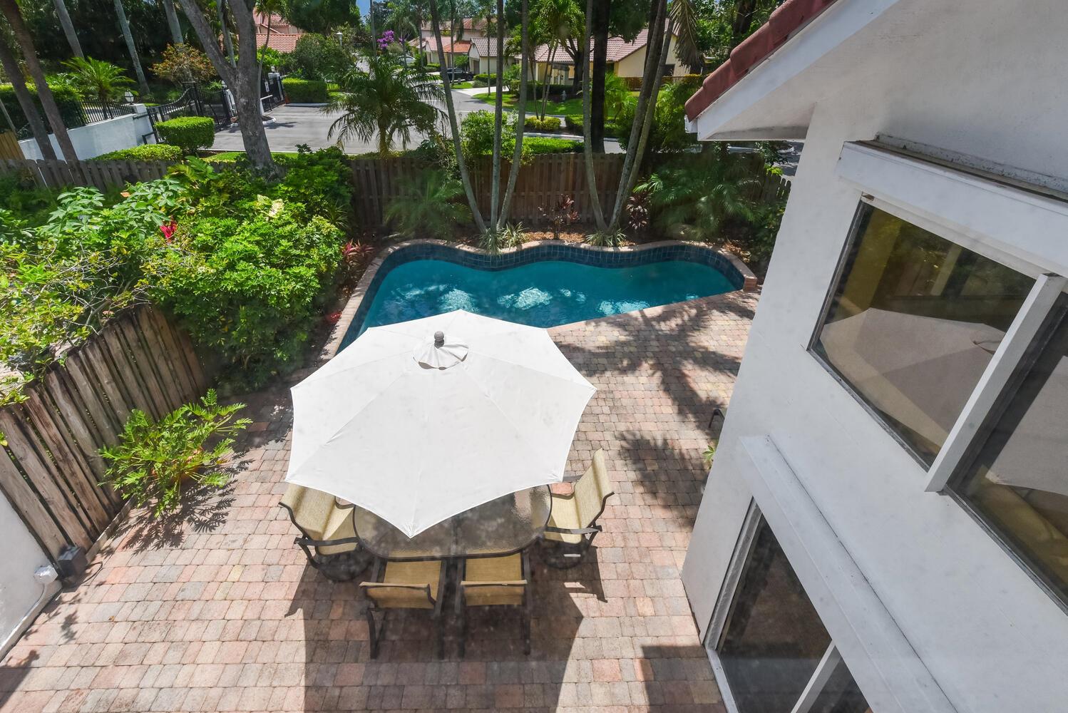 BRAND NEW ROOF!!! BRAND NEW A/C!!!Largest two story home with private tropical pool. Soaring ceilings invites natural light. Formal living and dining room. All three bedrooms including master are upstairs. Oversized corner home large 2CG w/bonus storage room. Partial impact windows and shutters. Portable generator hookup. 24 hour manned gated community. Walking distance to Town Center Mall, Publix, Walgreens, CVS and plenty of wonderful restaurants. MONTHLY FEE INCLUDES: HOTWIRE CABLE AND INTERNET, FRONT AND SIDE LANDSCAPING, MAINTENANCE, SECURITY, HEATED COMMUNITY POOL & SPA. Next door to Boca Raton Swim & Racquet Club. Location qualifies for City of Boca Raton Parks and Beach Pass.One large or two small pets allowed. Trucks must be in the garage, no motorcycles or scooters