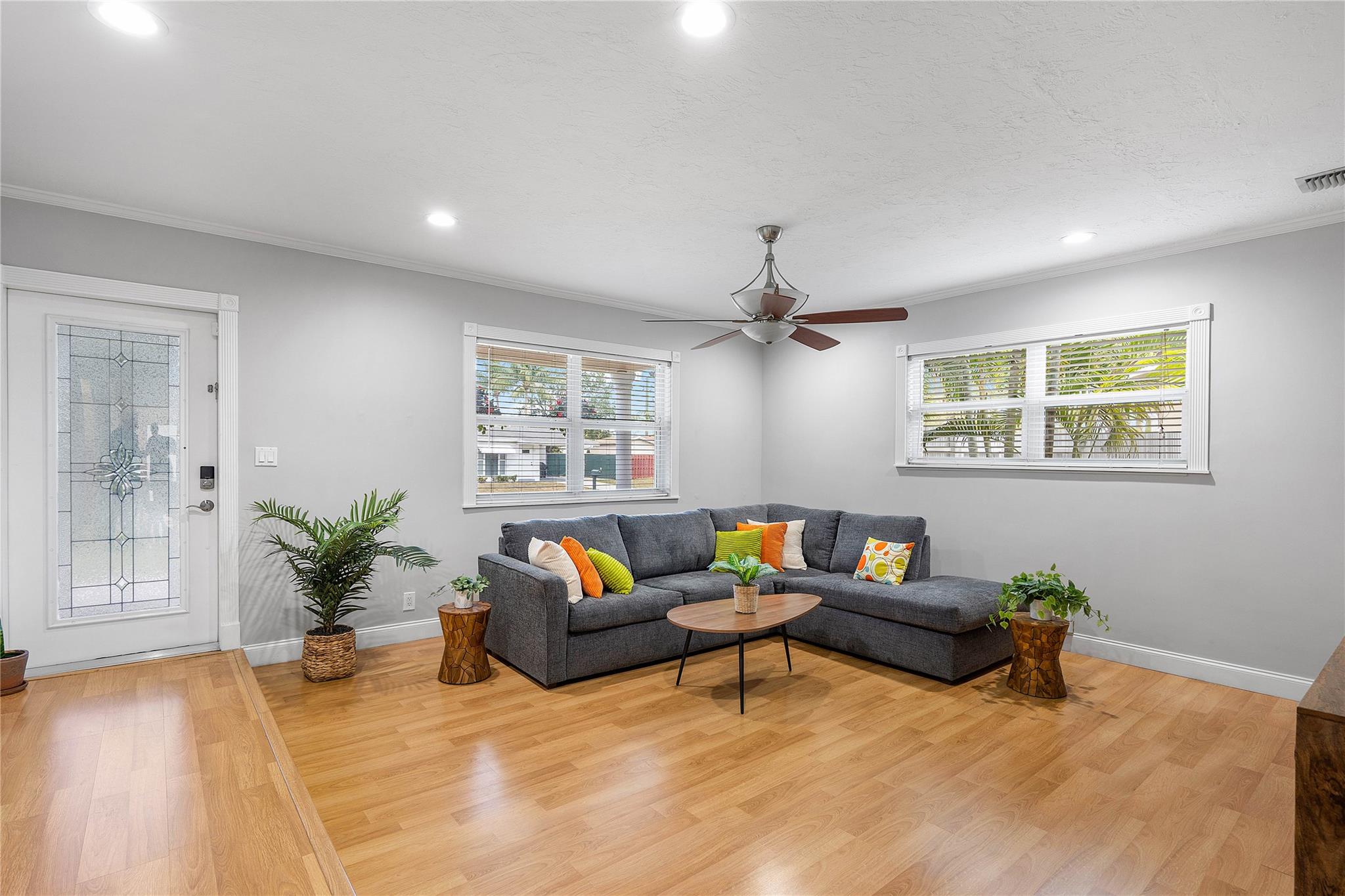 Come and live at this beautifully updated 3/2 home with a pool!!! This well maintained property has much to offer starting with the outside, the home comes with tinted impact windows and accordion shutters, impact front door, hard-water purifier/well water conditioner, R-40 mineral pump meaning no chlorine needed for the pool, sprinkler system, exterior connections for auxiliary generator, ring camera, new fencing, backyard garage is air conditioned and can be used as a workshop or office, plenty of space to park your boat or RV. Central AC is equipped with UV light, tankless water heater, remodeled master bathroom, LED hat lighting throughout, remodeled kitchen with stainless steel appliances, minutes from the beach and so much more. Schedule a showing today!!!