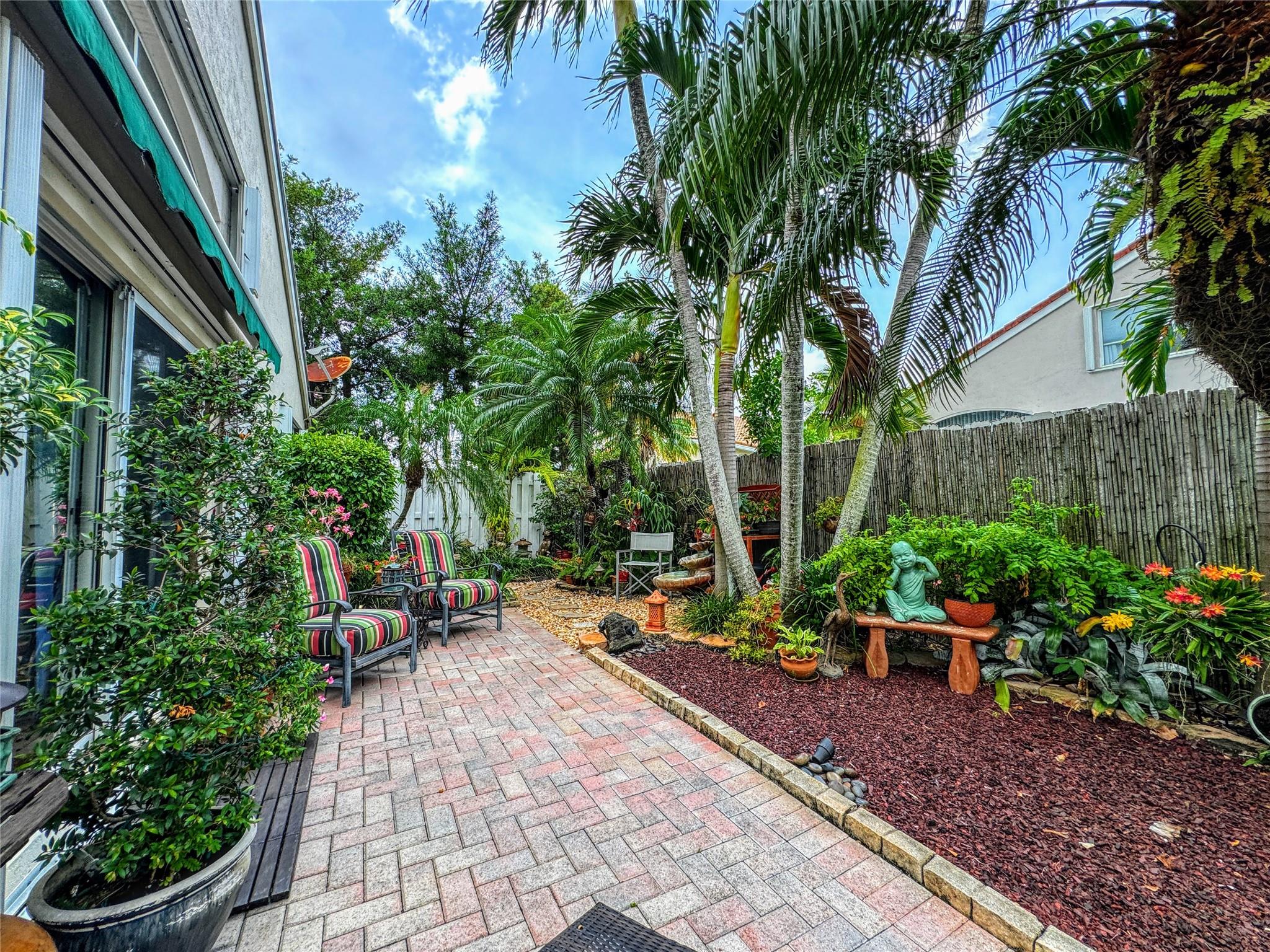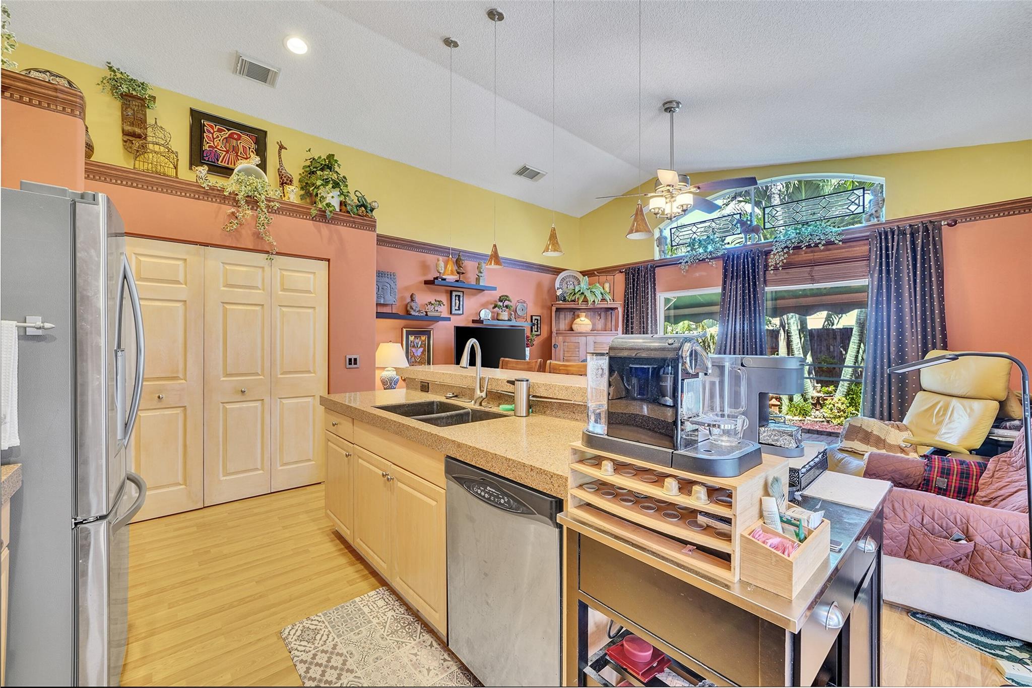Beautiful 3 Bed, 2 Bath home conveniently located in coveted Oakridge GATED COMMUNITY! Rarely available bright home with tall vaulted ceilings, wood flooring & carpet floors. Open concept formal living room and dining area in the front. Tastefully updated open kitchen and family room with charming breakfast nook & counter bar for casual dining/entertaining. Oversized sliding doors lead off the family room to lush landscaping surrounding the home w/beautiful gardens & low-voltage lighting, retractable patio canopy oasis. Gardens provide multiple seating areas and a grilling spot. Spacious master bedroom retreat with en-suite bathroom & large picture windows overlooking the serene gardens as well. Upgrades include new roof 2023, A/C Feb 2024, water heater & washer/dryer 2010. BY APPT. ONLY!!