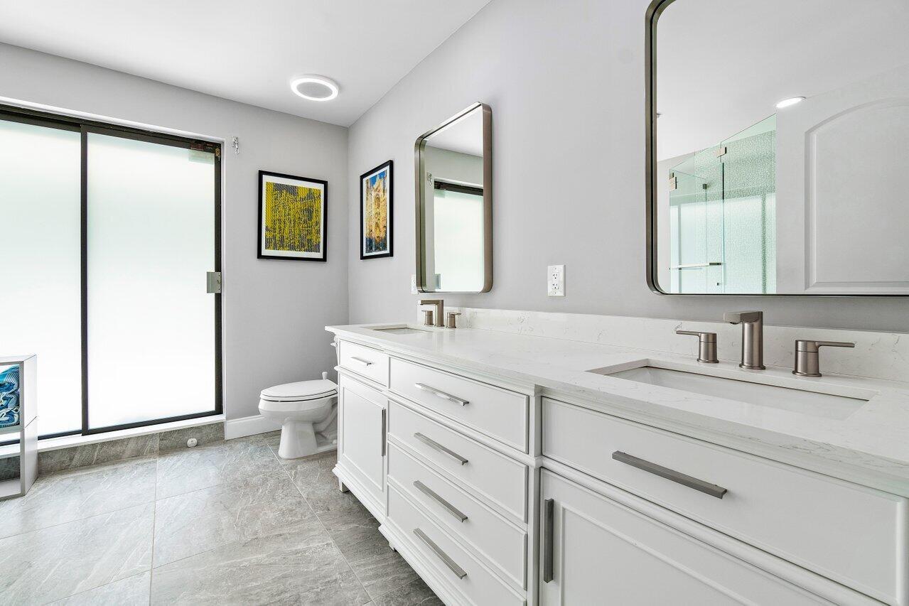 This charming single story home features 3 bedrooms and 2 bathrooms nestled on a private lot in Central Boca Raton. Step inside the double door entry to find an open floor plan that effortlessly caters to entertaining and family lifestyles. Upon entering, you are greeted by a large living area overlooking the tranquil enclosed and private back-yard oasis with a covered area and pool. Warm, calming tones infuse the entire home, creating a welcoming sanctuary. The kitchen was recently renovated with new cabinetry and stainless appliances, including a large farm sink. The kitchen is open to the large living area and also a separate dining room. All living areas are open to the fenced in backyard, for complete privacy. The primary bedroom has a walk-in closet with cabinetry and a