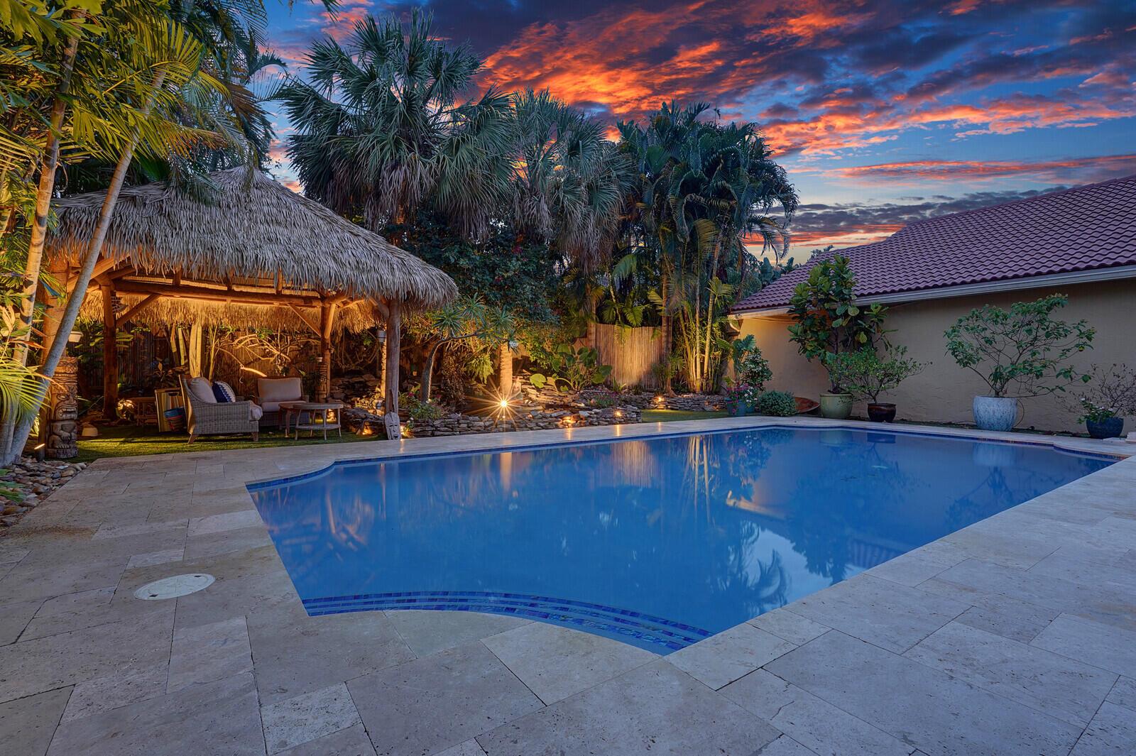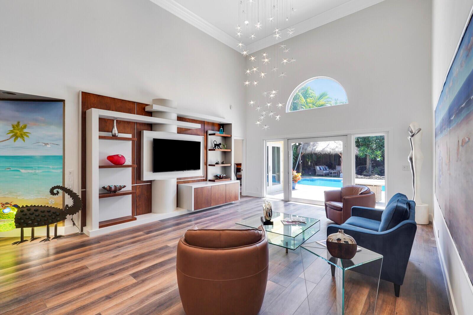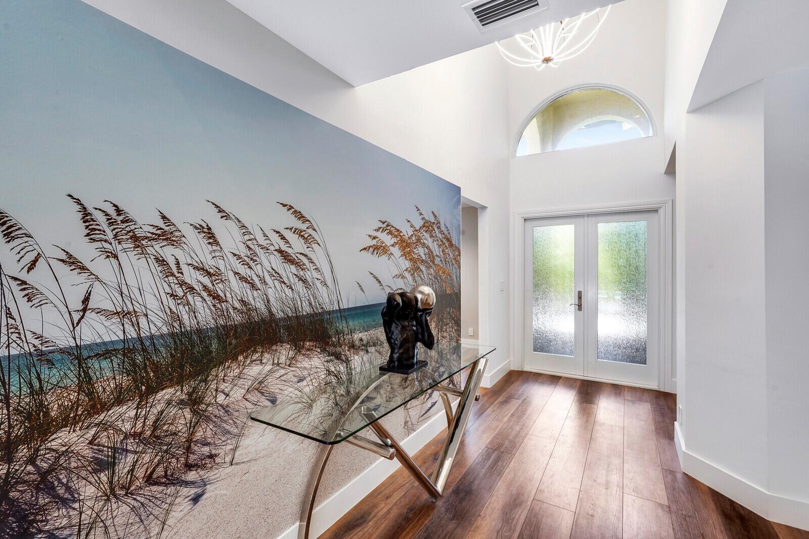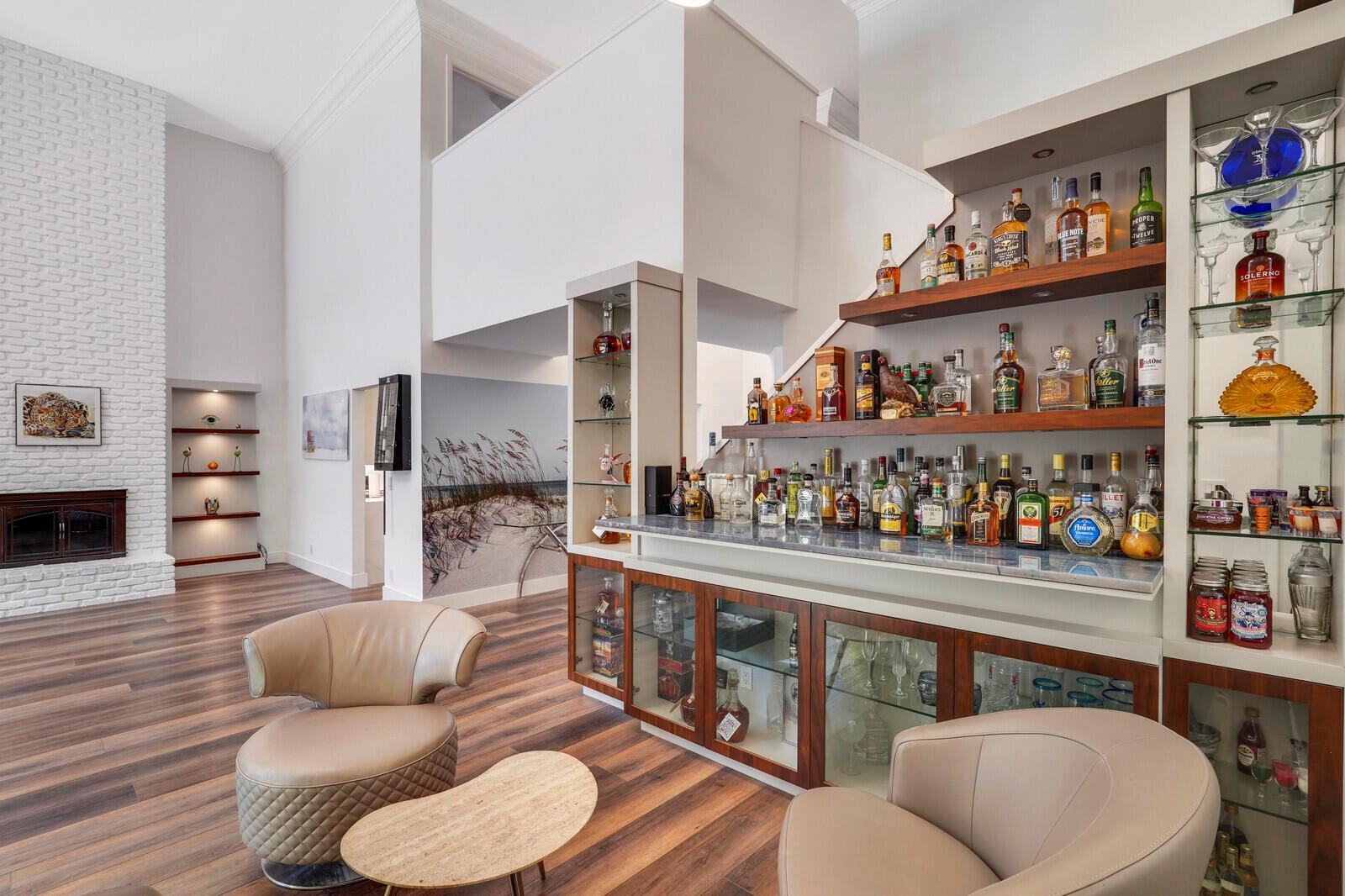 WATCH THE NARRATED VIDEO! Welcome home to the ideal blend of comfort and elegance! Nestled in a tranquil, private cul-de-sac in desirable West Boca Raton, this stunning 4-bedroom, 2.5-bathroom house offers 2573 square feet of beautifully renovated living space, designed to cater to refined tastes and practical needs. Step inside to be greeted by soaring 20-ft ceilings, an inviting dining room complete with a charming brick fireplace, a separate bar/lounge, and spacious living room. Primary suite is conveniently located on the main floor. The interior showcases custom lighting and unique artwork, setting a striking backdrop for everyday living. Luxuriate in the chef's kitchen, equipped with marble countertops, and explore the spacious bonus room perfect for a home office, wine room, study
