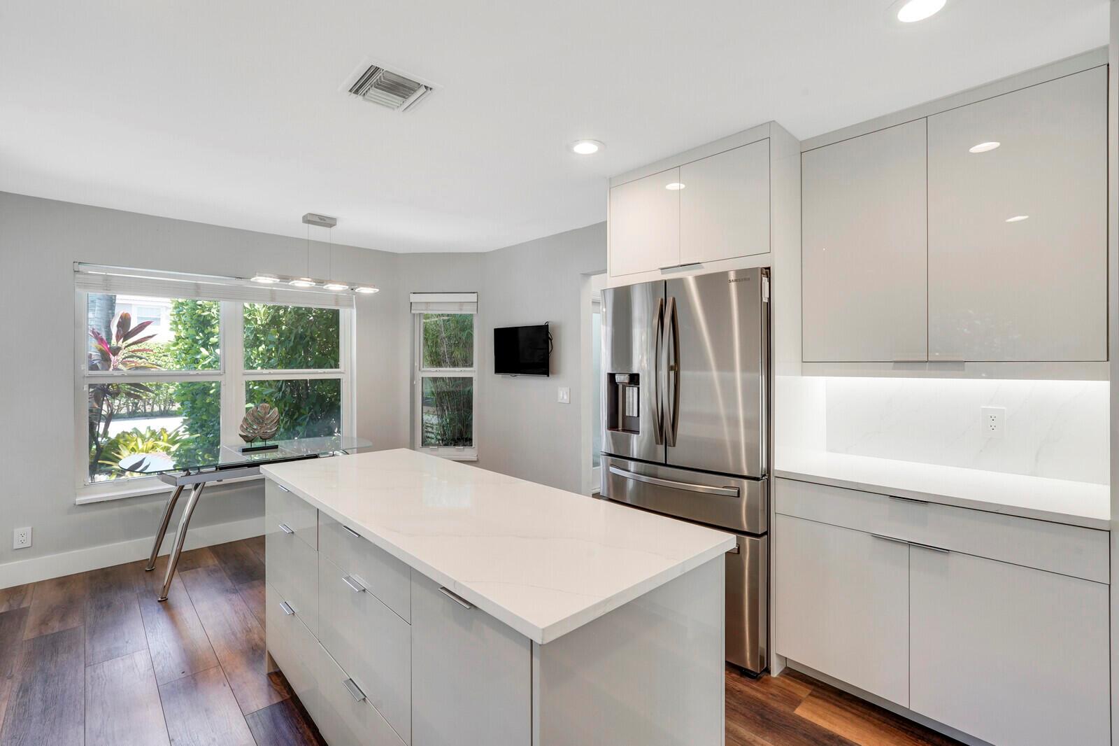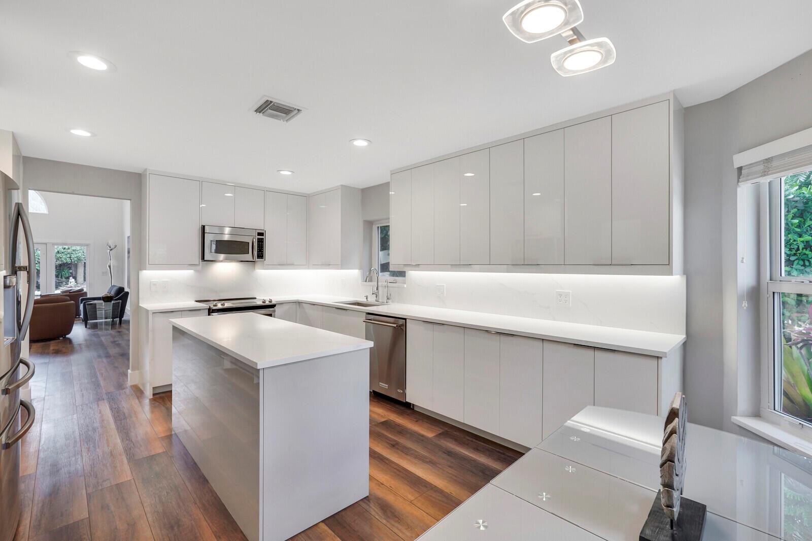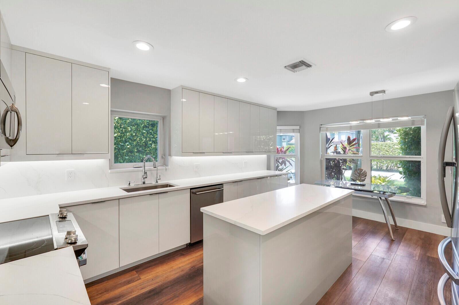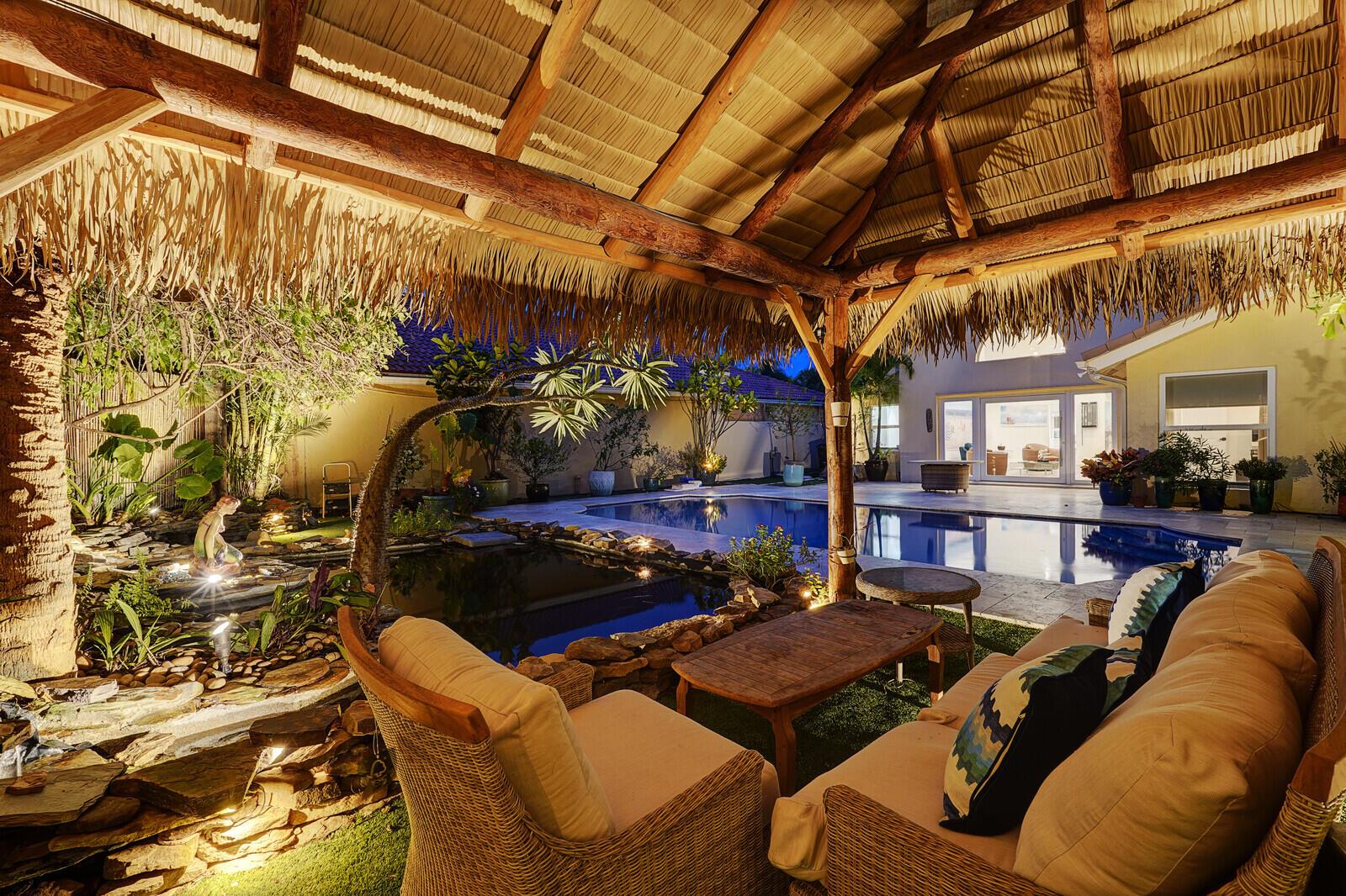WATCH THE NARRATED VIDEO! Welcome home to the ideal blend of comfort and elegance! Nestled in a tranquil, private cul-de-sac in desirable West Boca Raton, this stunning 4-bedroom, 2.5-bathroom house offers 2573 square feet of beautifully renovated living space, designed to cater to refined tastes and practical needs. Step inside to be greeted by soaring 20-ft ceilings, an inviting dining room complete with a charming brick fireplace, a separate bar/lounge, and spacious living room. Primary suite is conveniently located on the main floor. The interior showcases custom lighting and unique artwork, setting a striking backdrop for everyday living. Luxuriate in the chef's kitchen, equipped with marble countertops, and explore the spacious bonus room perfect for a home office, wine room, study