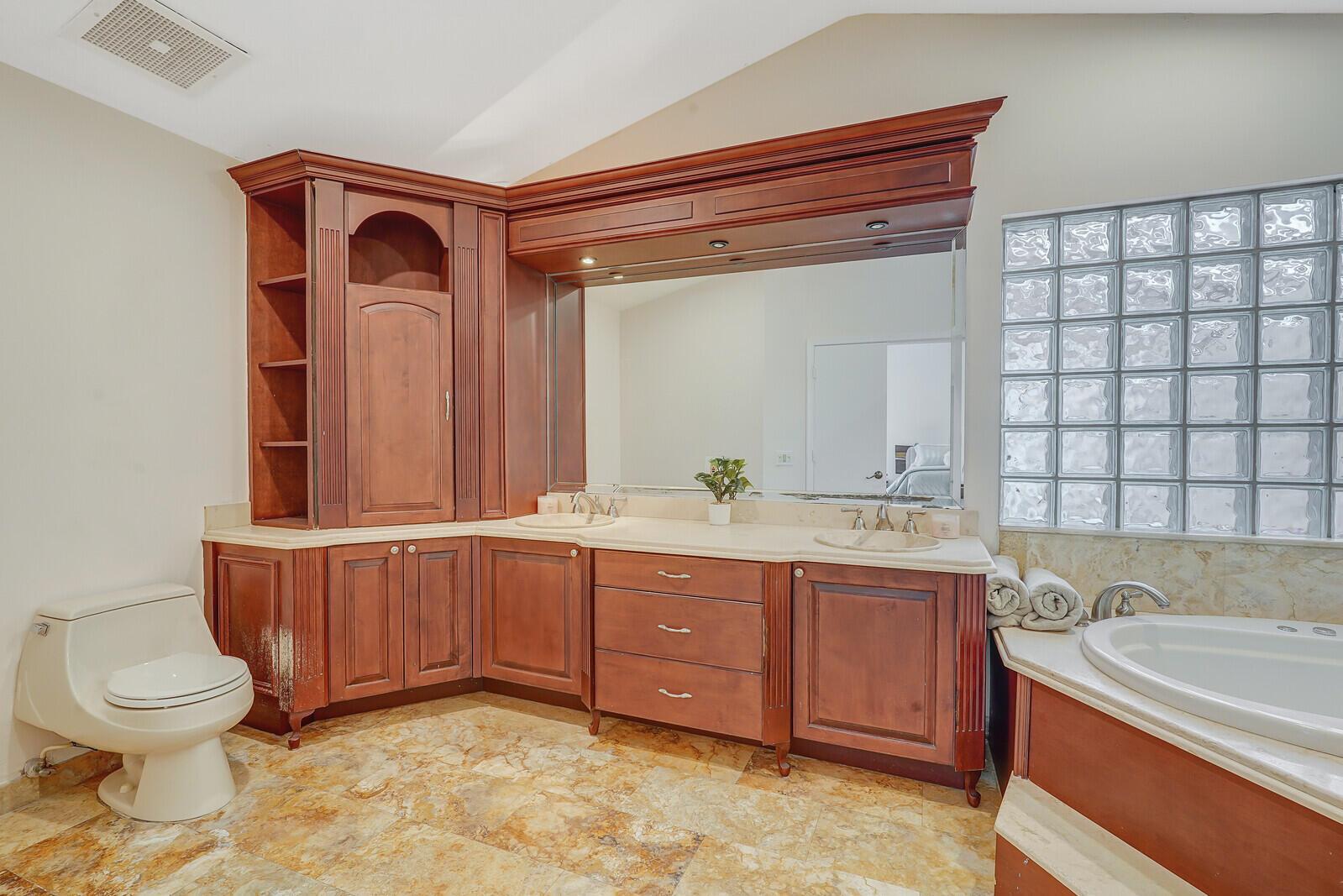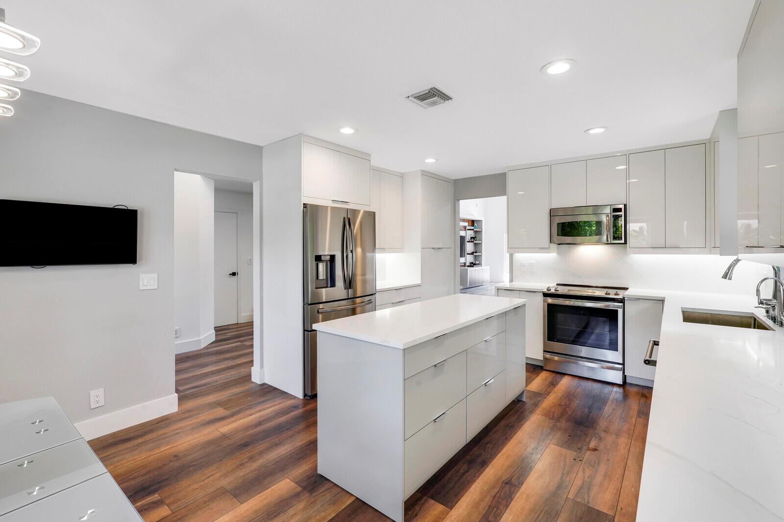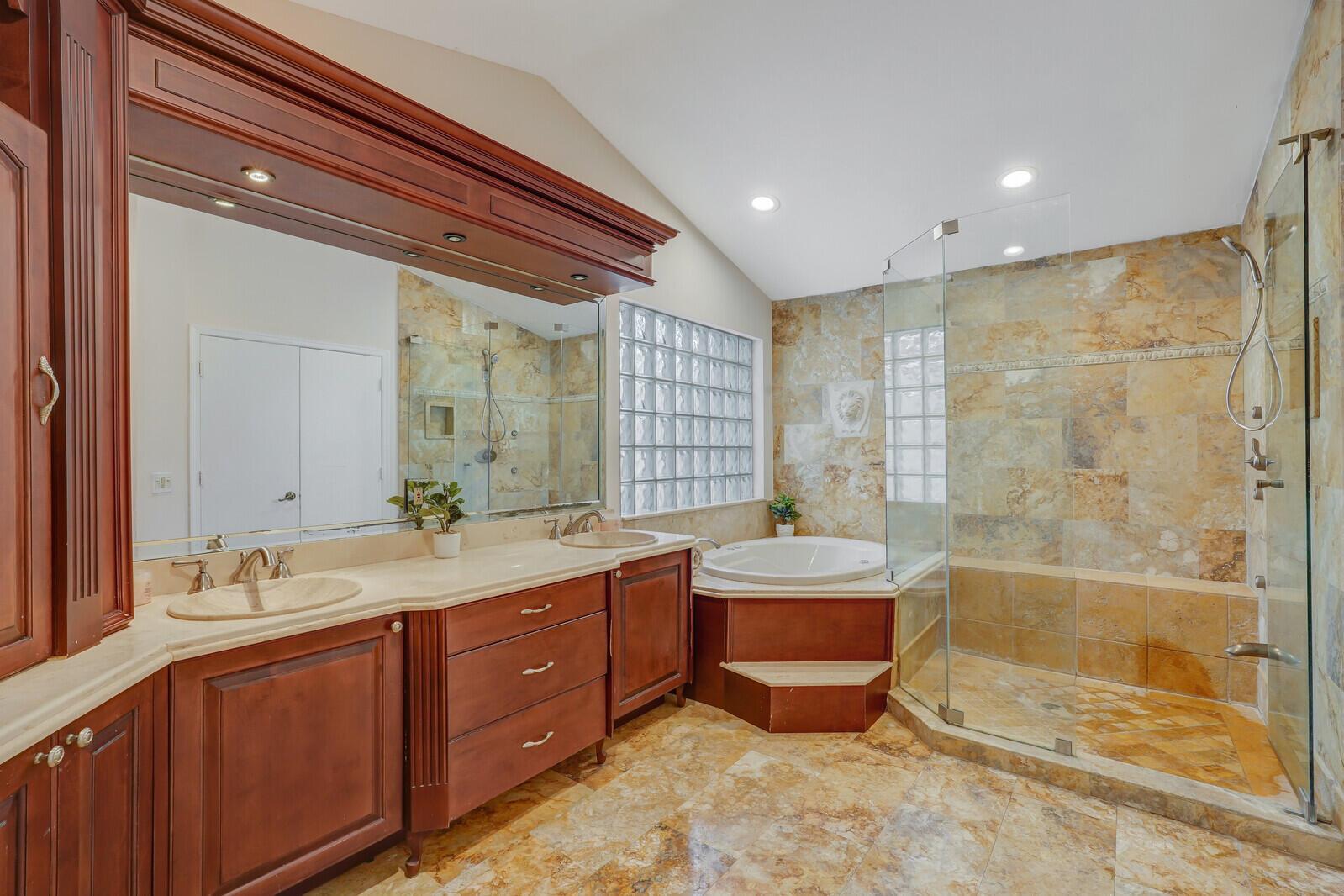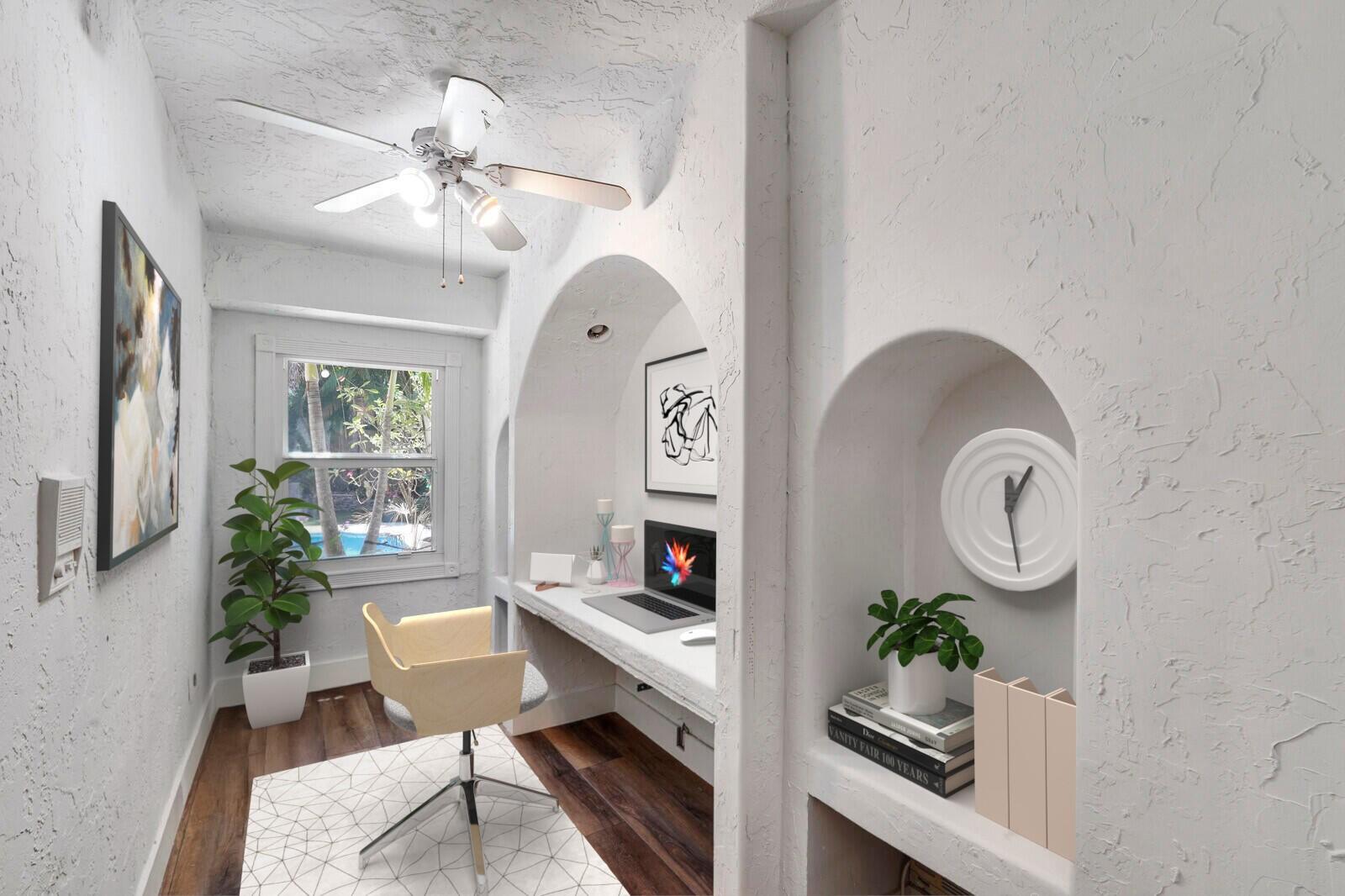 WATCH THE NARRATED VIDEO! Welcome home to the ideal blend of comfort and elegance! Nestled in a tranquil, private cul-de-sac in desirable West Boca Raton, this stunning 4-bedroom, 2.5-bathroom house offers 2573 square feet of beautifully renovated living space, designed to cater to refined tastes and practical needs. Step inside to be greeted by soaring 20-ft ceilings, an inviting dining room complete with a charming brick fireplace, a separate bar/lounge, and spacious living room. Primary suite is conveniently located on the main floor. The interior showcases custom lighting and unique artwork, setting a striking backdrop for everyday living. Luxuriate in the chef's kitchen, equipped with marble countertops, and explore the spacious bonus room perfect for a home office, wine room, study