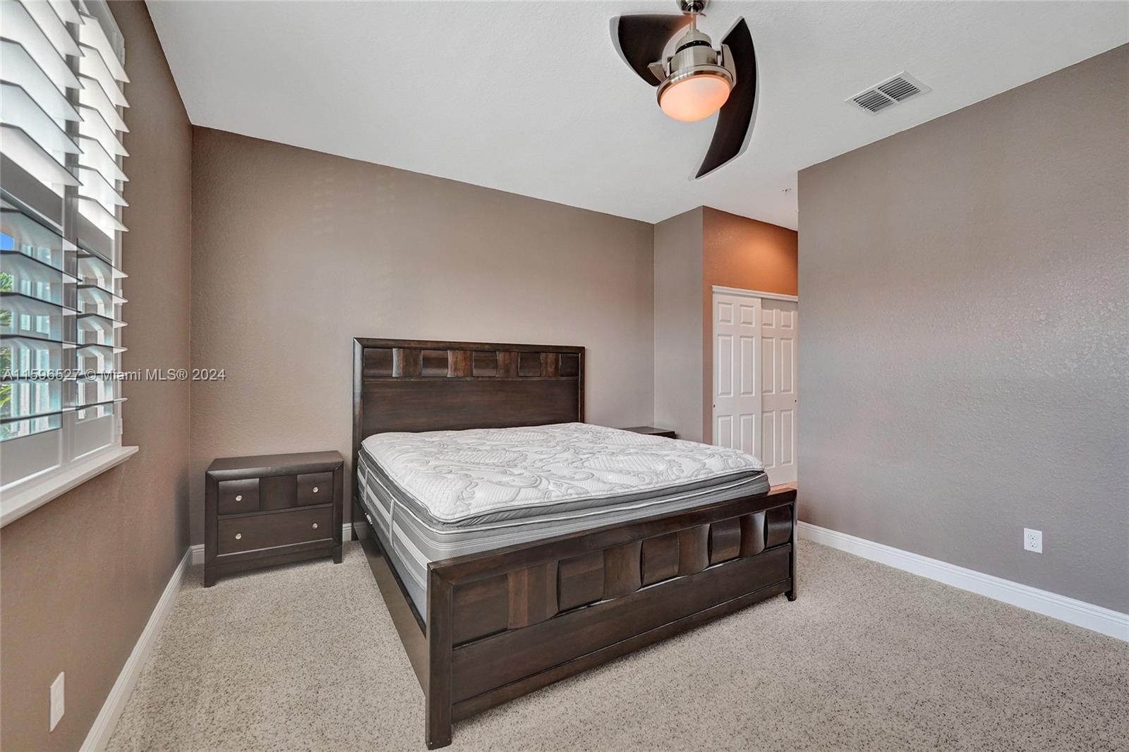 This well-maintained tri-level townhouse offers modern living with a spacious layout. The first floor includes a large living area, half bath, and a 2-car garage. The second level features a family room, dining area, open kitchen, bedroom, full bath, and private balcony. On the third floor, you'll find a spacious master bedroom and a third ensuite bedroom, providing privacy and comfort. Additional features include impact windows and doors, plantation shutters, custom closets, upgraded carpet, in-unit laundry, and direct garage access. Located near shopping, dining, parks, and major highways with a low HOA (Incl: Cable, Internet, Gated Community) this townhouse is the perfect urban retreat. Must see!