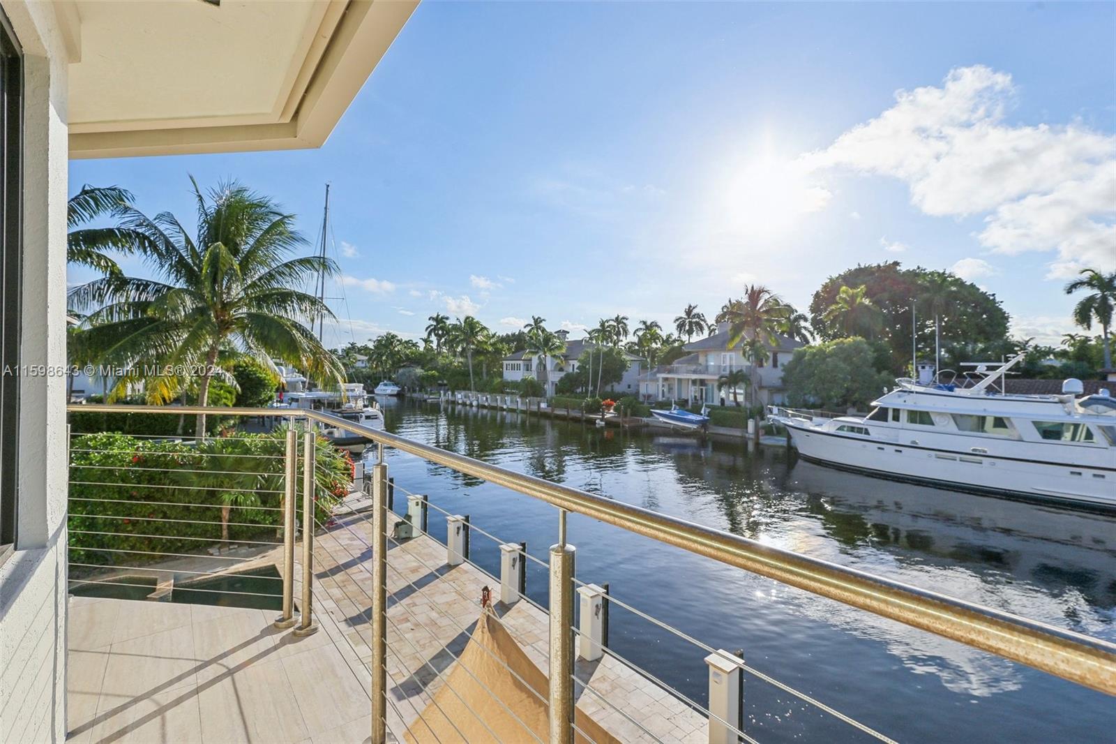 ASSUMABLE LOAN AT 2.675% INTEREST RATE. BEST DEAL IN LAS OLAS ISLES. This exquisite smart home features a modern design with an open floor plan, high ceilings, loft area, Control4 automation, large island in kitchen with natural gas, seamless access to the outside pool area, TV room, family room, and custom bar. Five bedrooms, fifth converted to an office, home theatre, music room, dining area, and fireplace. Master suite with pool views, a luxurious bath, steam shower, and walk-in closet. With 80' of water frontage, new dock, pool, and spa. Located in prestigious Seven Isles with 24/7 security, close to top schools, beach, dining. The 3-car garage with room for lifts. Year 2018 built refers to a major remodel, ensuring a blend of modernity and timeless elegance.