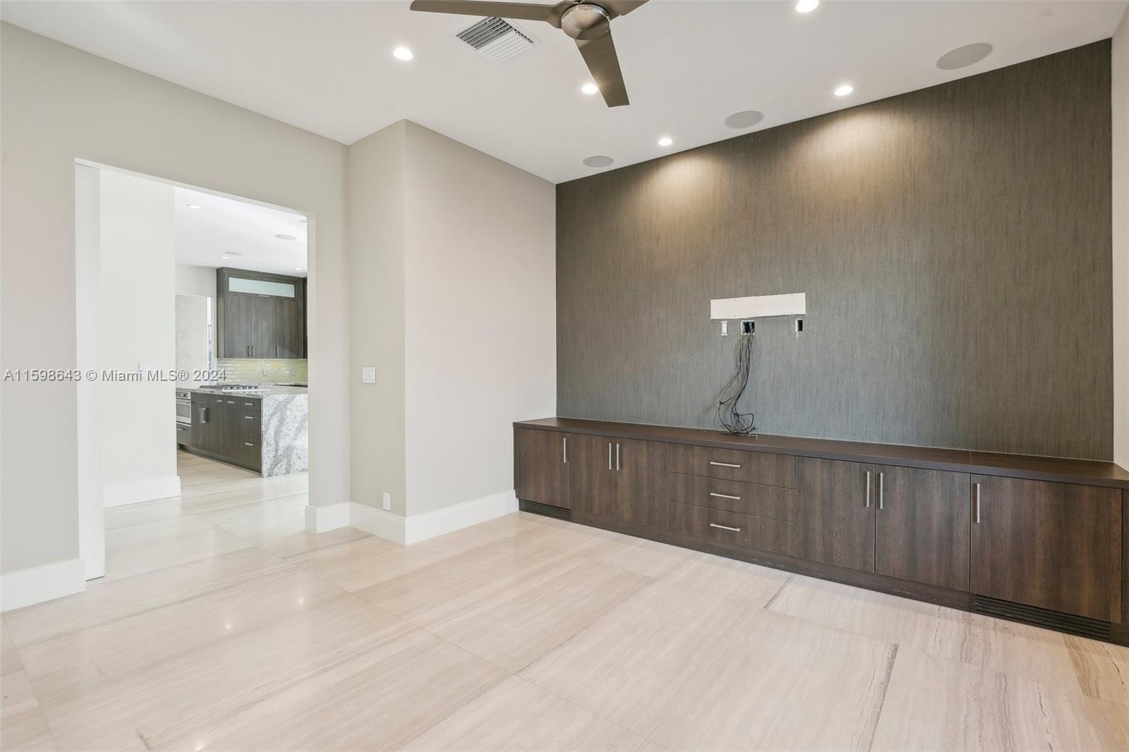 This exquisite smart home features a modern design with an open floor plan, high ceilings, loft area, Control4 automation, large island in kitchen with natural gas, seamless access to the outside pool area, TV room, family room, and custom bar. Five bedrooms, fifth converted to an office, home theatre, music room, dining area, and fireplace. Master suite with pool views, a luxurious bath, steam shower, and walk-in closet. With 80' of water frontage, new dock, pool, and spa. Located in prestigious Seven Isles with 24/7 security, close to top schools, beach, dining. The 3-car garage with room for lifts. Year 2018 built refers to a major remodel, ensuring a blend of modernity and timeless elegance.