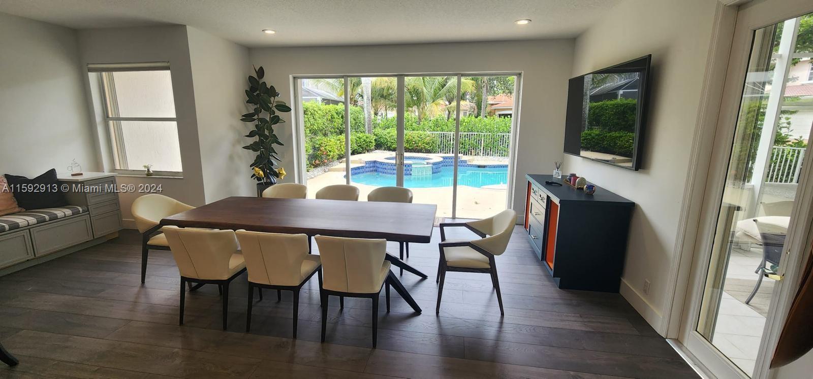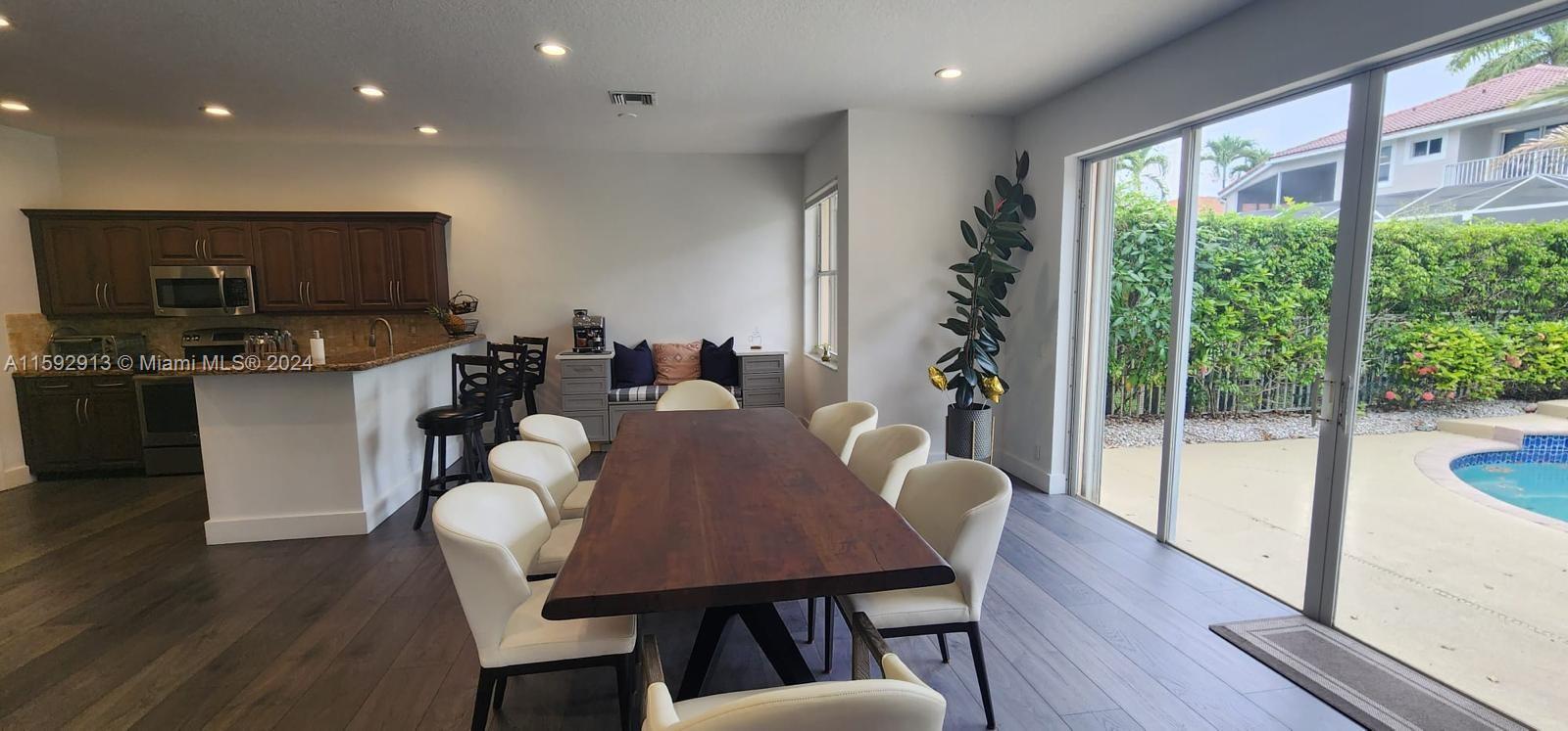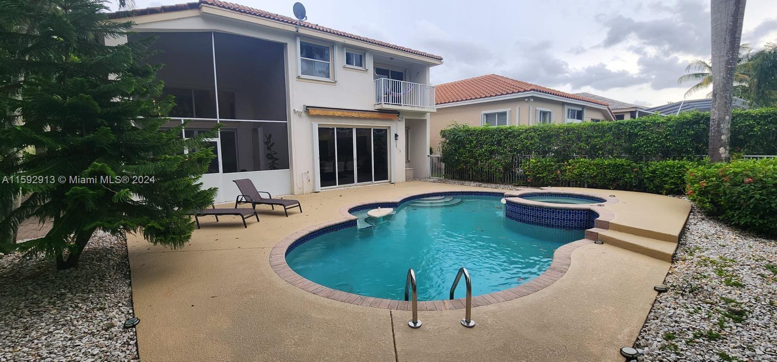 Beautifully, renovated 4 bed/ 3 bath Pool Home on an oversized corner lot in the prestigious gated golf community of Eagle Trace. Featuring an open layout w/hight ceilings plenty of natural light. Spacious living and dining room. Large Kitchen w/adjoining family room overlooking the pool and backyard, features granite countertops, S/S appliances, wood cabinets, pantry and breakfast bar. Offers a convenient bedroom & a full bath downstairs. The stairwell opens to spacious loft & a huge master suite w/open balcony overlooking the pool; walking-in closets and ensuite bath w/his and her vanities, roman tub, and separate shower. Large fenced pool and screened patio. Accordion shutters. Hurricane resistant garage door. Close to shops, restaurants and A-rated schools. Low HOA! No approval needed.