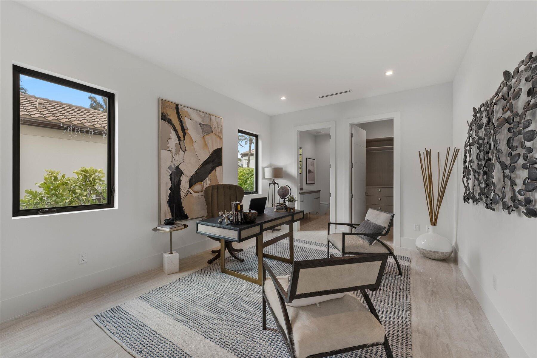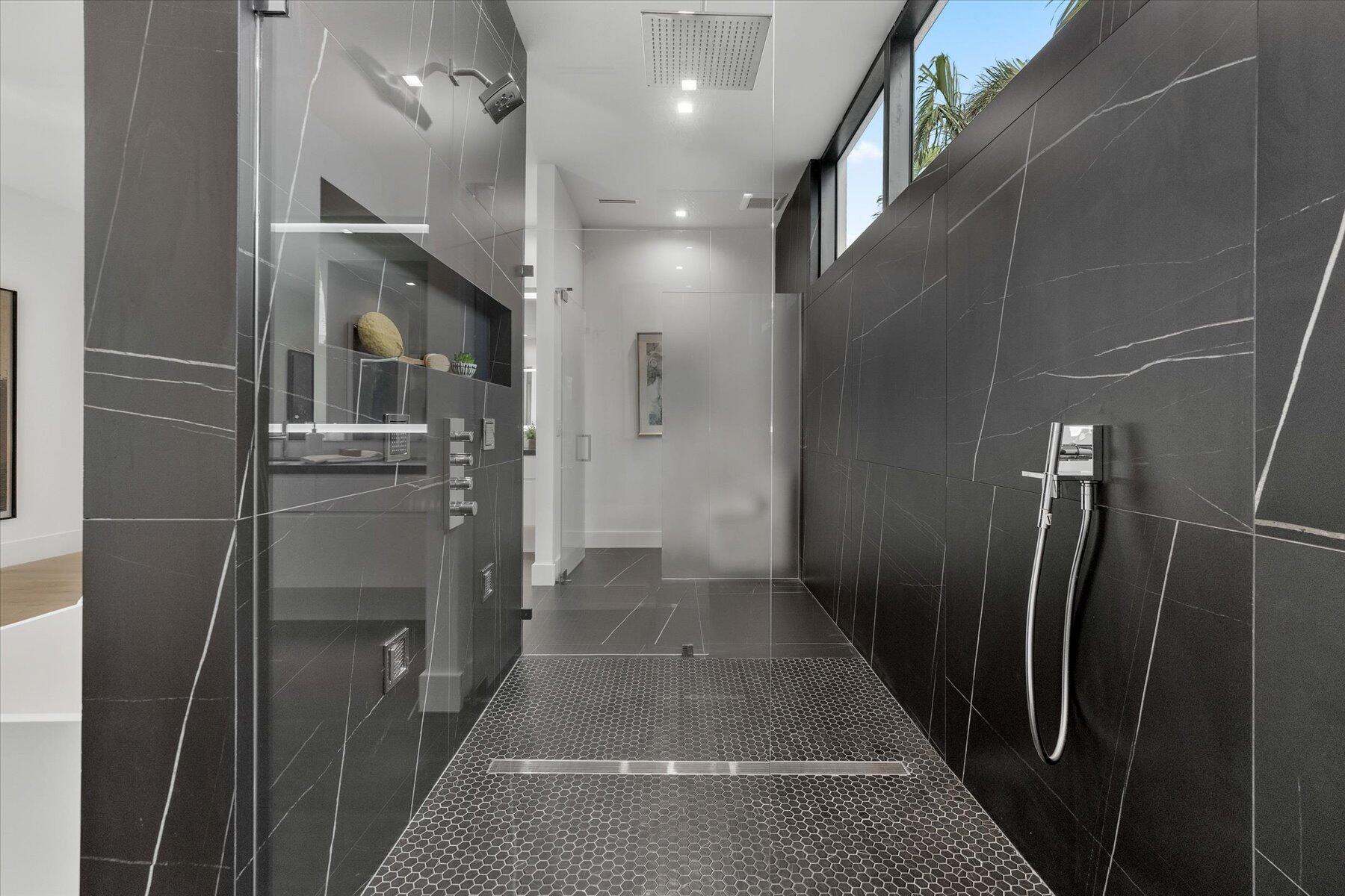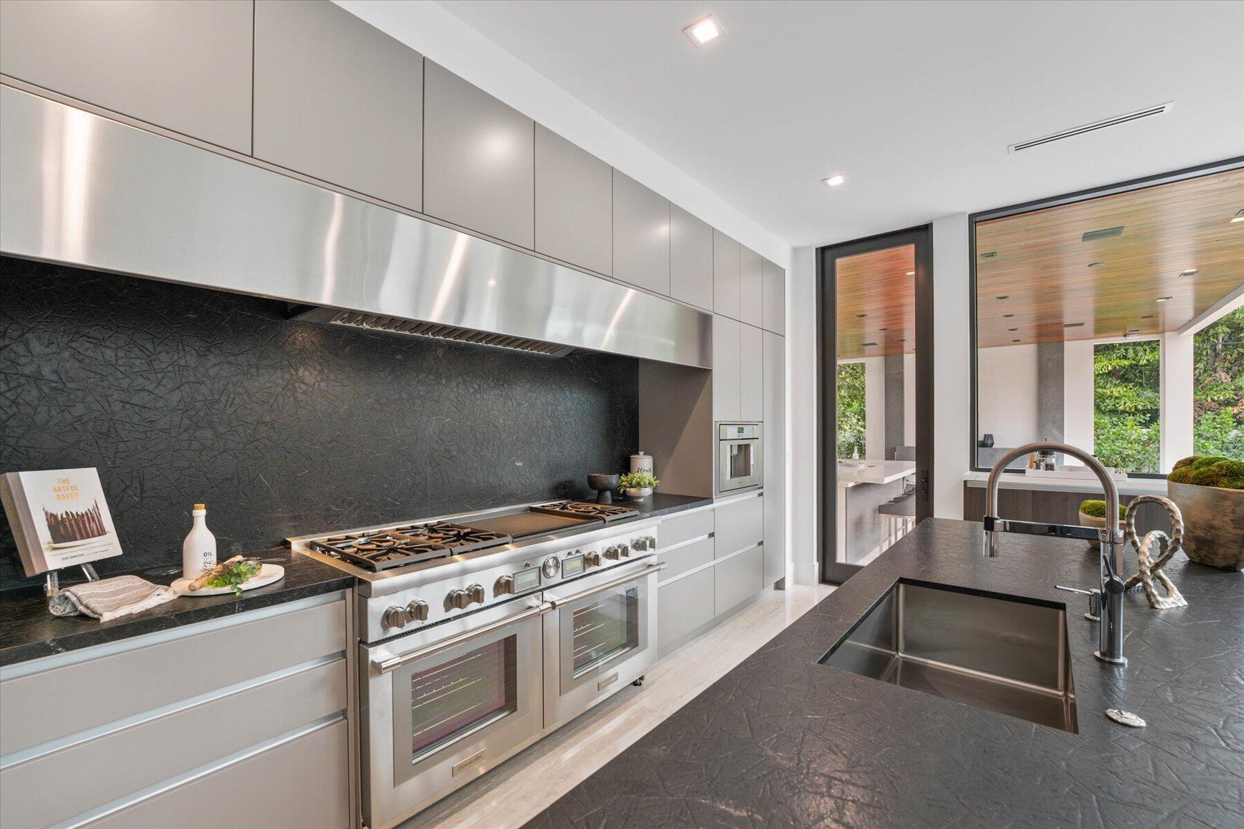 Welcome to a haven of luxury living, where every detail has been meticulously crafted to create a residence of unparalleled elegance. Situated on an oversized 15,000 sq ft lot, this magnificent home boasts a total of 9699 sq ft, with 6,557 sq ft under air. As you step through the 24 ft entryway, the grandeur of the home unfolds with a glass stairway railing that adds a touch of contemporary sophistication. The impact windows and doors throughout not only enhance the aesthetic appeal but also provide a sense of security and tranquility. This residence features 5 bedrooms and 5 full baths, along with 2 half baths, including an outside cabana bath for added convenience. The custom-designed kitchen is a culinary masterpiece, showcasing Quartz counters and top-of-the-line