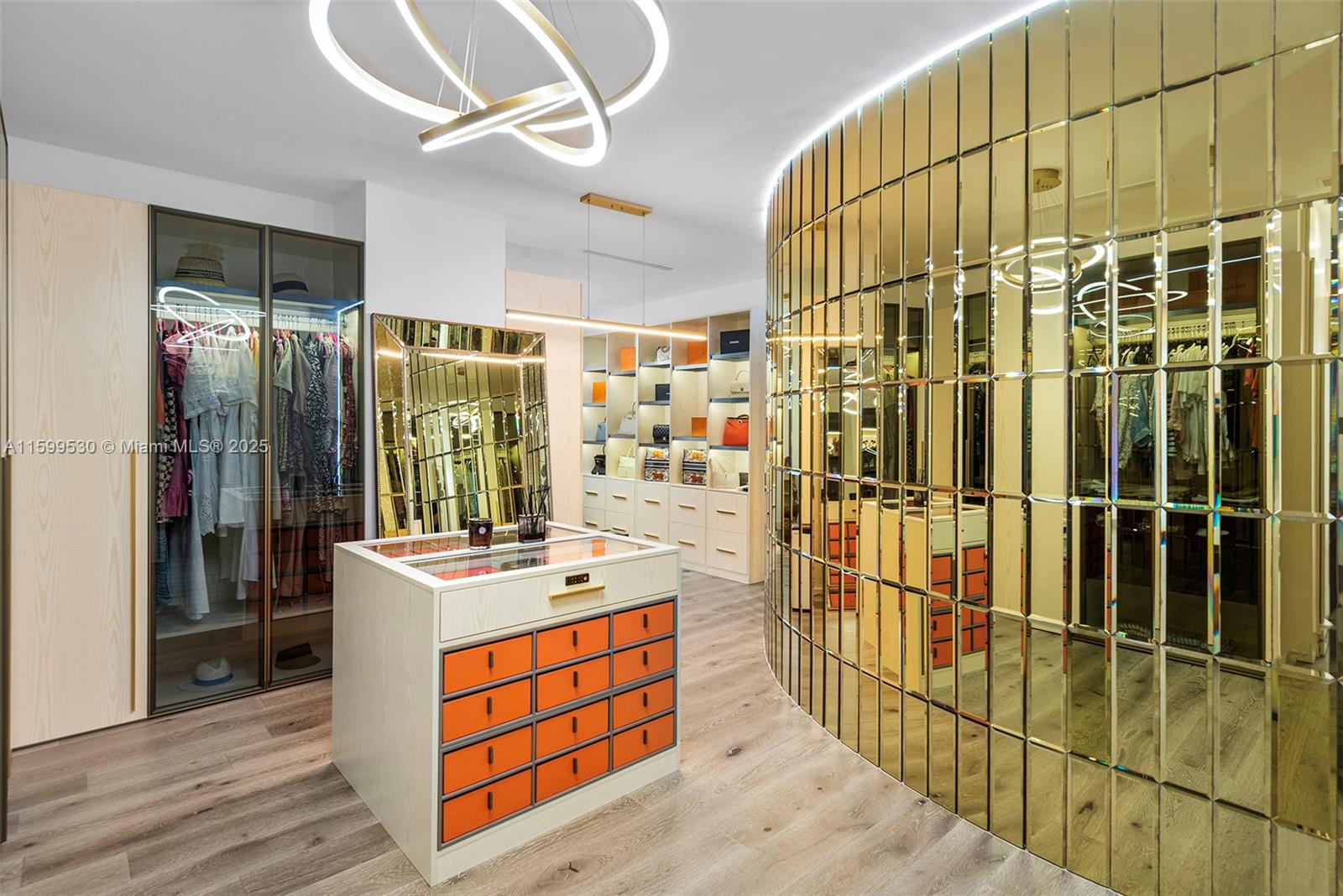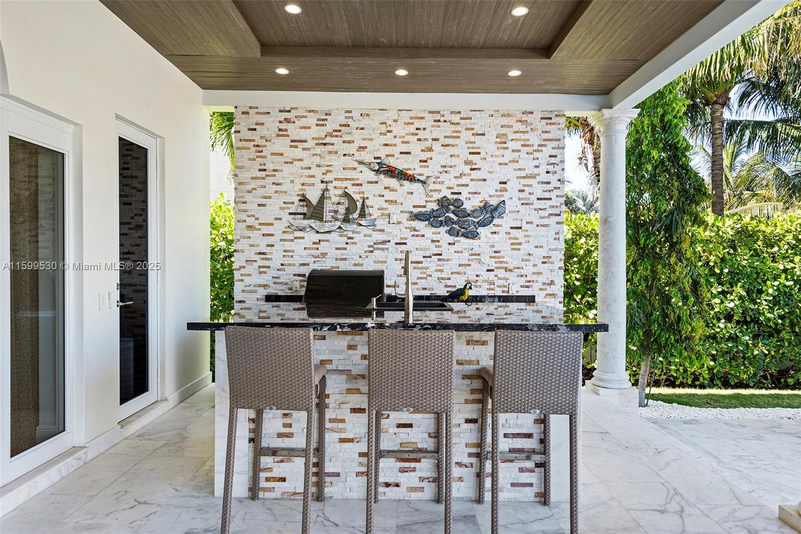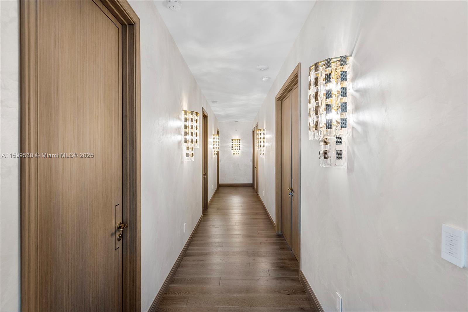 Welcome to a new-age castle in Golden Beach, a newly built custom waterfront masterpiece. This home boasts massive ceilings and a well-thought-out design with handpicked European materials and finishes. Enjoy 100 feet of private water frontage, no fixed bridges, and easy ocean access. This smart home includes an extra generator and is an entertainer's dream with open spaces featuring 13-foot ceilings, a chef's kitchen, home theater, game room, living room fireplace, built-in patio barbecue, and custom saltwater pool with jacuzzi. The primary bedroom offers a balcony, dual walk-in closets and bathrooms, and an office space. Guest bedrooms feature walk-in closets, balconies, and en-suite bathrooms. Fully furnished with Fendi, Bentley, and Visionnaire furniture.