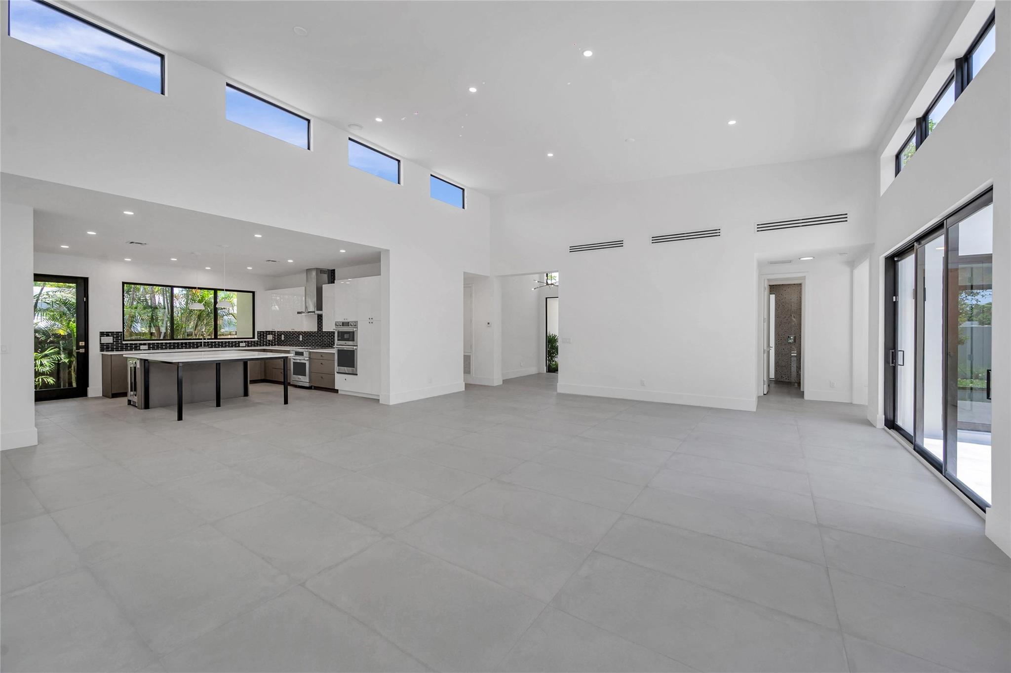 This newly constructed, single-level showplace blends luxury with contemporary style. Featuring four spacious bedrooms and a versatile media room, it combines comfort and functionality. A grand foyer leads to an interior with 14-foot vaulted ceilings and walls of glass that connect indoor and outdoor living. The covered terrace, ideal for dining and relaxation, overlooks the sparkling new pool. The chef’s kitchen boasts a large center island, top-of-the-line appliances, and an adjacent roofed area pre-plumbed for a future barbecue and wet bar. The primary suite includes a luxurious atrium bath with a soaking tub, rain shower, walk-in wardrobe, and glass sliders to the pool and gardens. On a 10,000+ square foot lot, this home’s expansive layout enhances its appeal.