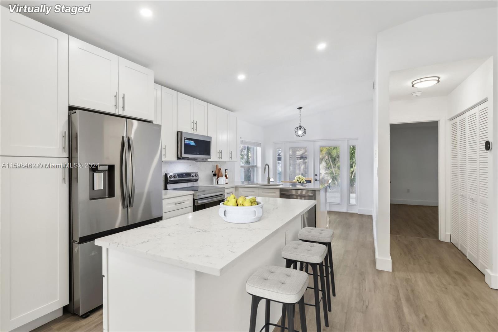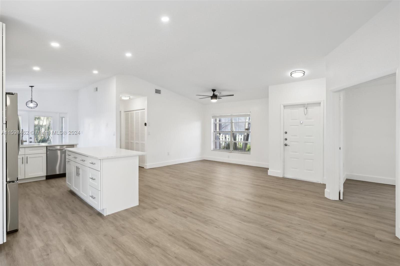 Welcome to this completely renovated 3-bed/2-bath home located in the desirable Sawgrass Sunrise area. Featuring an additional room that can serve as a den or fourth bedroom, this home boasts an open floor plan designed for modern living. Step into the beautiful New Kitchen, complete with a spacious island, quartz countertops, and stainless steel appliances. The wood floors throughout add a touch of elegance, while the gorgeous new bathrooms provide a luxurious feel.The home is filled with natural light, creating a warm and inviting atmosphere. The fenced yard offers privacy and is perfect for entertaining guests. This stunning home is a must-see! HOA covers landscaping maintenance and community pool. Schedule your showing today and experience the perfect blend of style and comfort.