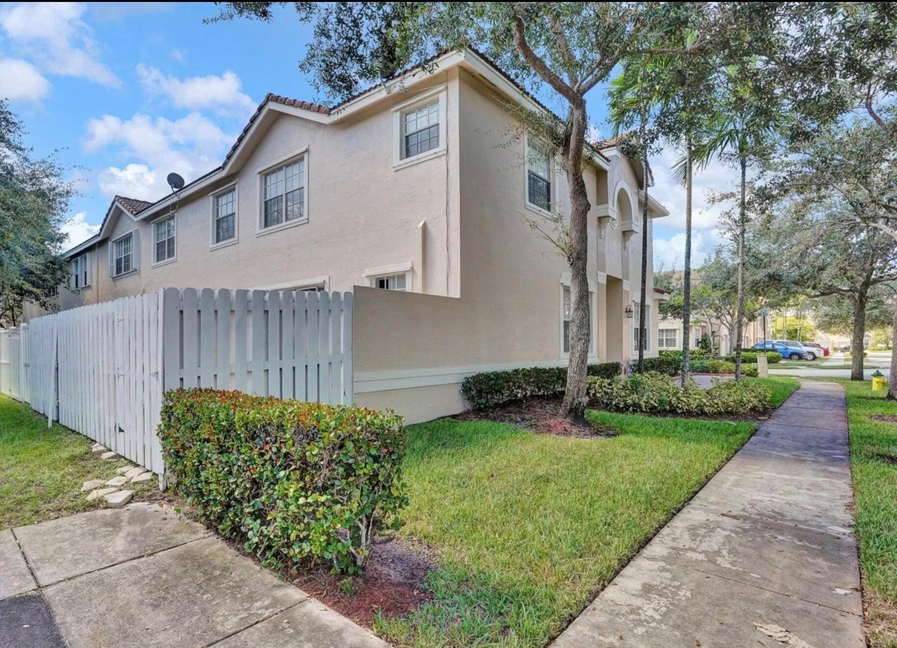 Welcome to this stunning corner unit townhouse built in 2005 with 3 bedrooms, 3 full bathrooms, a den that could be converted to a 4th bedroom, and a 1 car garage in a gated community in Silver Falls, West Miramar. Features include porcelain tiles, laminate flooring, upgraded kitchen with stainless steel appliances, granite countertops, knock-down walls and ceilings, laundry room on the 2nd floor, a large fenced outside patio for entertaining, hurricane panels, new roof and a community clubhouse with lots of amenities and guest parking. Close to shopping, restaurants, parks, hospitals, highways, and more. This pet and family-friendly neighborhood is in a good school district. Don't miss out on this opportunity!