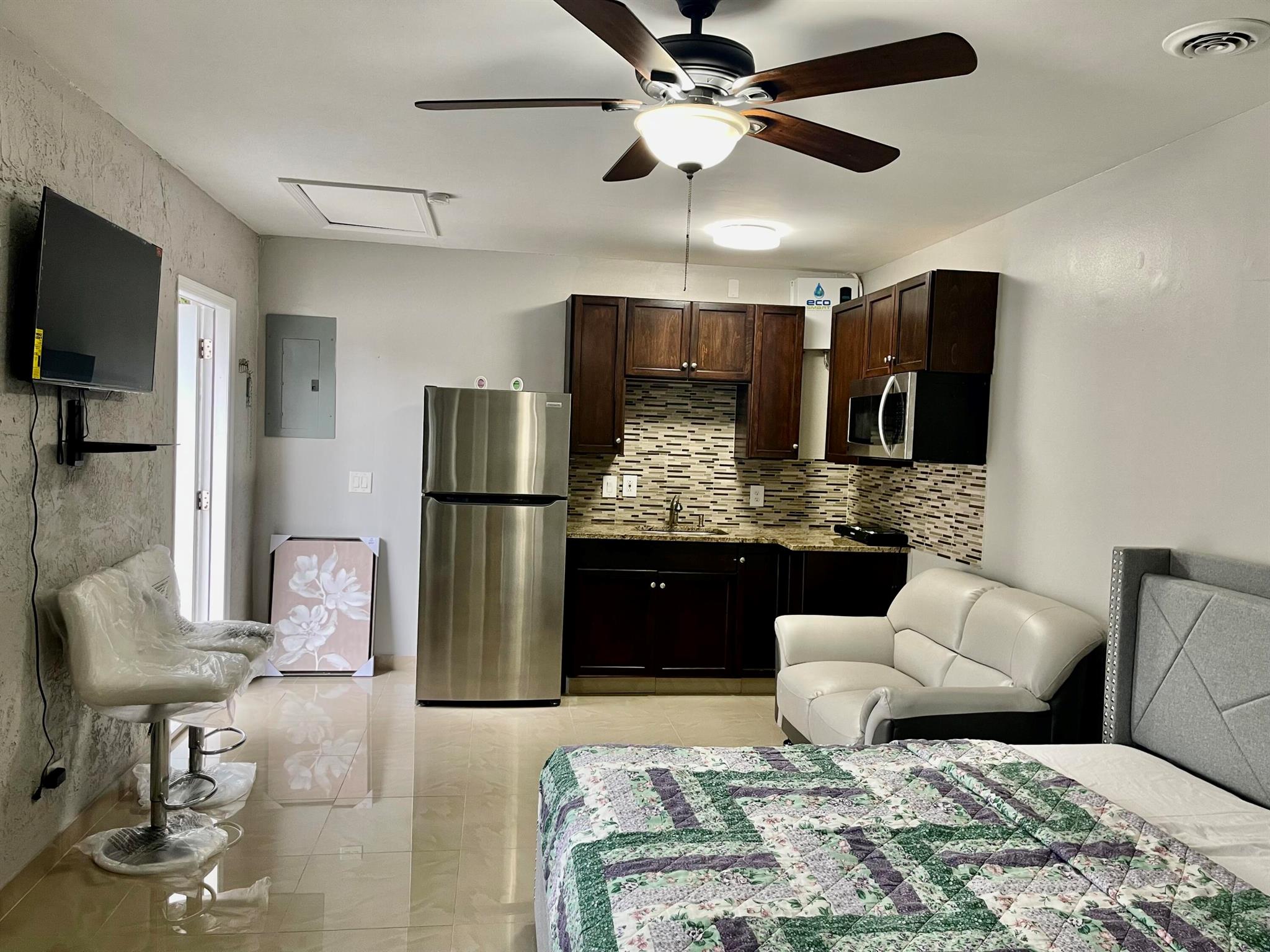 GREAT OPPORTUNITY FOR INVESTORS OR FIRST TIME HOME BUYERS! NO HOA!!! Absolutely stunning 3 bedrooms, 2 bath (Main house) and 2 Efficiency furnished and currently rented. This single-family home is located on a NICE lot in a Cul-de-sac. Kitchen, granite countertops, stainless appliances, laminated wood flooring throughout, and custom lighting. The home is a perfect fit for any size family and has a fenced yard for entertaining. Additionally, the home has plenty of extras, including a private, oversized yard, pavers thought the yard, enclosed lanai and more. NEW ROOF WILL BE INSTALLED PRIOR TO CLOSING. This house will fit your needs; it has a lot of potential. Located close to shopping, dining and beautiful beaches, Call today for a private showing.