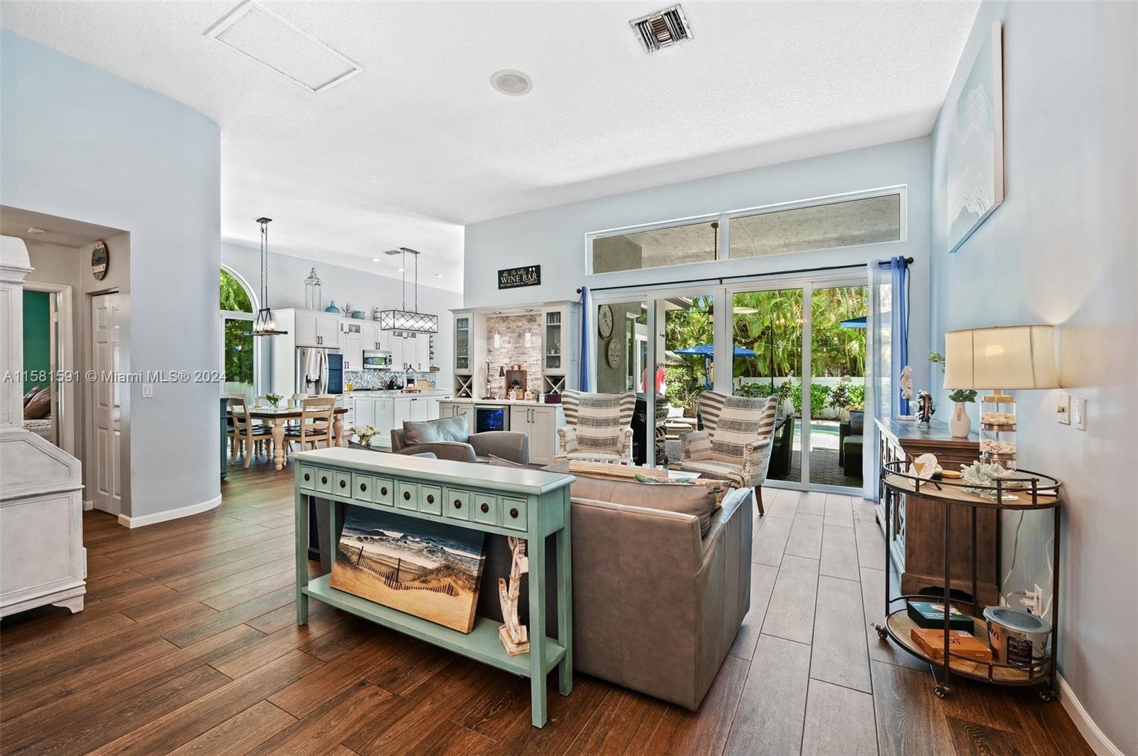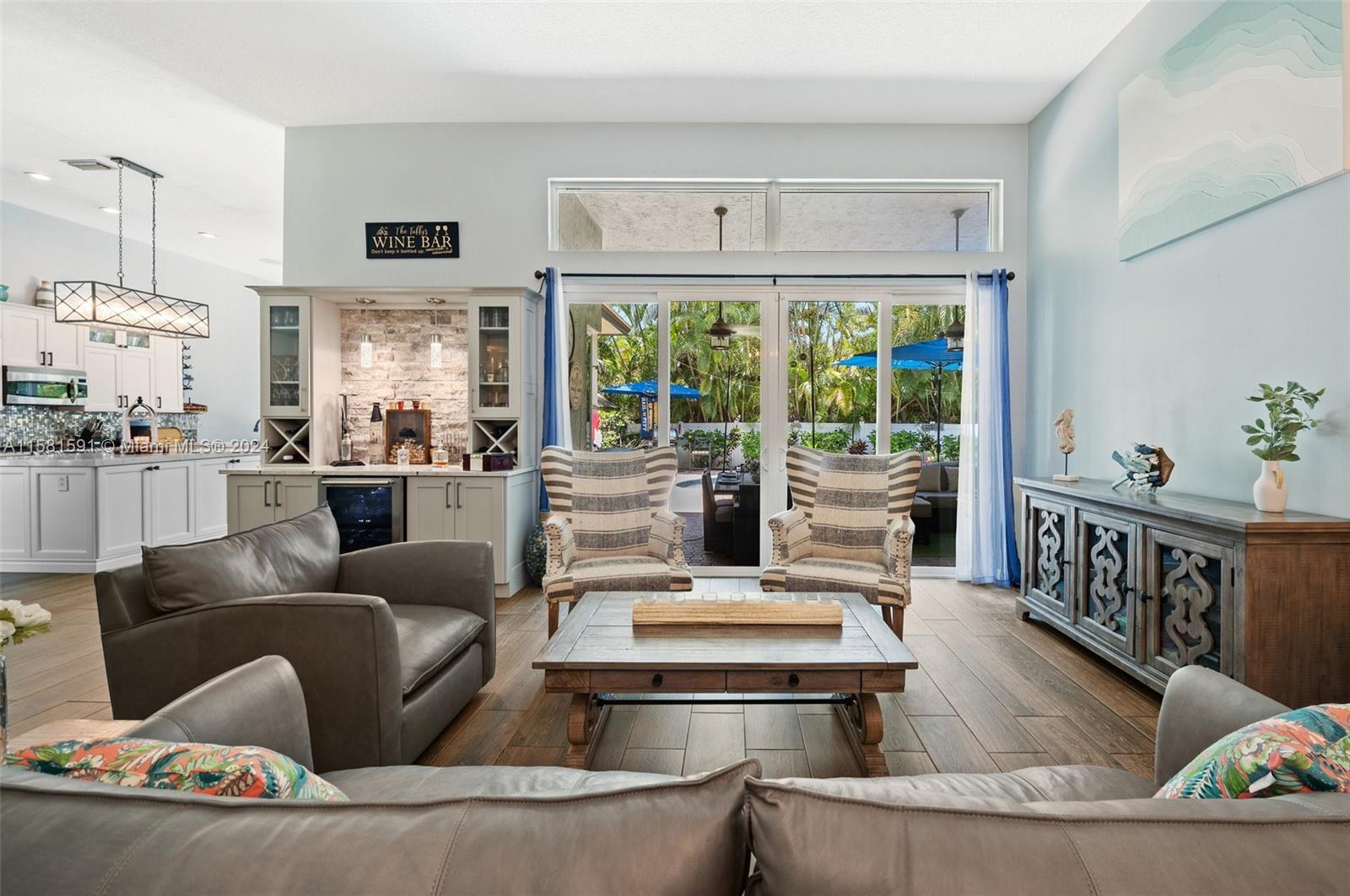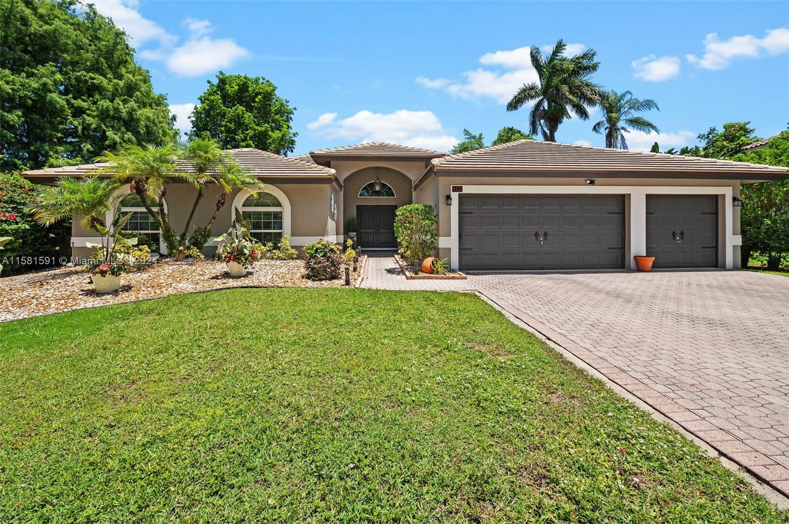 Exquisitely renovated with attention to detail, this desirable 1 story home blends casual elegance, and beautiful custom features. It's one of a kind with an open concept floor plan & 18 ft volume ceilings. True 5/3, nestled on a private pie shaped cul-de-sac lot, 3 C GARAGE with extended driveway, Accommodates 6 cars. PVC FENCED BACK YARD with FREE FORM POOL & tropical landscaping. This one checks every box - NEW IMPACT GLASS, NEW ROOF, NEW KITCHEN W/QUARTZ COUNTERS, NEW SS APPLIANCES, LUXURIOUS MASTER BATH, NEW 2nd & 3rd BATHS, BUILT-IN WINE BAR, A/C REPLACED in 2020, CUSTOM LAUNDRY SINK, CENTRAL VAC, GARAGE A/C, WOW! Just what you've been looking for! Turtle Run is an upscale family estate home community that is centrally located w/easy access to Ft Laud, Miami, Palm Beach & West Coast.