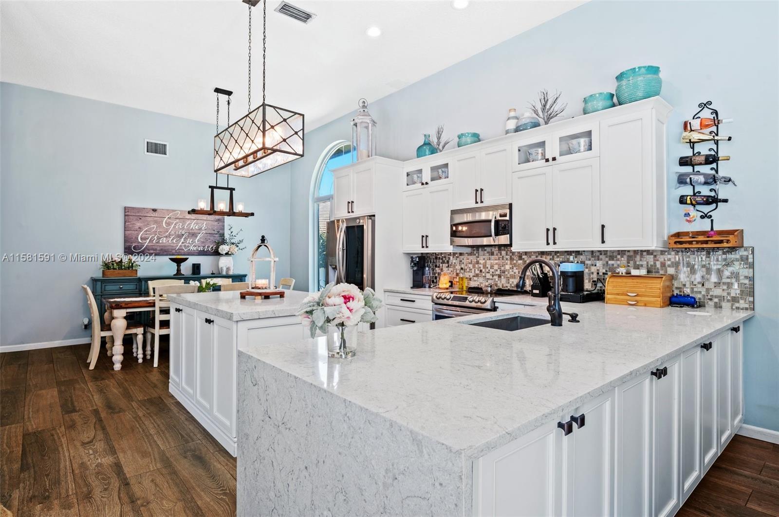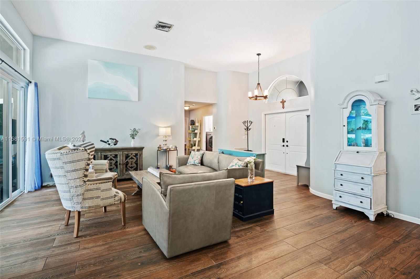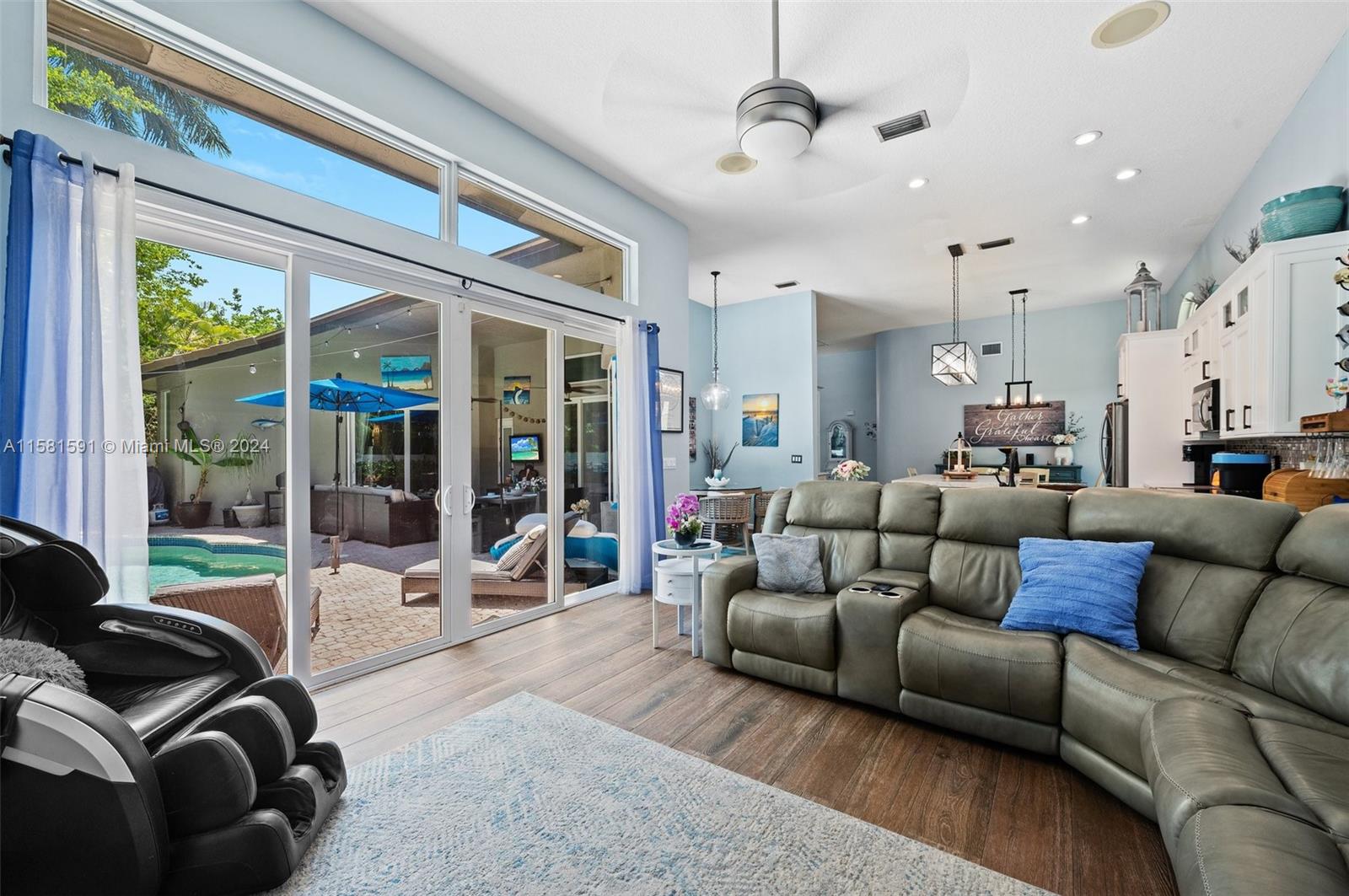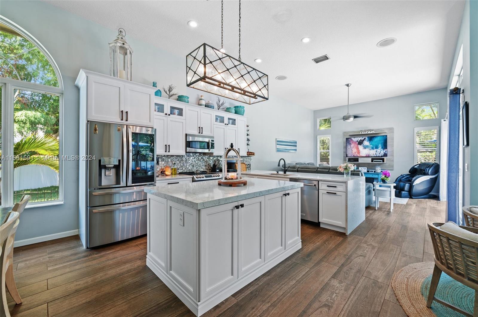 Exquisitely renovated with attention to detail, this desirable 1 story home blends casual elegance, and beautiful custom features. It's one of a kind with an open concept floor plan & 18 ft volume ceilings. True 5/3, nestled on a private pie shaped cul-de-sac lot, 3 C GARAGE with extended driveway, Accommodates 6 cars. PVC FENCED BACK YARD with FREE FORM POOL & tropical landscaping. This one checks every box - NEW IMPACT GLASS, NEW ROOF, NEW KITCHEN W/QUARTZ COUNTERS, NEW SS APPLIANCES, LUXURIOUS MASTER BATH, NEW 2nd & 3rd BATHS, BUILT-IN WINE BAR, A/C REPLACED in 2020, CUSTOM LAUNDRY SINK, CENTRAL VAC, GARAGE A/C, WOW! Just what you've been looking for! Turtle Run is an upscale family estate home community that is centrally located w/easy access to Ft Laud, Miami, Palm Beach & West Coast.