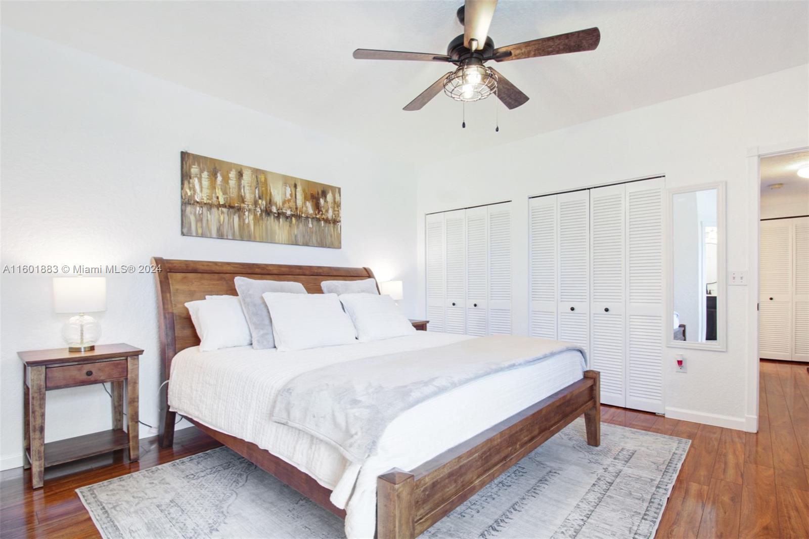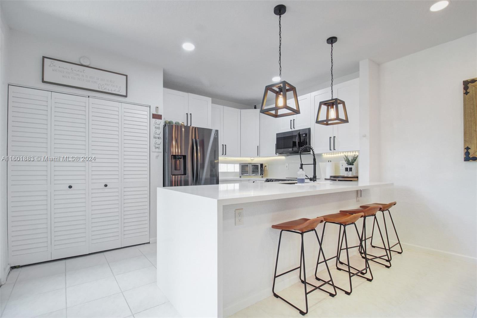 Beautiful 3 bed, 2.5 bath corner unit townhouse with water view. This home features an open floor plan, and a remodeled kitchen with white shaker cabinets, black stainless steel Samsung appliances, and large quartz countertops. Enjoy white porcelain tile floors downstairs, laminate floors upstairs, and recently renovated bathrooms. The home includes new double-layer high-impact windows with Argon, a brand-new 2-stage 3-ton A/C, and a 2-year-old wifi-enabled water heater. The community offers a pool, and the HOA covers the building exterior, common areas, landscaping, outside maintenance, pool service, and roof repairs. Close to excellent schools, shopping, and major highways. It includes 2 parking spaces and a new roof installed last year. Schedule your Showing!