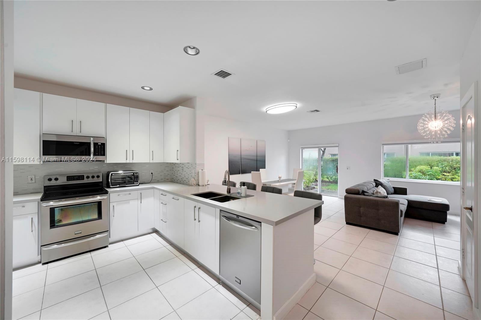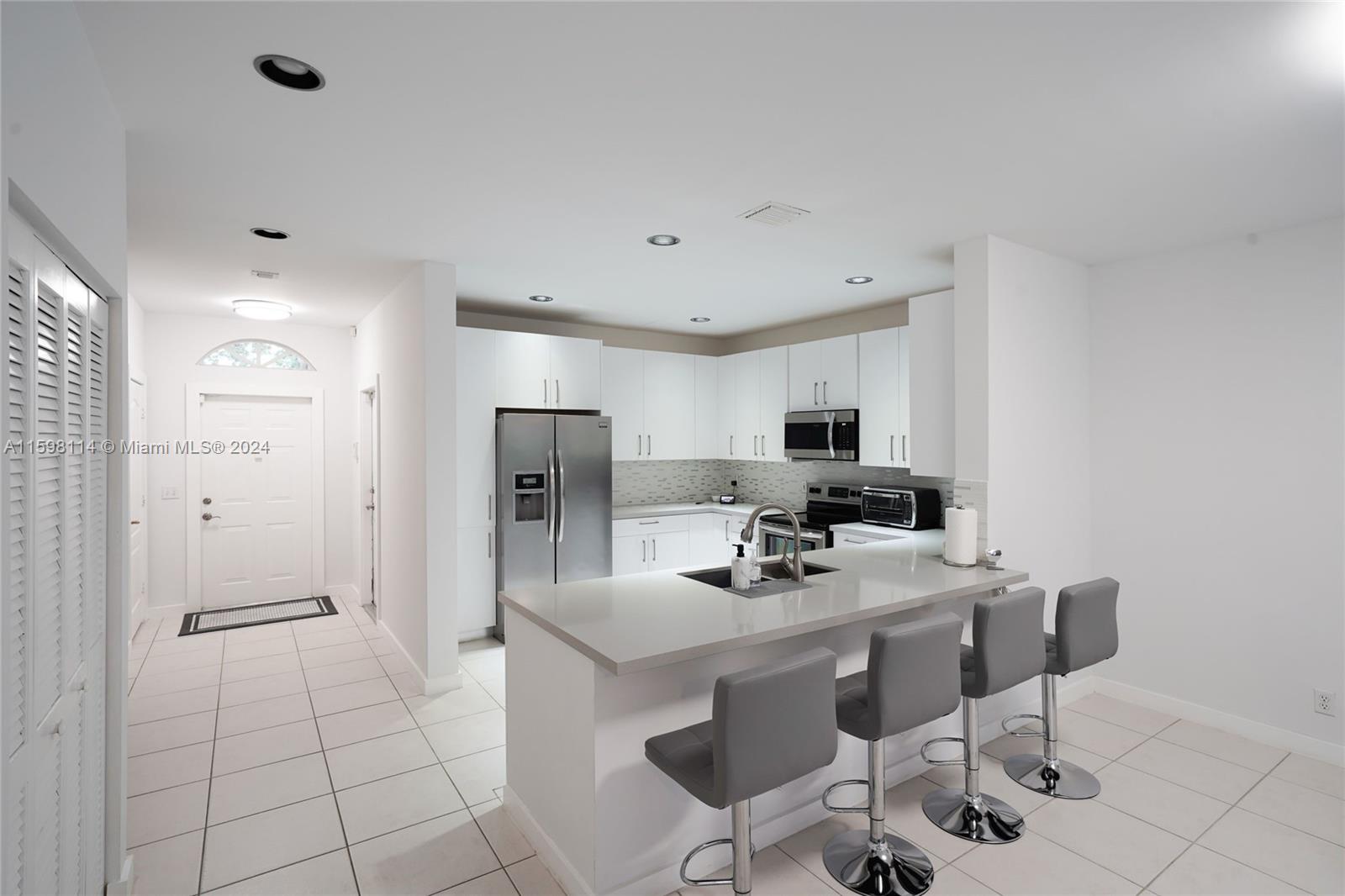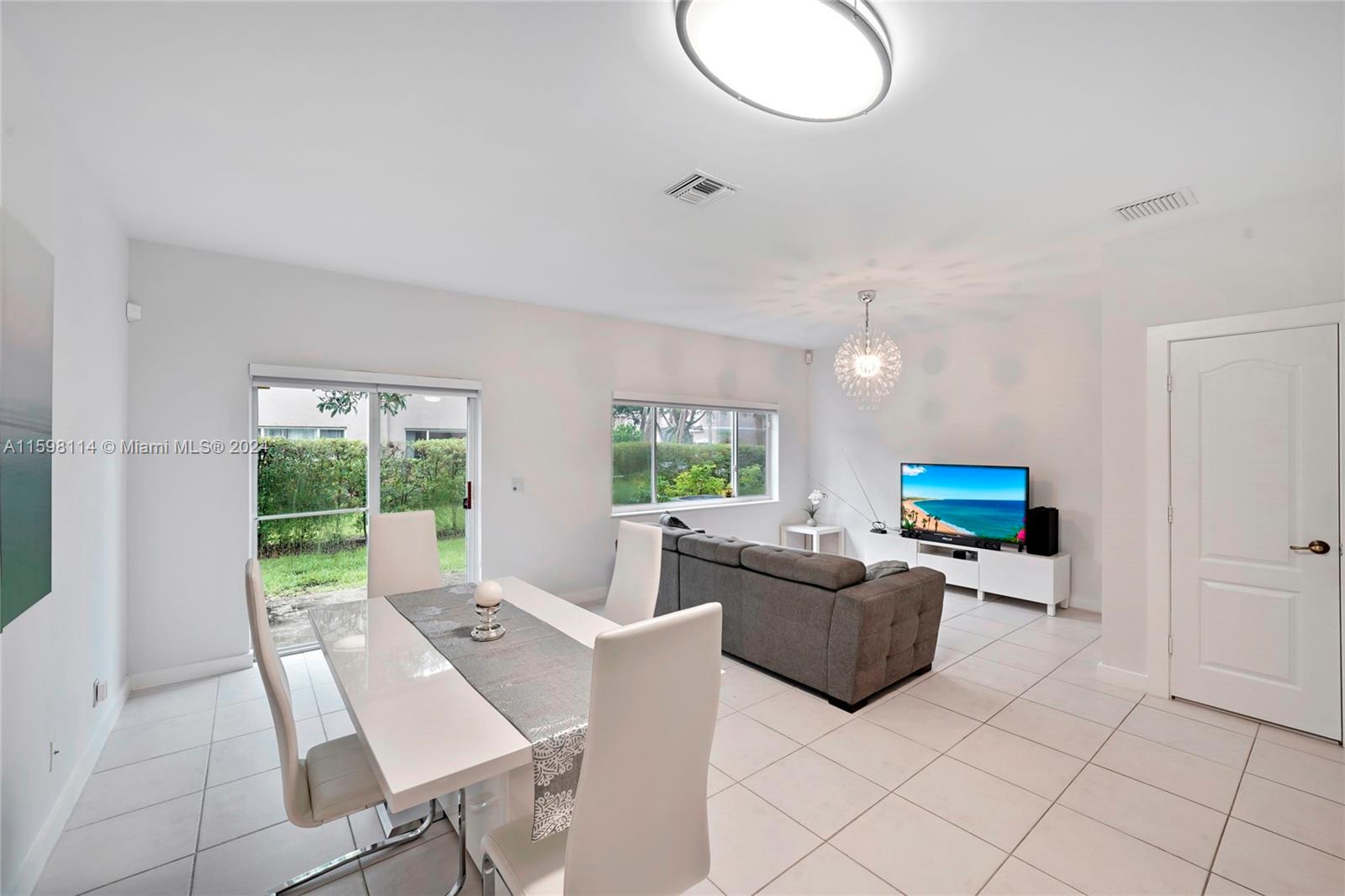 Beautifully remodeled townhouse in mint condition at Plantation Trace. 3 bedrooms and 2.5 baths, with tile floors on the first floor and laminate on the second. The open concept kitchen, living, and dining area is perfect for entertaining. The large master bedroom features walk-in closets, a seating area, with a soaking tub and step-in shower. Roomy guest bedrooms have ample closet space. laundry room, storage, and a one-car garage with a driveway for two cars. The HOA maintains lawn service. An outdoor patio is ideal for grilling and family gatherings. Amenities include the community pool and children’s playground. Excellent school district, the home is moments from Sawgrass Mills Mall and major highways. A new roof was installed on March 8, 2024, new asphalt pavement coming August 2024