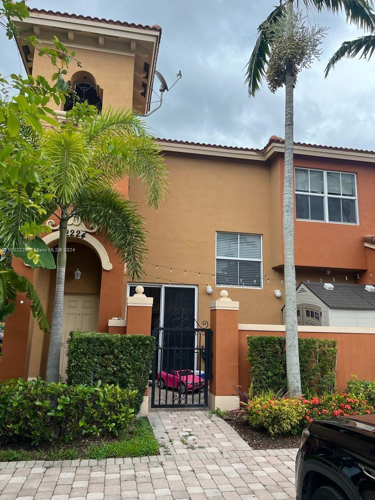 This corner lot townhouse is in a gated community that has playgrounds, neighborhood trails, and a community swimming pool. On the first floor, there is a living room and dining room and other space for a TV room or office with a small cellar under the stairs, it has a half bathroom for the social area. The kitchen features granite countertops, wood cabinets, and stainless steel appliances. On Second floor, there are three large bedrooms, all with laminate floors two full bathrooms, and a laundry area. The house has a private patio, two assigned parking spaces, and visitor parking. Just steps from Miramar's downtown, surrounded by restaurants,shopping centers, and malls.Near to I-75 and FLTpke.