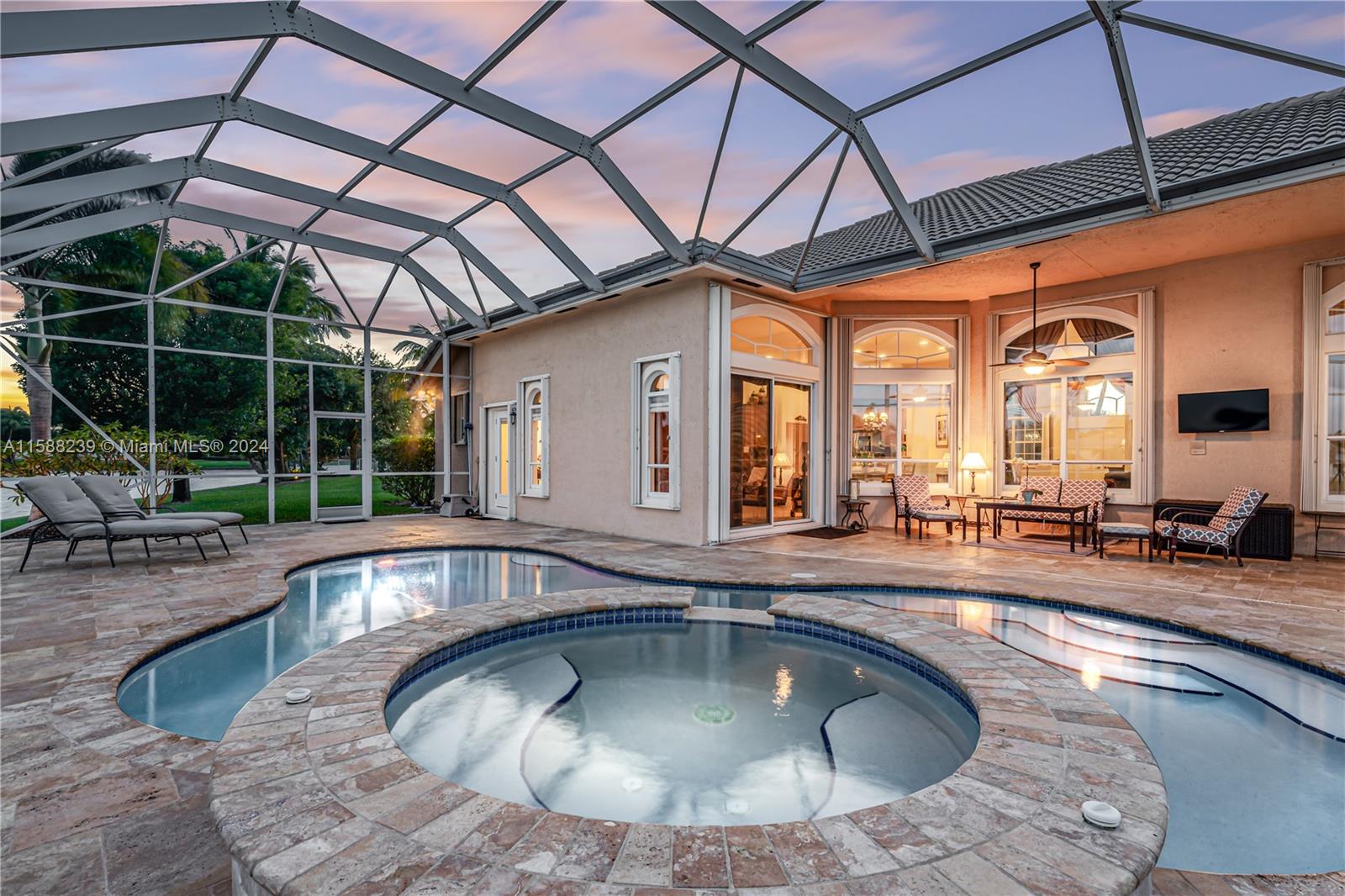 UNDOUBTEDLY ONE OF THE BEST LOTS IN LUXURIOUS PEMBROKE FALLS * THIS MONTEREY MODEL BOASTS 159 FT OF LAKE FRONTAGE ON AN OVERSIZED 16,000 SQFT PIE-SHAPED LOT * FEATURING A RARE 3-CAR GARAGE, THIS HOME OFFERS A BREATHTAKING LAKE VIEW AND A 3-SPLIT FLOOR PLAN WITH 4 BEDROOMS + OFFICE, AND 3 BATHROOMS * ENJOY AN UPGRADED KITCHEN WITH GRANITE COUNTERTOPS AND REAL WOOD CABINETRY * THE SCREENED-IN COVERED PATIO WITH A SUMMER KITCHEN AND TRAVERTINE PAVERS OVERLOOKS A LARGE POOL & SPA, OFFERING EXPANSIVE LAKE VIEWS AND GORGEOUS SUNSETS * ACCORDION SHUTTERS THROUGHOUT ENSURE PEACE OF MIND * THIS GATED COMMUNITY PROVIDES RESORT-STYLE AMENITIES, INCLUDING A POOL, GYM, TENNIS COURTS, & CLUBHOUSE * THE HOA COVERS CABLE, FIBER OPTIC INTERNET, ADT SECURITY, AND MORE. THE COMMUNITY ALSO OFFERS NATURAL GAS.