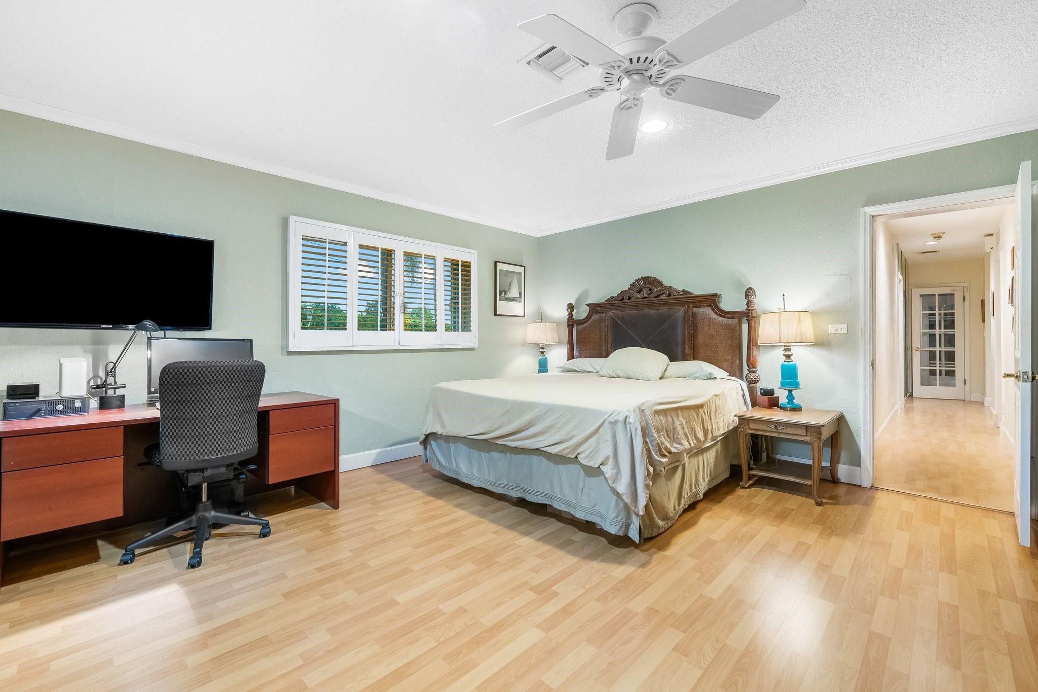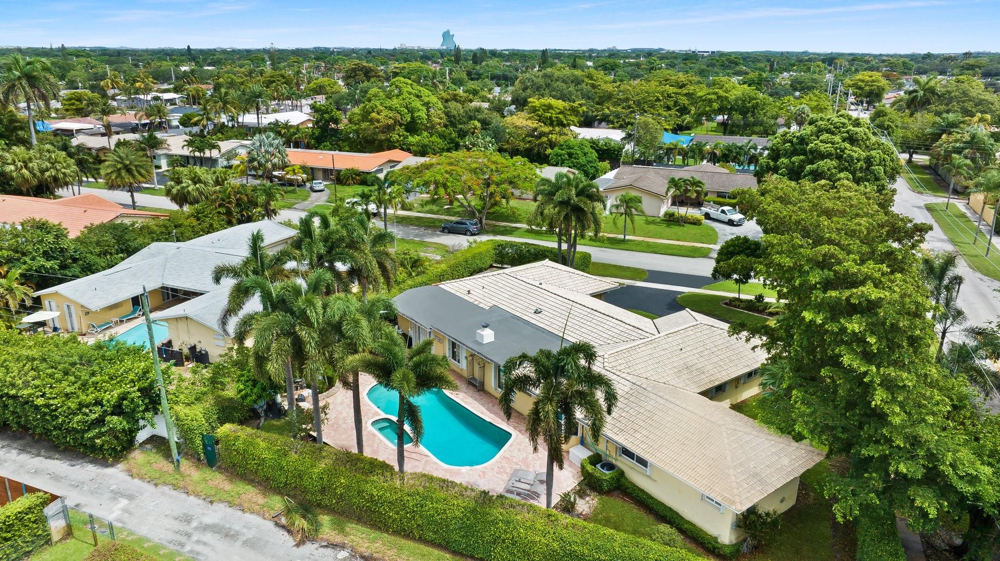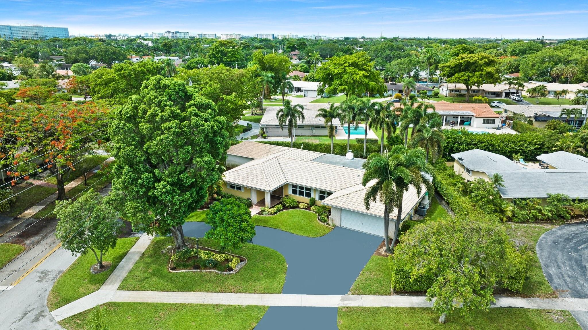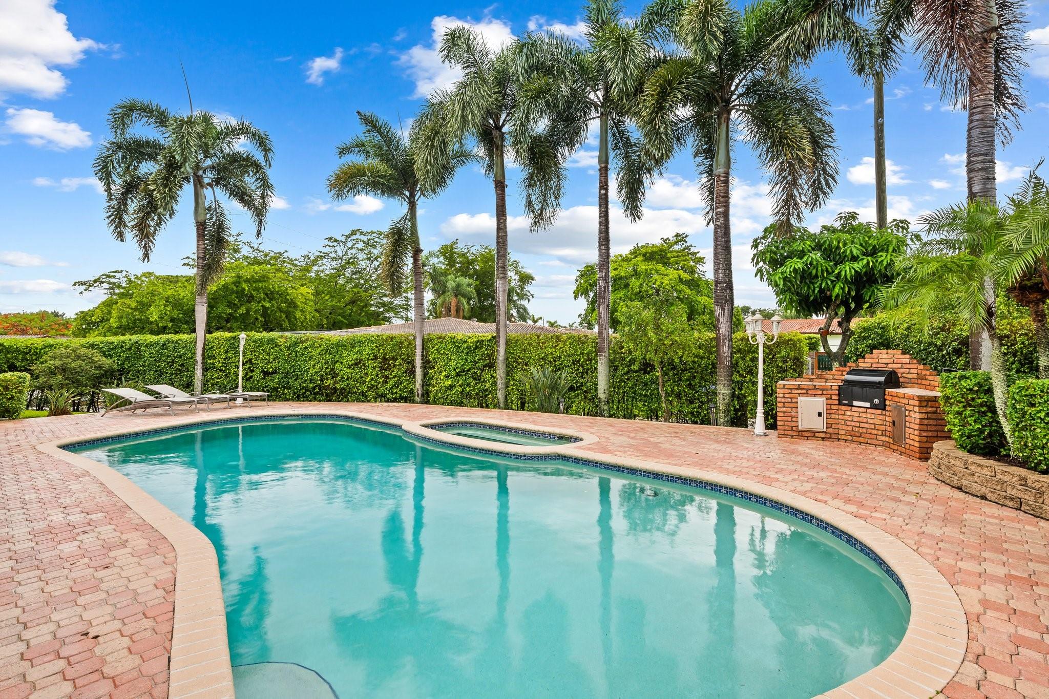 This home has it all - enormous house that was a former builder's model, incredible fenced & raised double corner lot, private pool, massive circular driveway & wonderfully landscaped in a great friendly neighborhood near desired amenities! The sprawling 4 bedroom, 4 full-bath house is smartly divided between open entertainment & private sleeping areas, with an energy efficient 2 zone air system separating the house. The inviting kitchen is loaded with counter space, storage, and a striking brick hearth over a double oven & gas stove. Other special features are the working wood-burning fireplace and the sliding interior doors throughout the house. Impact windows with Accordion shutters offer superior protection. The large 2-car garage contains extensive storage space & includes a workbench