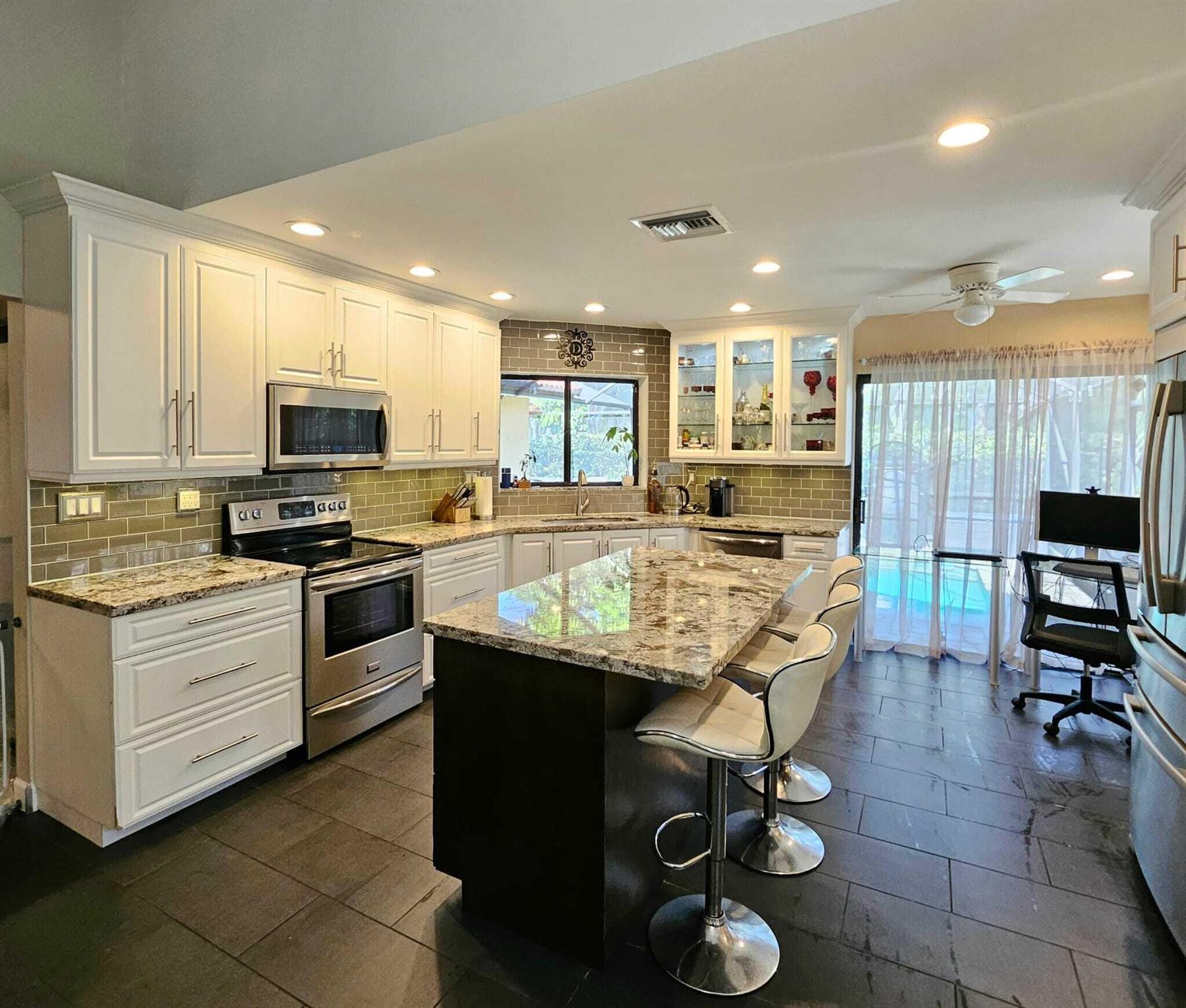 Discover a hidden gem at 6191 Sweet Maple Ln in Boca Raton's Vista Verde. This captivating 3-bedroom, 2-bathroom pool home features vaulted ceilings, an open-concept kitchen with stainless-steel appliances, and granite countertops. Sliders open to a screened-in pool area and side yard, perfect for entertaining. The master suite offers a walk-in closet and pool views. Comfort and style is present throughout. Located near Verde K-8 (A-rated schools!), parks, shopping, and major highways, this home offers both convenience and tranquility. Complete peace of mind of having a brand new roof and all mechanical equipment (HVAC including new ductwork, water heater) updated in 2022.