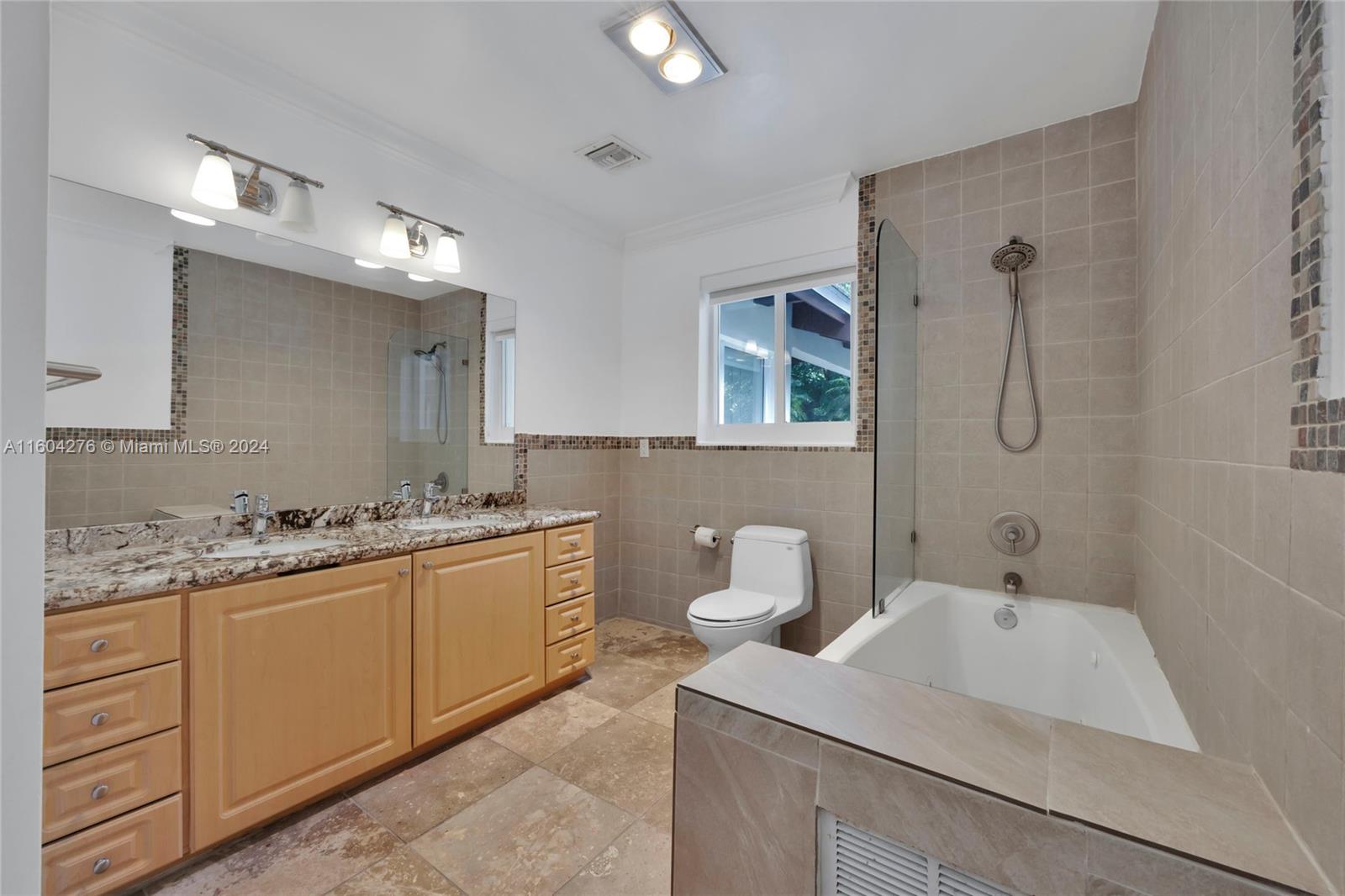 Fabulous opportunity in prime N. Pinecrest! This 3 BR, 4 BA plus office/playroom home spans 3,477 SF and is located in the Pinecrest Elementary School District! Situated on a builder’s acre on a no-traffic street, the property also features a pool and tennis court. The home includes wonderful, open living spaces & an eat-in kitchen w/ granite counters & stainless steel appliances. The primary suite includes a large walk-in closet & spacious BA, while 2 additional BRs, one with an en-suite BA, each have great closet space! The deep covered patio is ideal for indoor/outdoor entertaining, & is accessed via impact glass sliding doors. Other features include carport, 2-car gar, laundry rm, wood floors, & impact glass. This is a great home to rent or live in while preparing to build new!