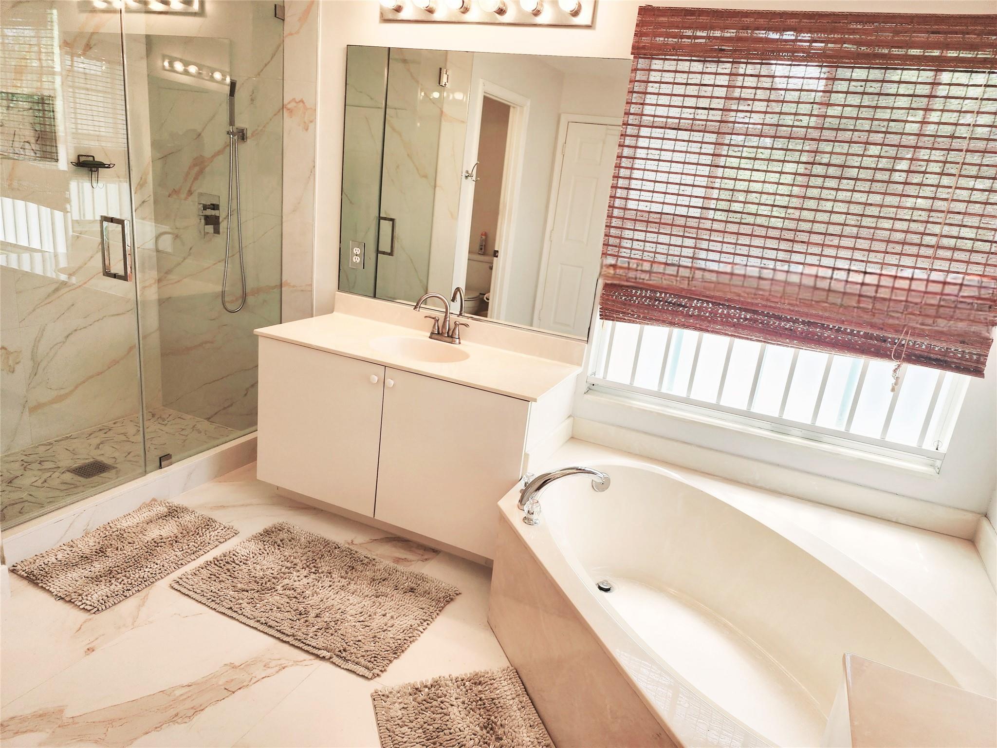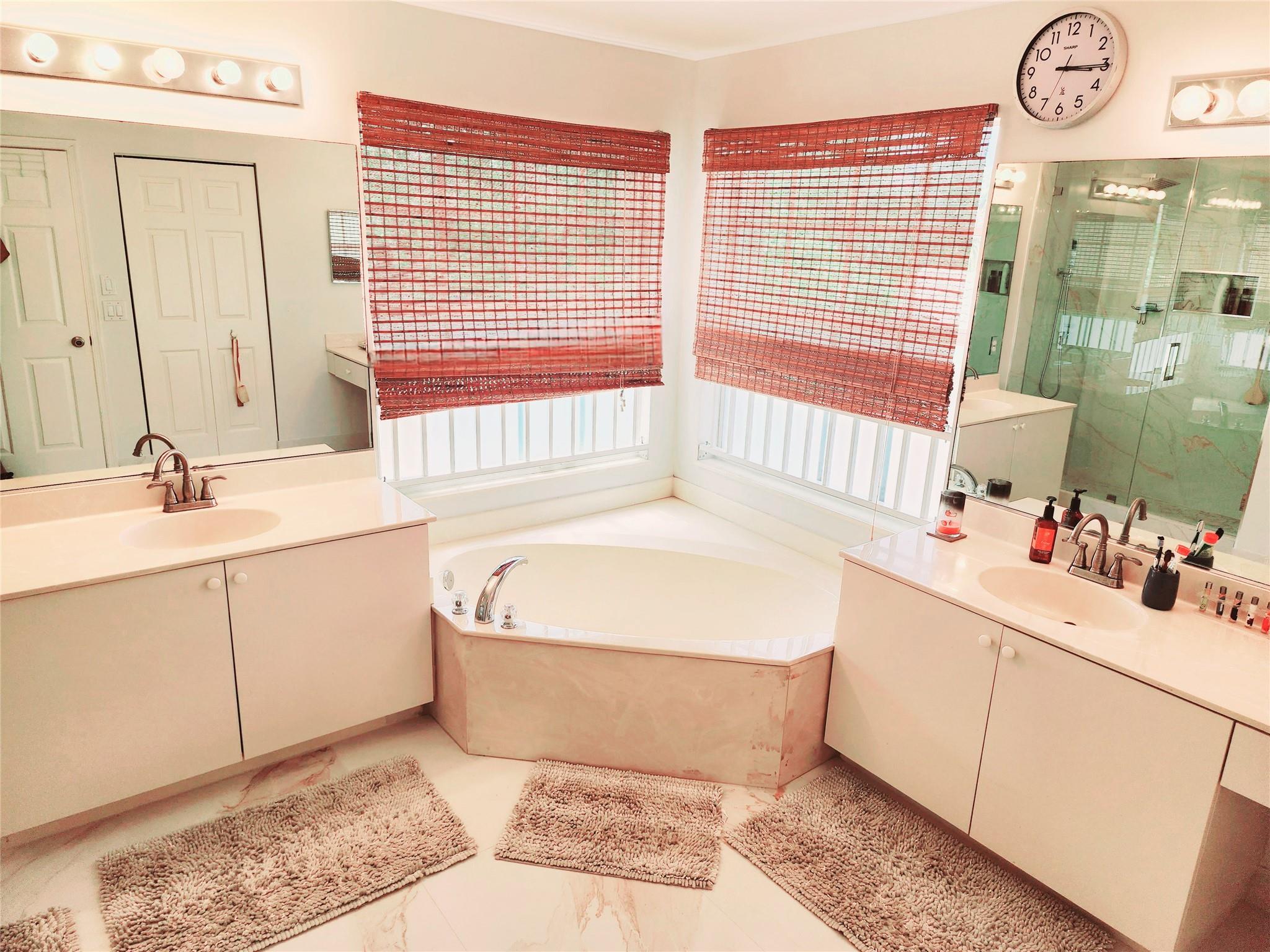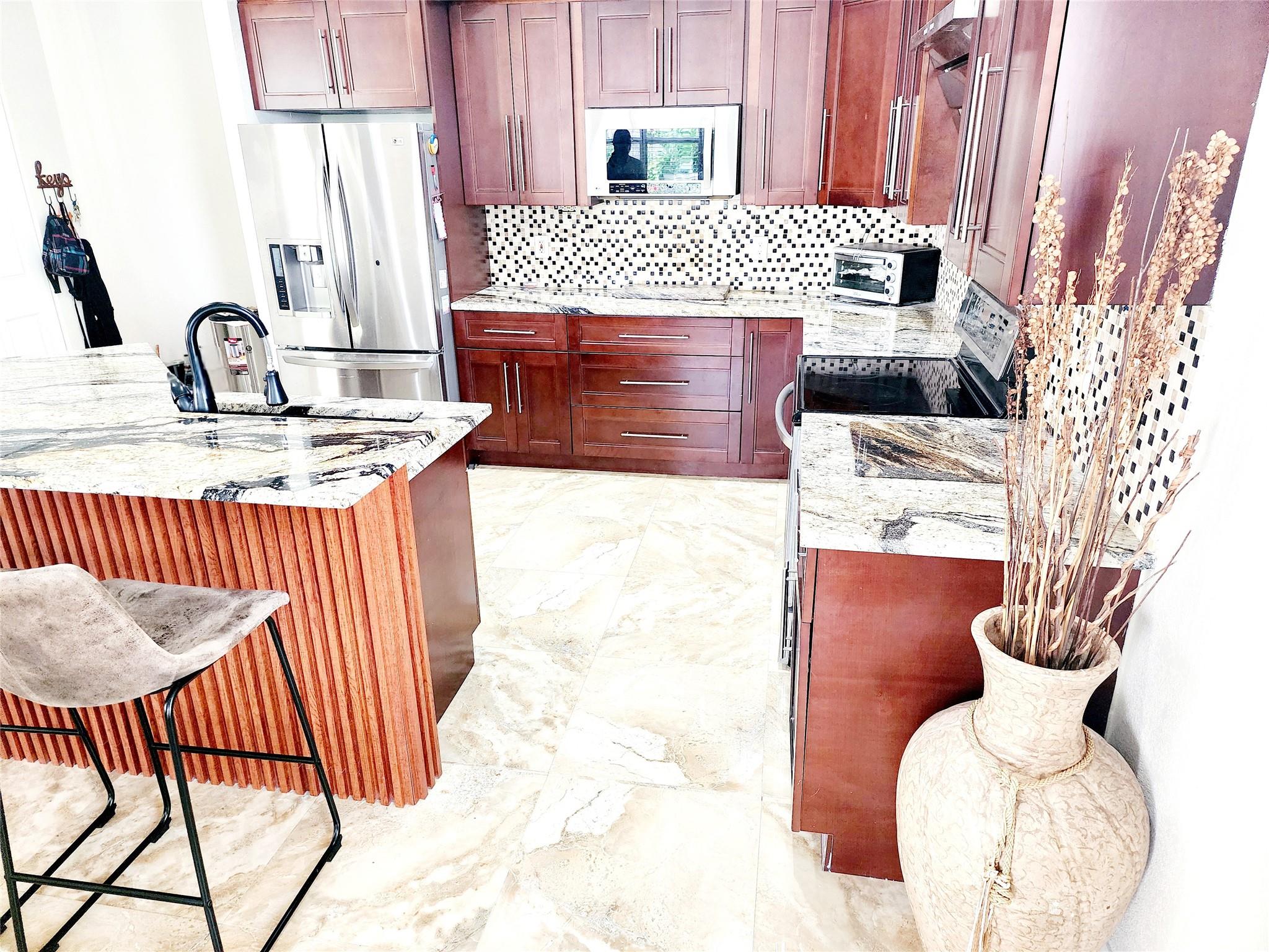 Beautifully upgraded home, no grout porcelain tile throughout the first floor, beautiful bamboo flooring on the second floor and stairs. Enormous primary suite with tray ceiling and separate sitting area use it to lounge or it can be used as a nursery or office, lots of storage with his and hers X-large walk-in closets. Large ensuite bathroom with newly tiled shower and floors, dual vanities, separate corner tub, private water closet and linen closet. The five Secondary bedrooms are spacious, this home boasts four full bathrooms, with one bedroom and full bathroom on the ground level. Gorgeous kitchen with bar stool seating at the peninsula, plus an additional area for a banquette. Laundry room with storage cabinets and sink. New plumbing recently installed throughout, newer AC & new sod.
