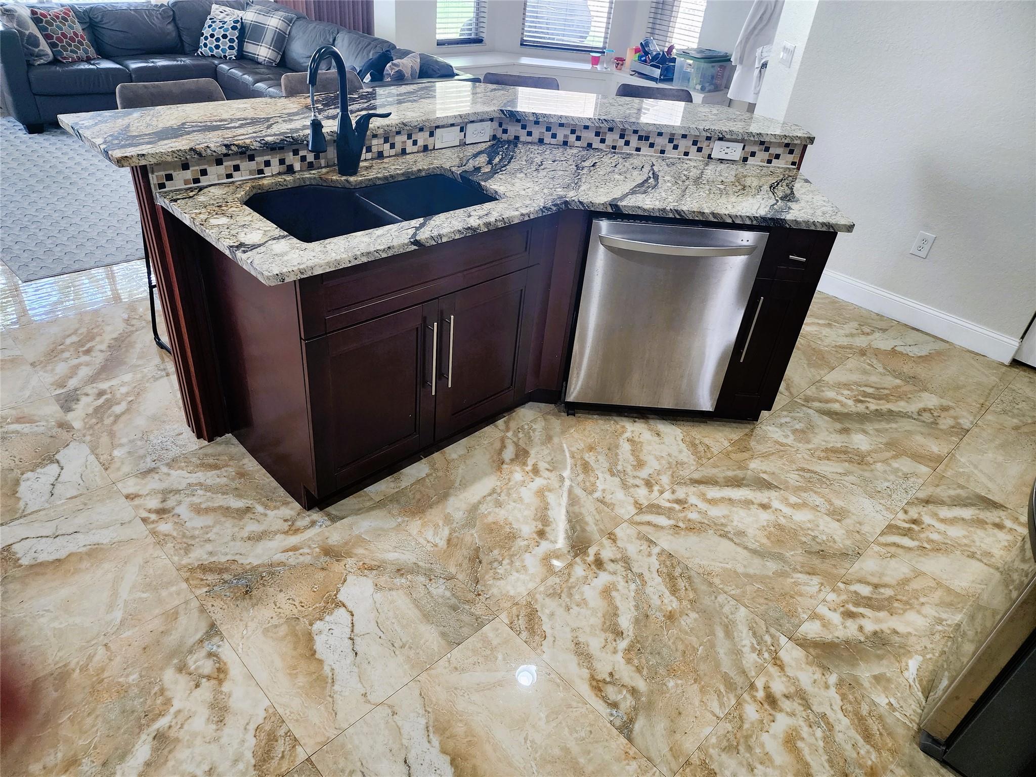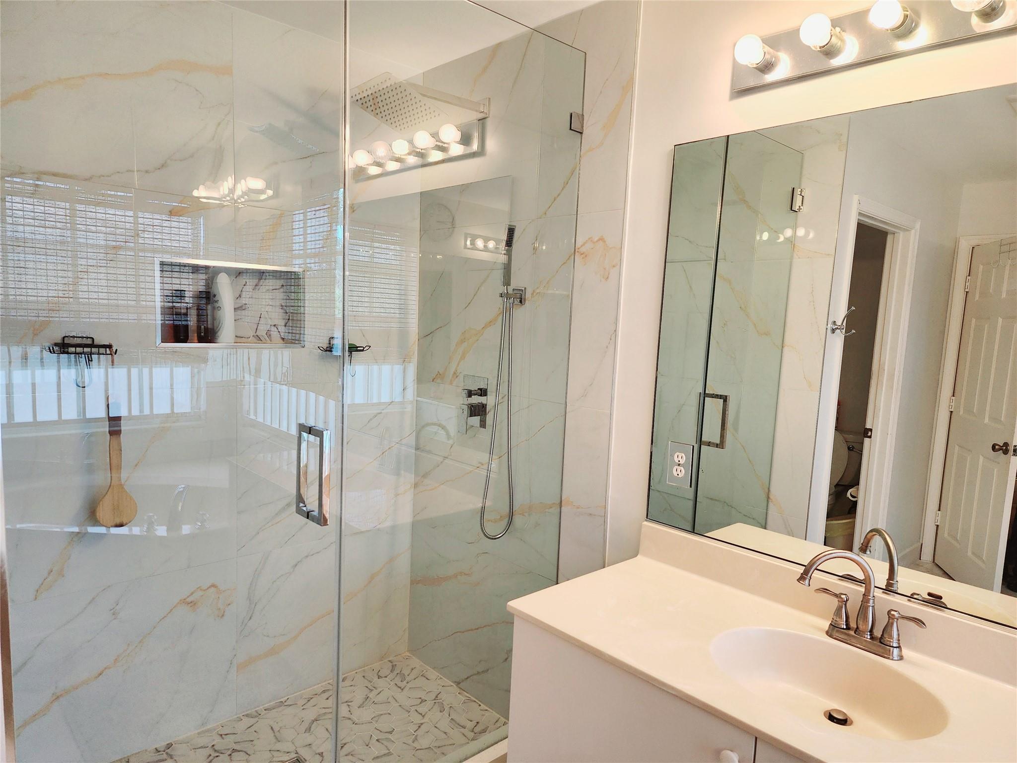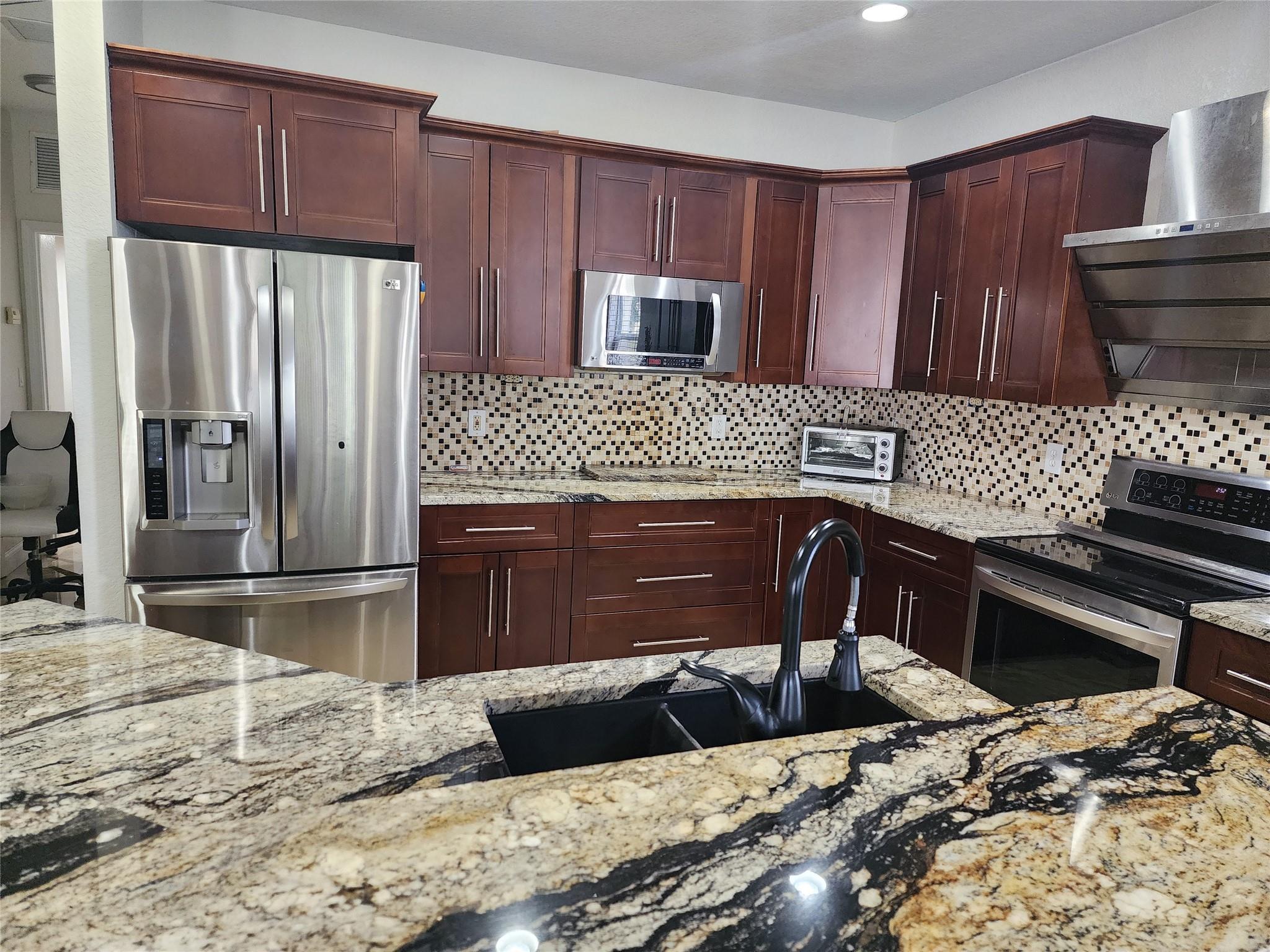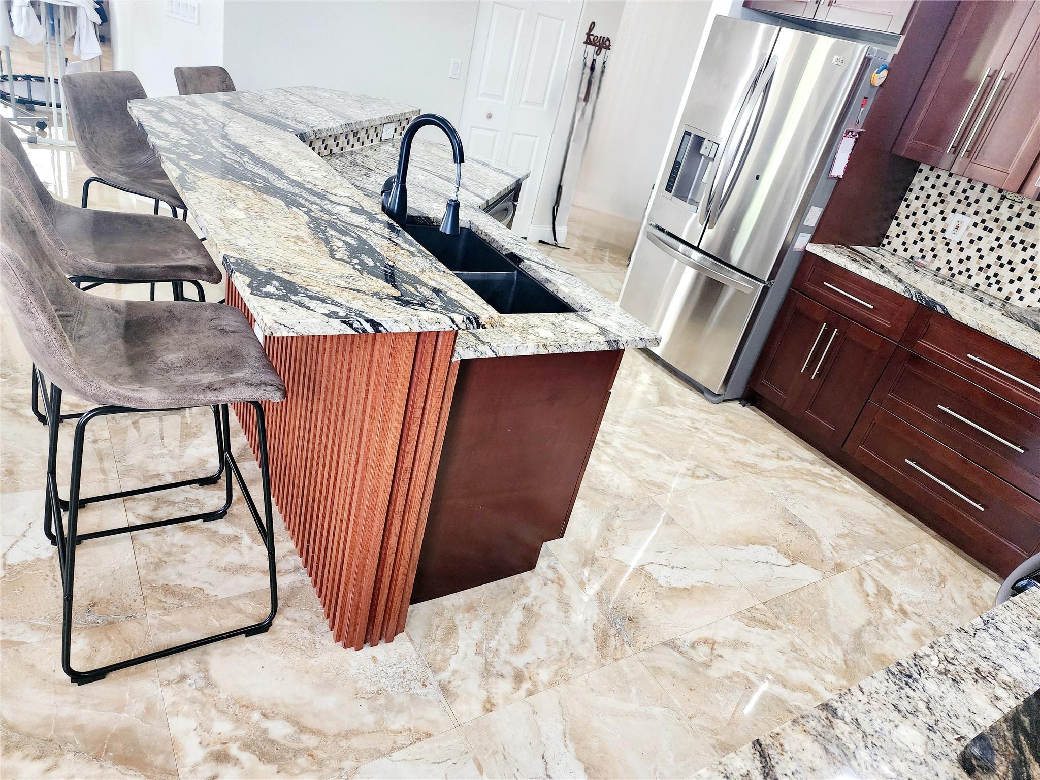 Beautifully upgraded home, no grout porcelain tile throughout the first floor, beautiful bamboo flooring on the second floor and stairs. Enormous primary suite with tray ceiling and separate sitting area use it to lounge or it can be used as a nursery or office, lots of storage with his and hers X-large walk-in closets. Large ensuite bathroom with newly tiled shower and floors, dual vanities, separate corner tub, private water closet and linen closet. The five Secondary bedrooms are spacious, this home boasts four full bathrooms, with one bedroom and full bathroom on the ground level. Gorgeous kitchen with bar stool seating at the peninsula, plus an additional area for a banquette. Laundry room with storage cabinets and sink. New plumbing recently installed throughout, newer AC & new sod.