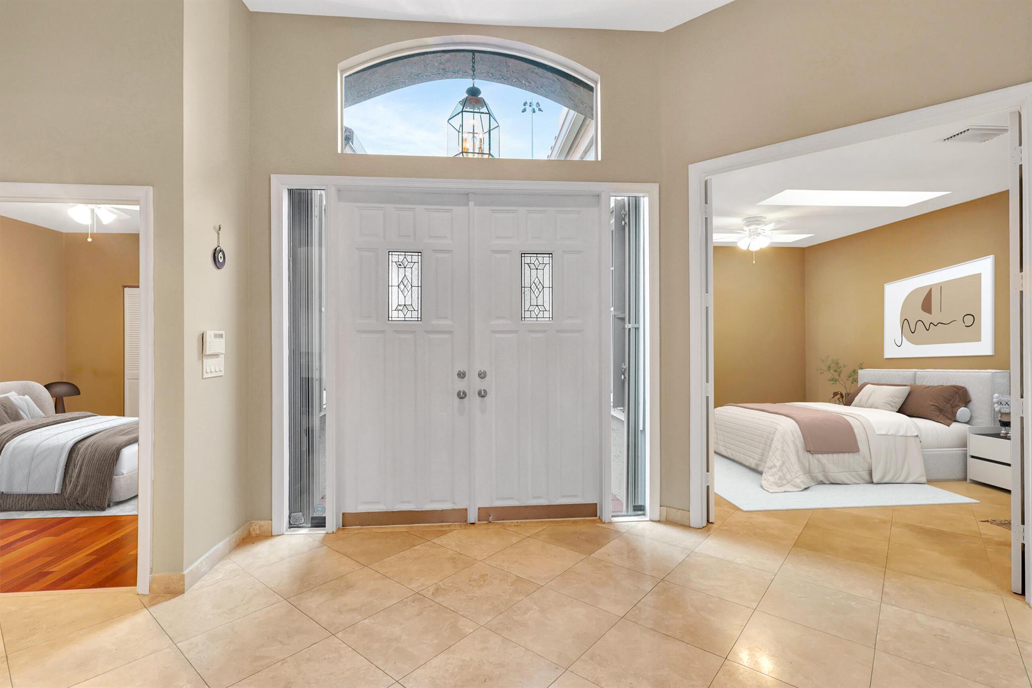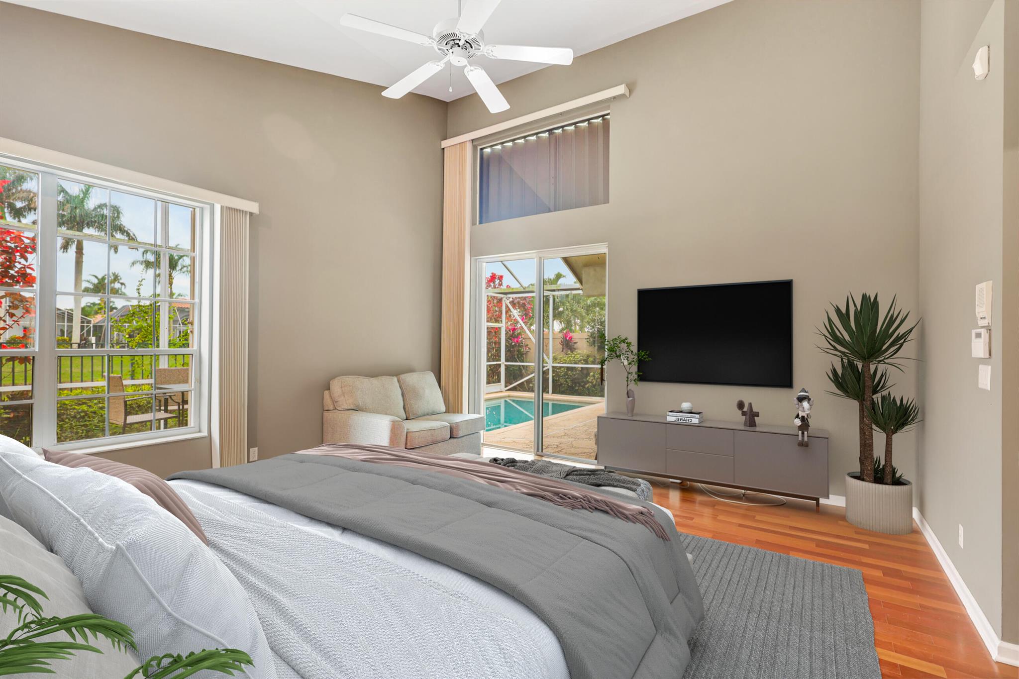 Welcome to your inviting ,Boca Raton's charming Santa Barbara community! This delightful waterfront residence offers a warm and welcoming atmosphere with 3 bedrooms, 3 baths, and a convenient 2-car garage. Step inside to discover a comfortable living space adorned with tile flooring in the common areas and cozy wood flooring in the bedrooms, creating a homey ambiance throughout.The master suite is featuring a generously sized walk-in closet and a luxurious en-suite bathroom complete with a separate bathtub and shower. The airy living room boasts an open floor plan and high ceilings, skylights ,creating a spacious and inviting environment for gatherings with family and friends.
