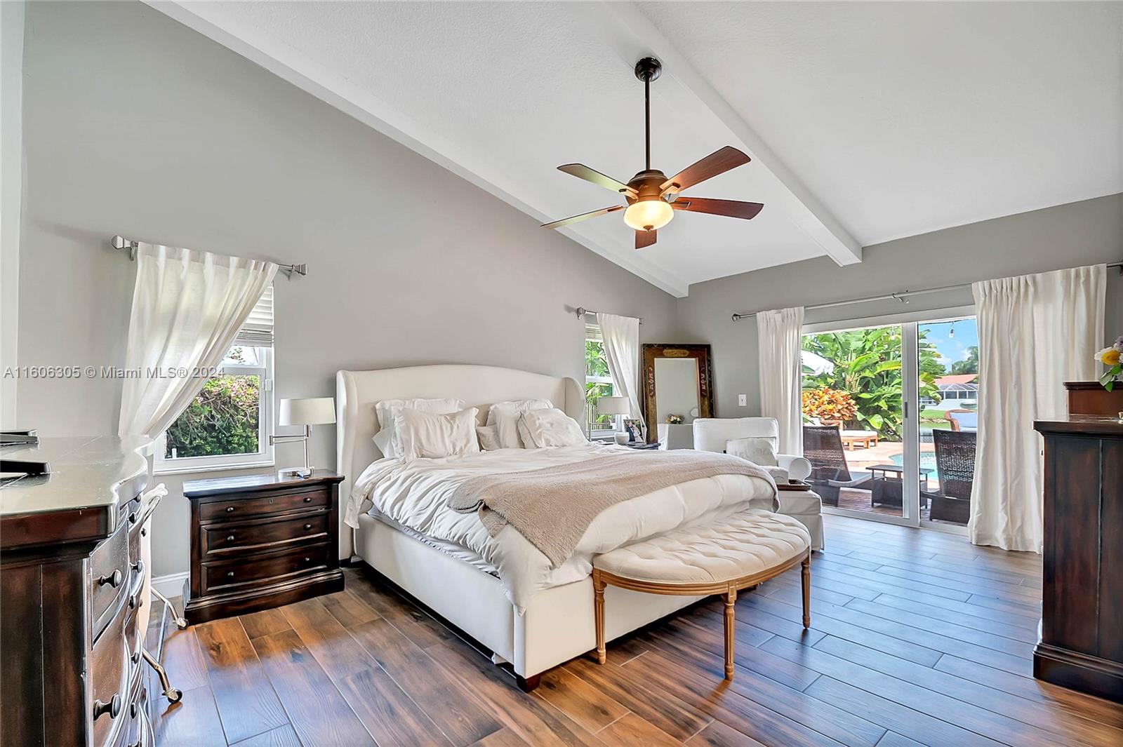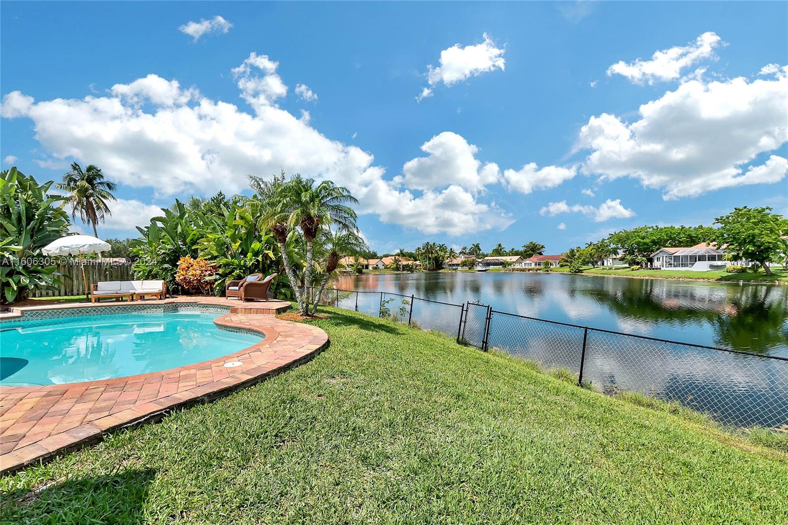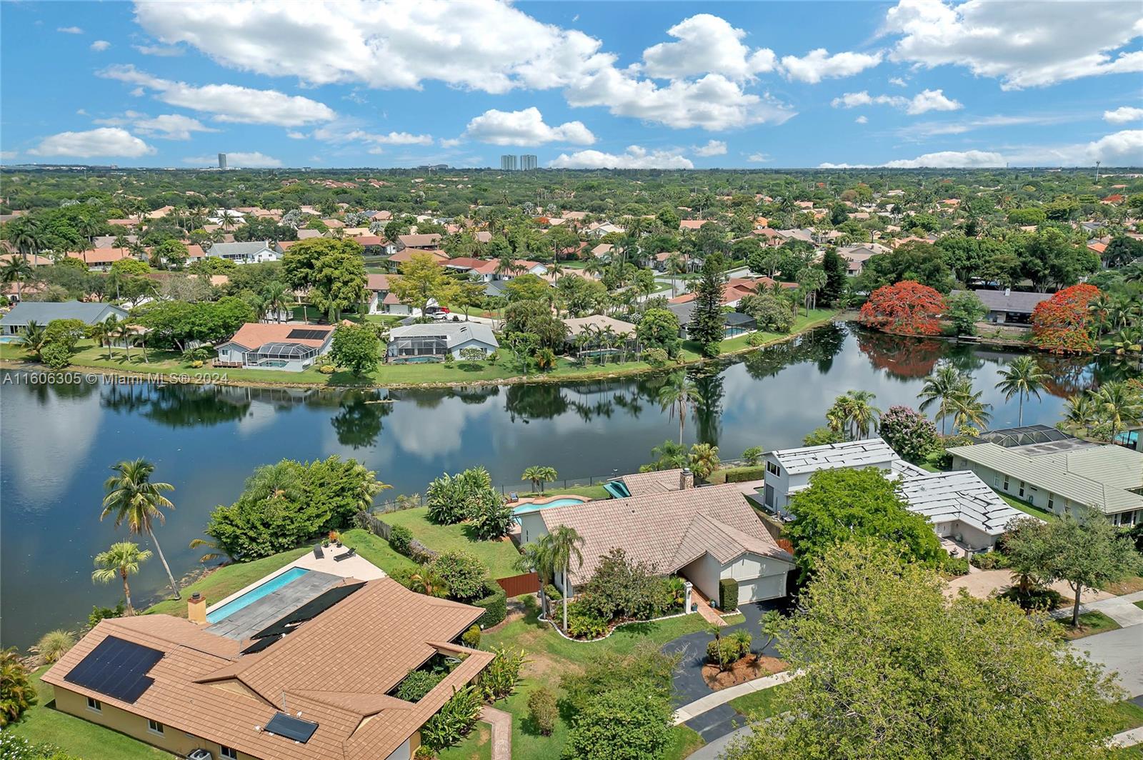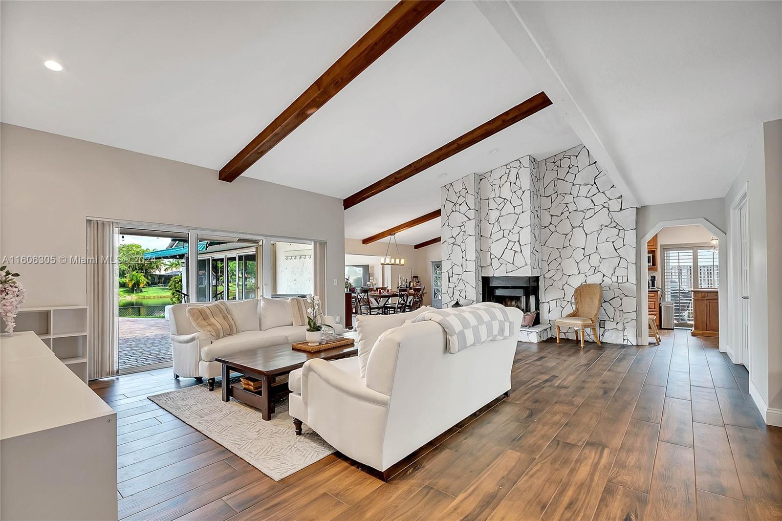 Discover the charm and convenience of living in the heart of Plantation, Florida. Nestled on a quiet street in Jacaranda Lakes, 2,803 square feet, featuring a delightful open floor plan with 4-bedrooms + office and 2 full bathroom’s. Stunning lake views from the living room, family room, dinning room and primary bedroom. Vaulted ceilings and Natural stone fireplace. Enjoy the outdoor oasis and pool. Perfect home to entertain, relax and also enjoy breathtaking sunsets. Impact Windows & Doors (2021), AC Unit (2024), Diamond Brite Pool (refinished 2024) porcelain tile flooring, custom closets. Excellent location within the neighborhood, convenient to neighborhood park, grocery stores, recreation, entertainment, education, and airport. Don’t miss the opportunity to live in this lovely home.