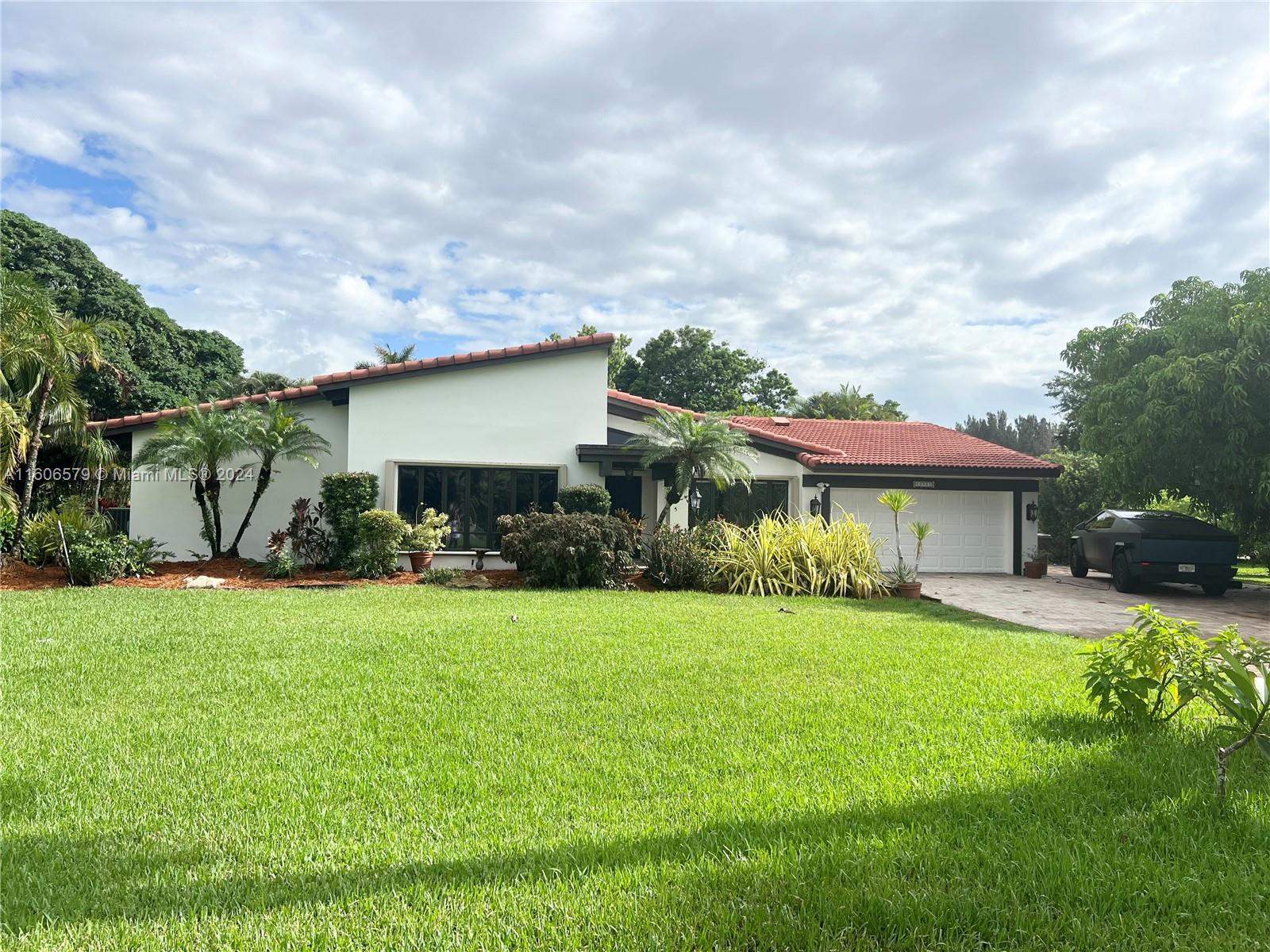 Welcome to this amazing property located in one of the best, quiet neighborhoods in Davie with no HOA, situated on almost an acre on a cul-de-sac, with an extended driveway that can accommodate a boat or RV. The property is filled with fruiting trees, has a lake, lots of privacy and its own chicken coop! This custom home has 3 Bedrooms and 2 Bathrooms, beautiful contemporary kitchen and flooring that was just finished last week. High ceilings with exposed beams throughout the whole house. Crestron smart system along with spa -like patio, salt water heated pool, outdoor tv and sound system, outdoor kitchen makes it perfect to entertain or relax on lazy Sundays with family. Also included Ring doorbell, cameras and smoke detectors. Check attachment for info sheet Listing agent is the owner.