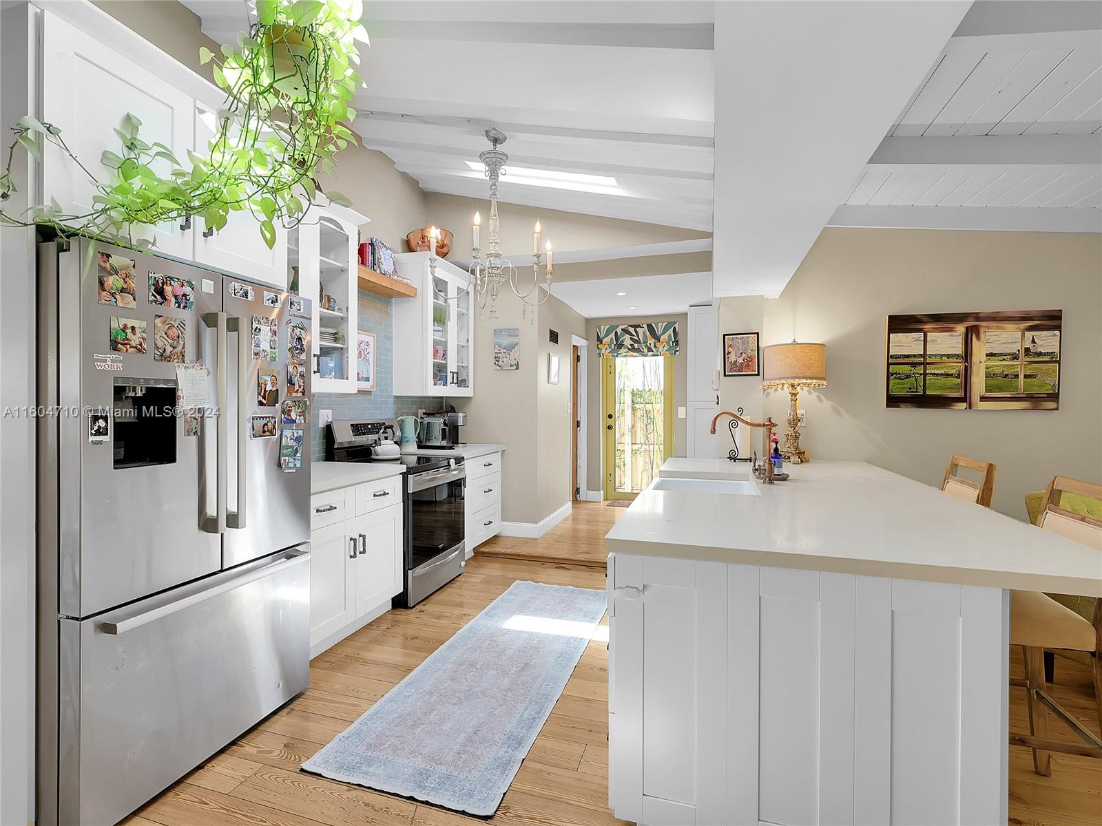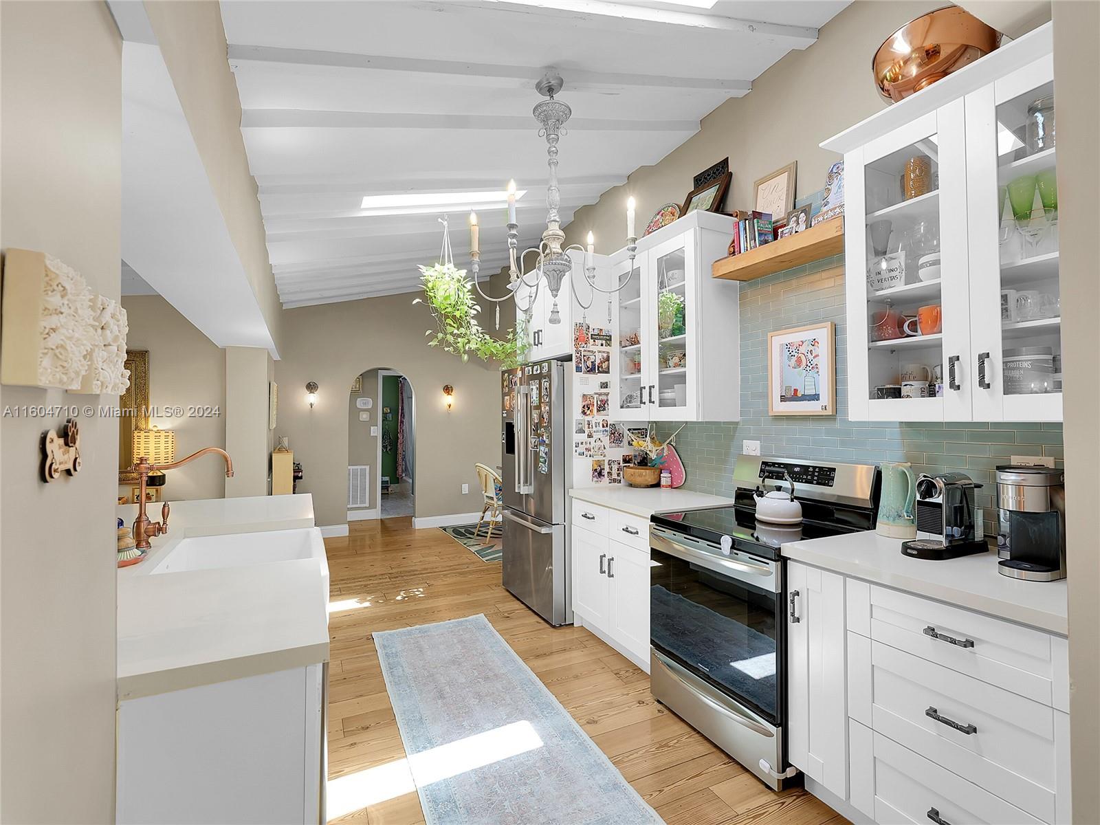 Mediterranean Modern Masterpiece on majestic Normandy Isle. A whimsical ambiance imbues this property from front to back and everywhere in between. An absolutely special home featuring wonderfully private & gated front and back yards, perfect for summertime BBQ's and play dates, a sparkling, wide-open quartz & stainless steel kitchen custom-built for entertaining and usability, immense walk-in, built-out closets in every room and a brand-new tiki hut in the back yard to cool off under the sun. This home checks every box and hits every note. New roof, impact windows, 4 ample beds & 3 full baths, vaulted ceilings, synthetic grass for virtually no maintenance, an enormous primary suite and more. Normandy Isle is idyllic with pocket parks on every block & cul-de-sacs on both sides. Call today.
