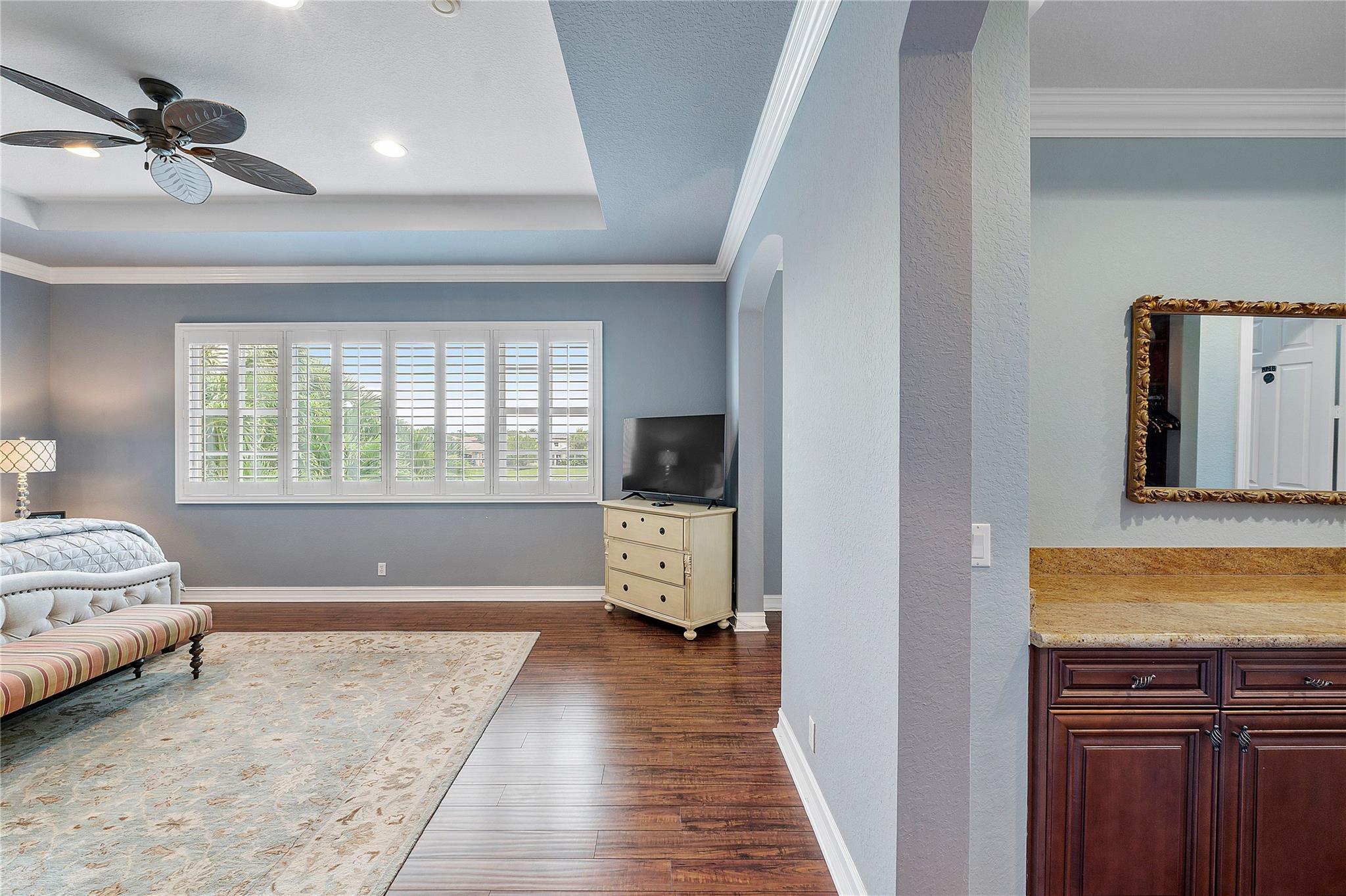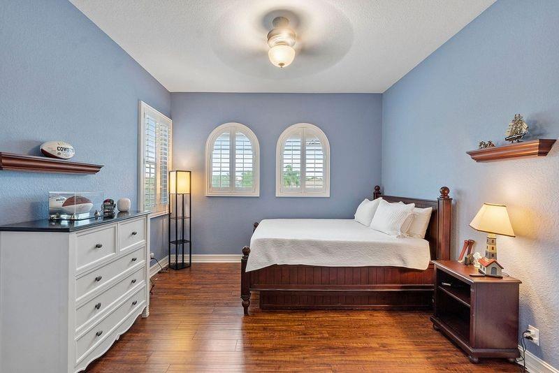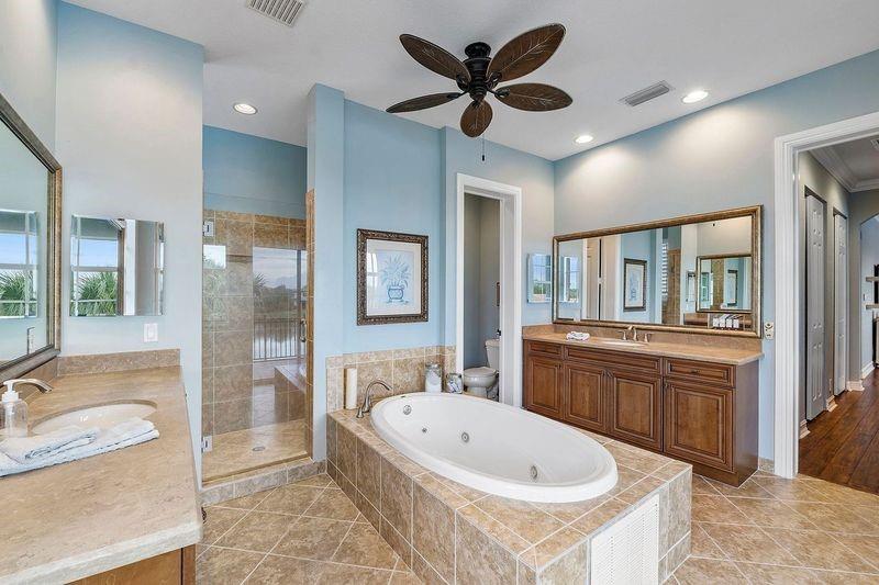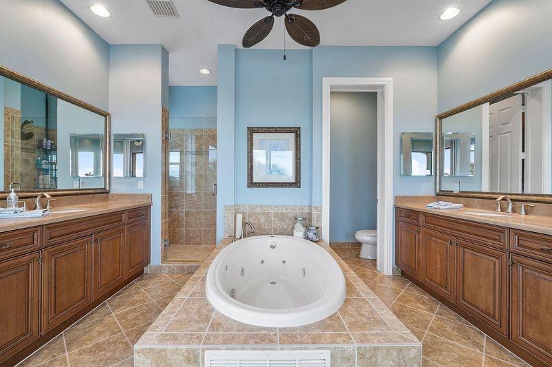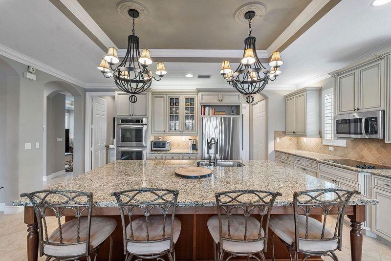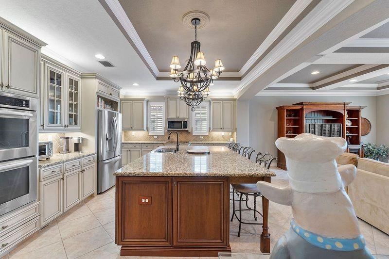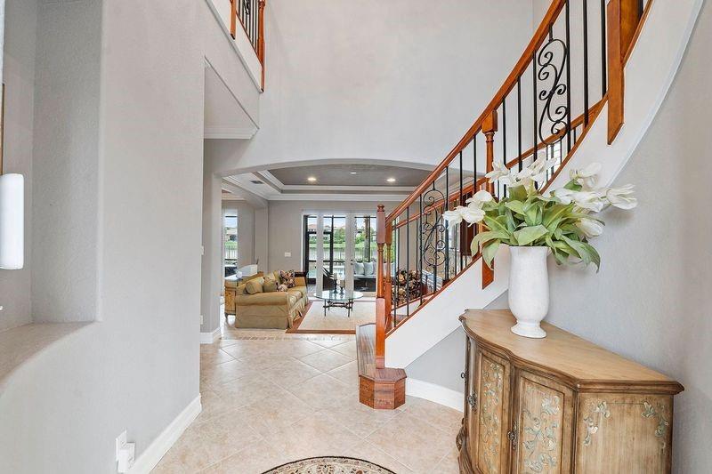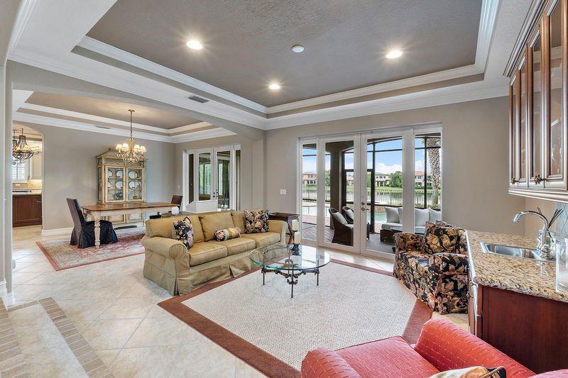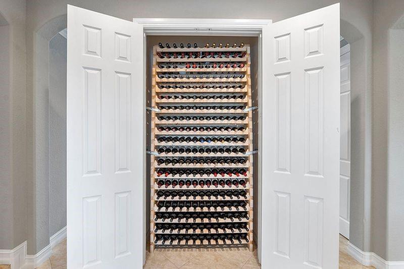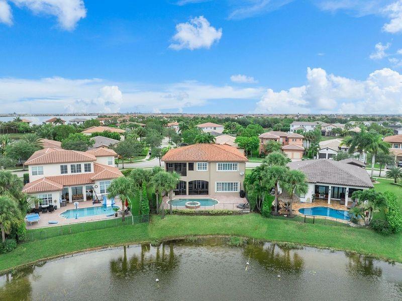 Incredible opportunity to own a 5 bedroom 4 bathroom lakefront pool/spa home on an oversized pie-shaped lot with a detached in-law suite boasting over 4,000sf of living area. This home has been freshly painted inside and out and has lush and pristine landscaping. Other features are: impact windows and doors in most areas and accordion shutters on the others, 3 new air conditioning units, upgraded kitchen with high-end wood cabinets, granite countertops and s/s appliances, custom closets throughout, an incredible 250 bottle wine closet and a wet bar in the living area, built-in dry bar in the master, an office/den on the first floor, Tile flooring downstairs and vinyl wood upstairs, screened lanai, garage fridge, exterior storage, child-gate for pool with a fully fenced yard plus much more.