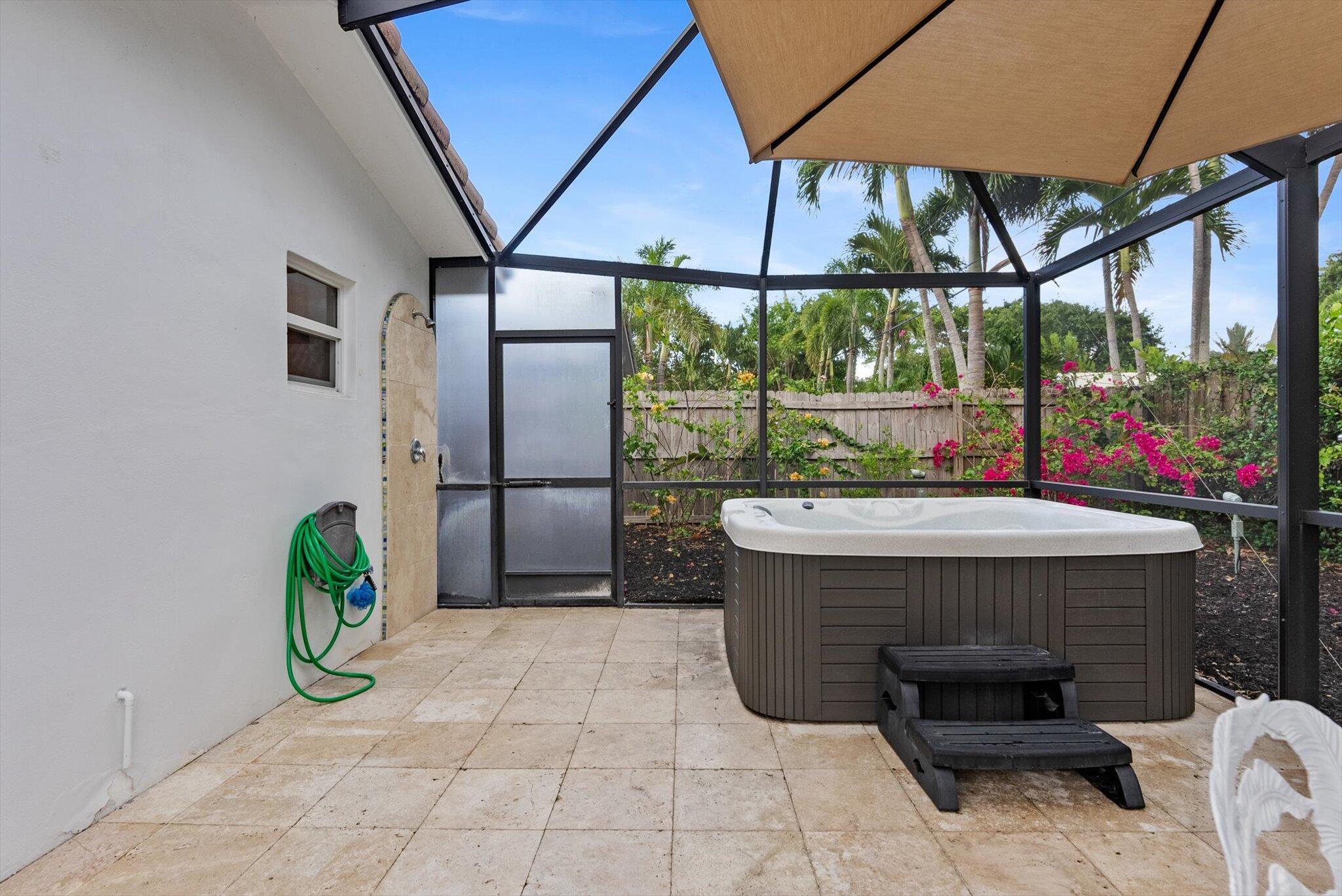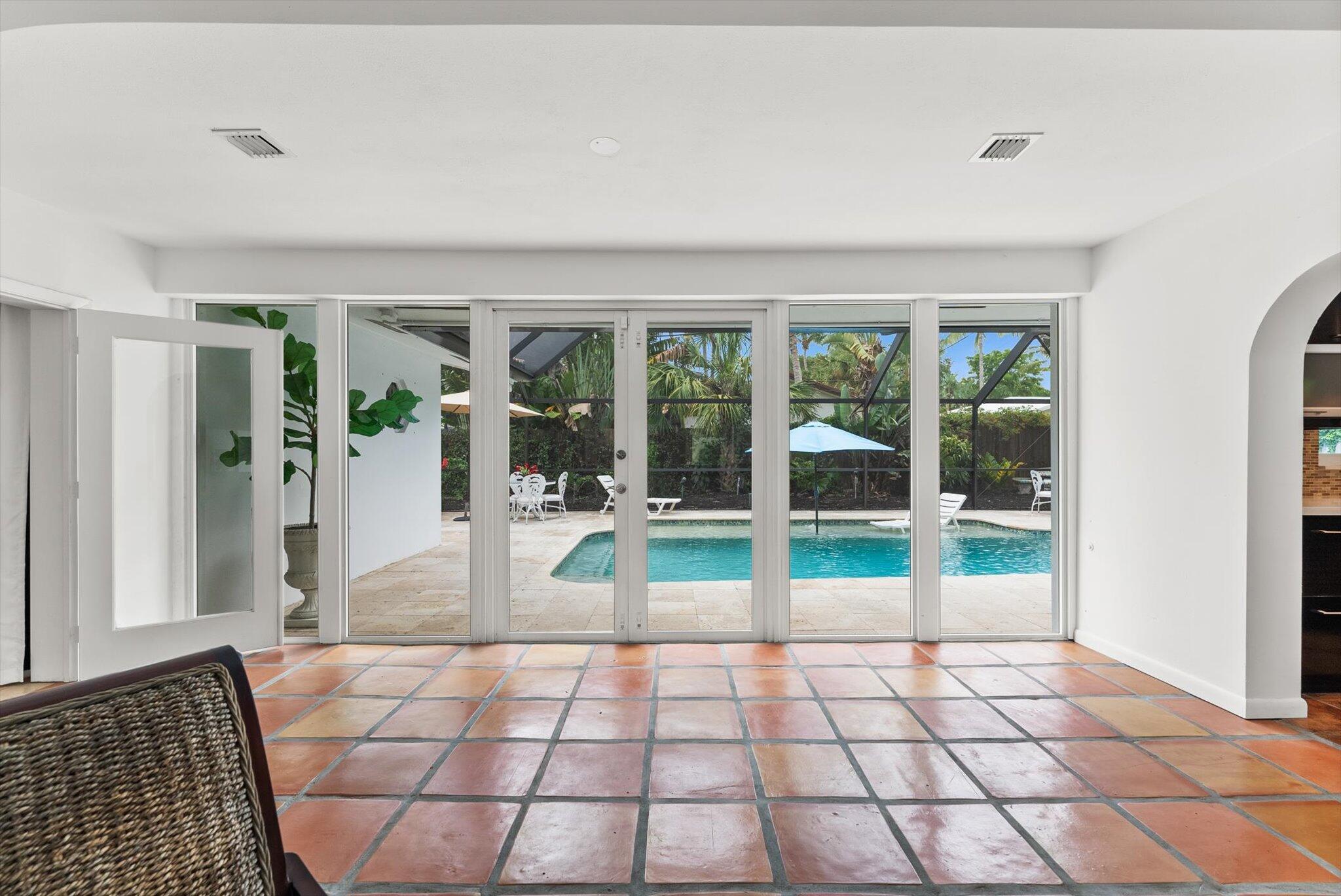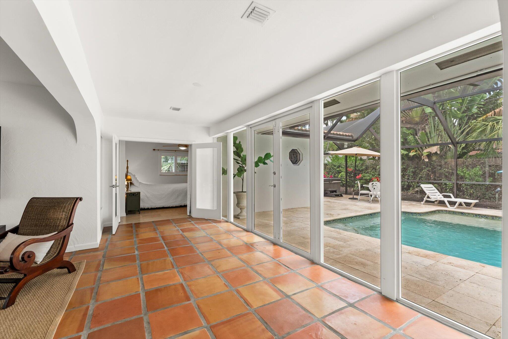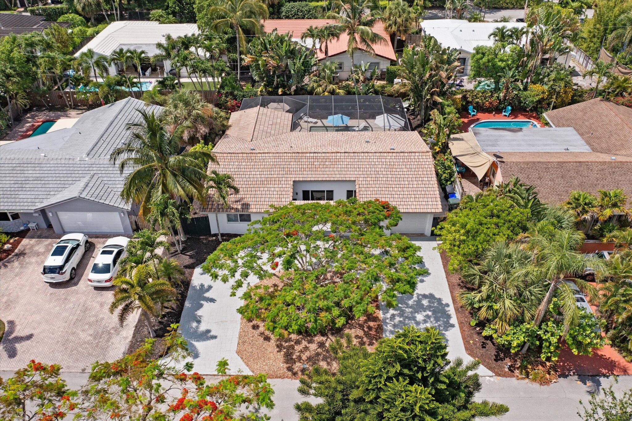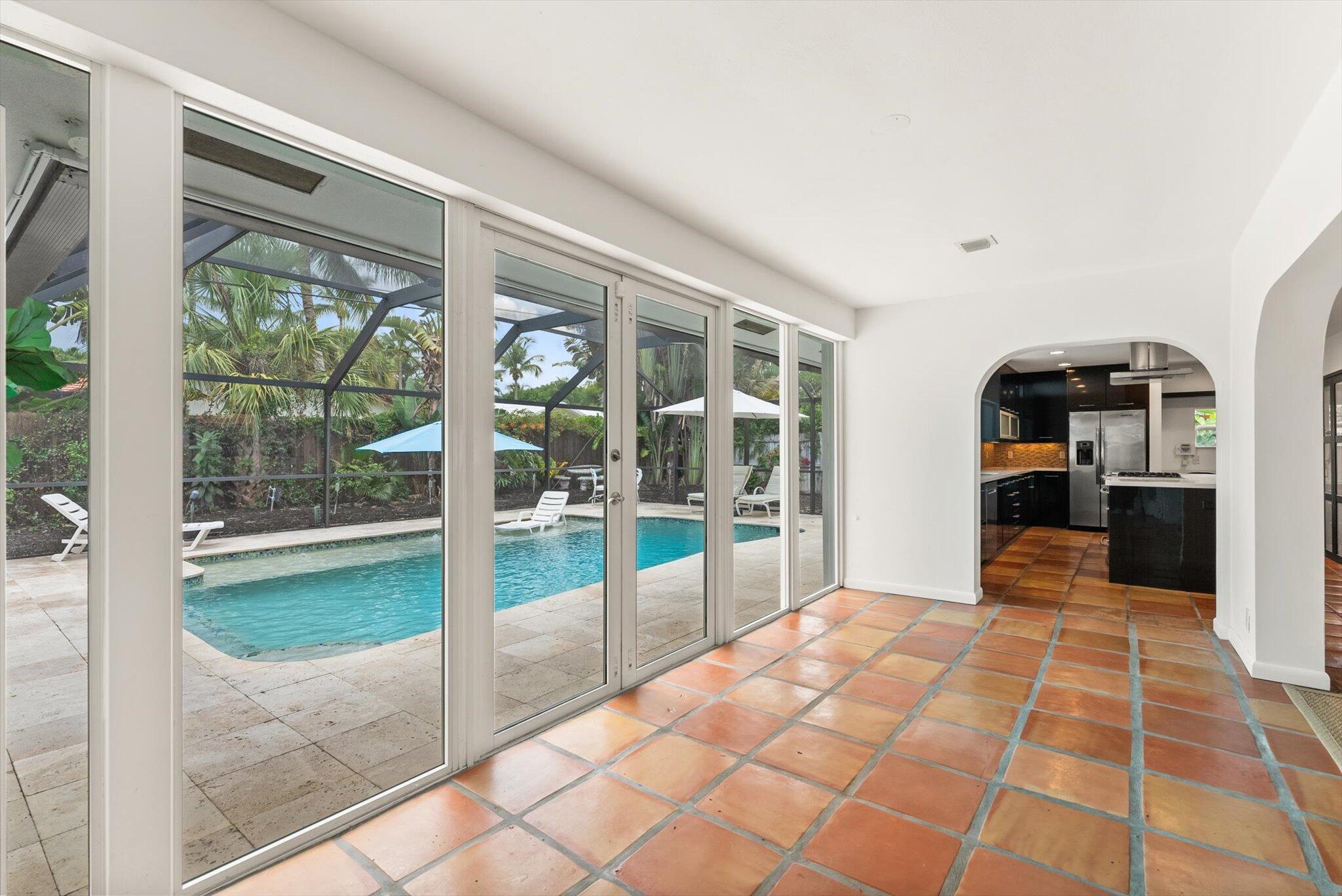 This charming 3/2 home is located in the highly desirable East Boca Raton community of Tunison Palms, a stones throw away from the magnificent Historic ''Old Floresta'' district, on a beautiful private, quiet street adorned with lush landscaping. The main living area is open and bright with a magnificent updated chef's kitchen featuring a caesarstone waterfall island, stainless steel appliances, custom Italian cabinetry, and brushed glass. The backyard is nothing short of an oasis, offering a custom salt-water pool with sun shelves and bubblers set on a travertine deck with an outdoor shower and hot tub, amidst numerous fruit and flower trees. The elegant Primary Bedroom, offers both an updated en-suite bathroom with steam shower, and a custom walk-in closet.Location! Location! Location!