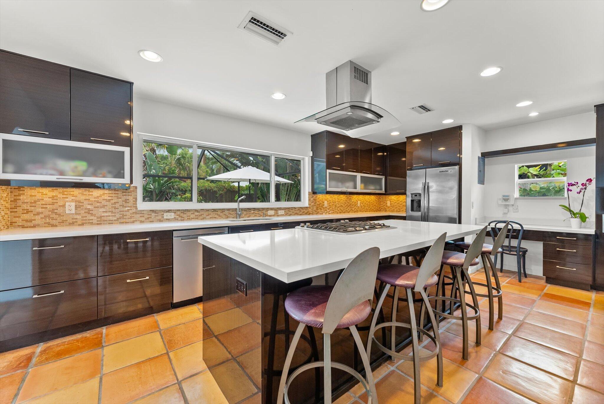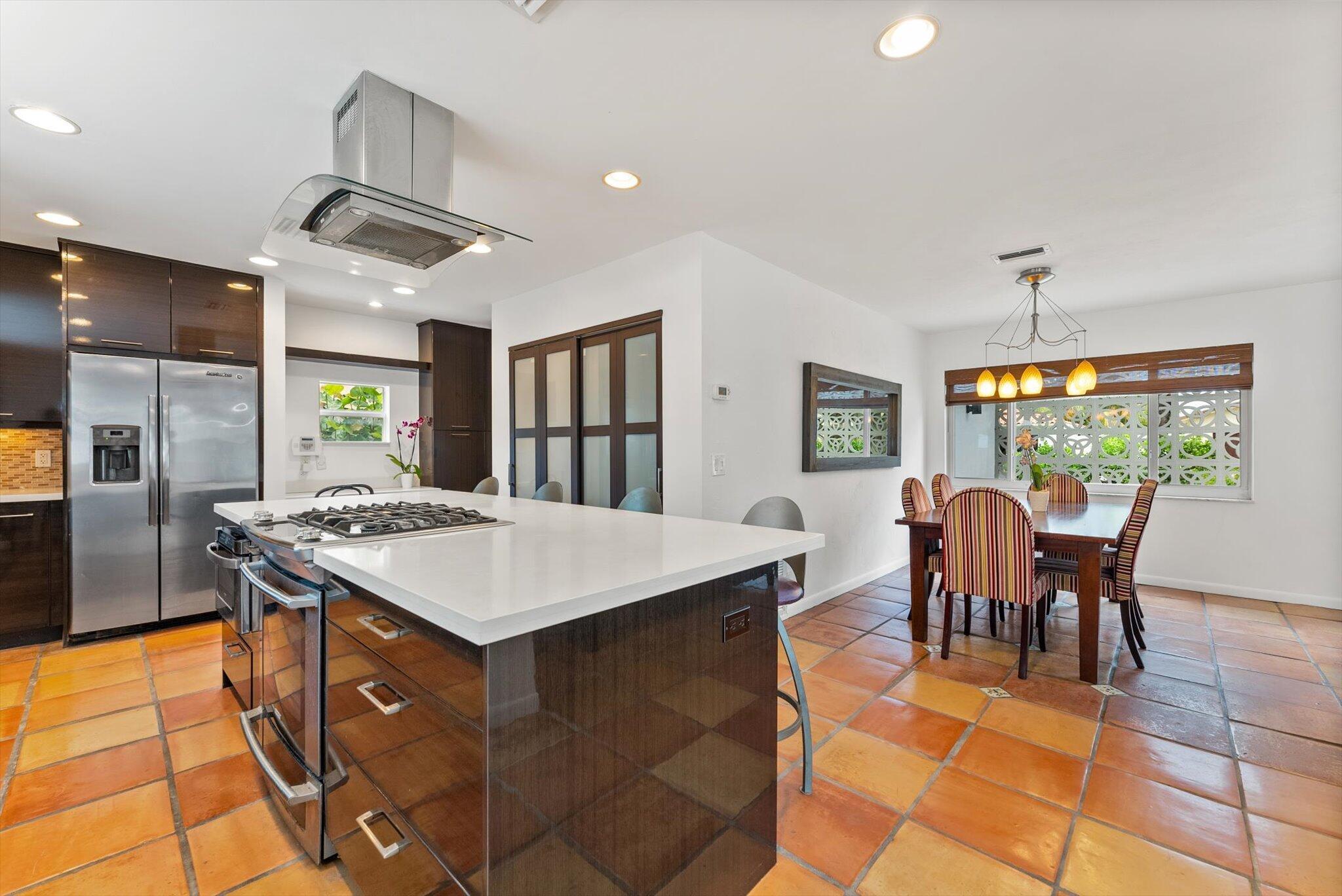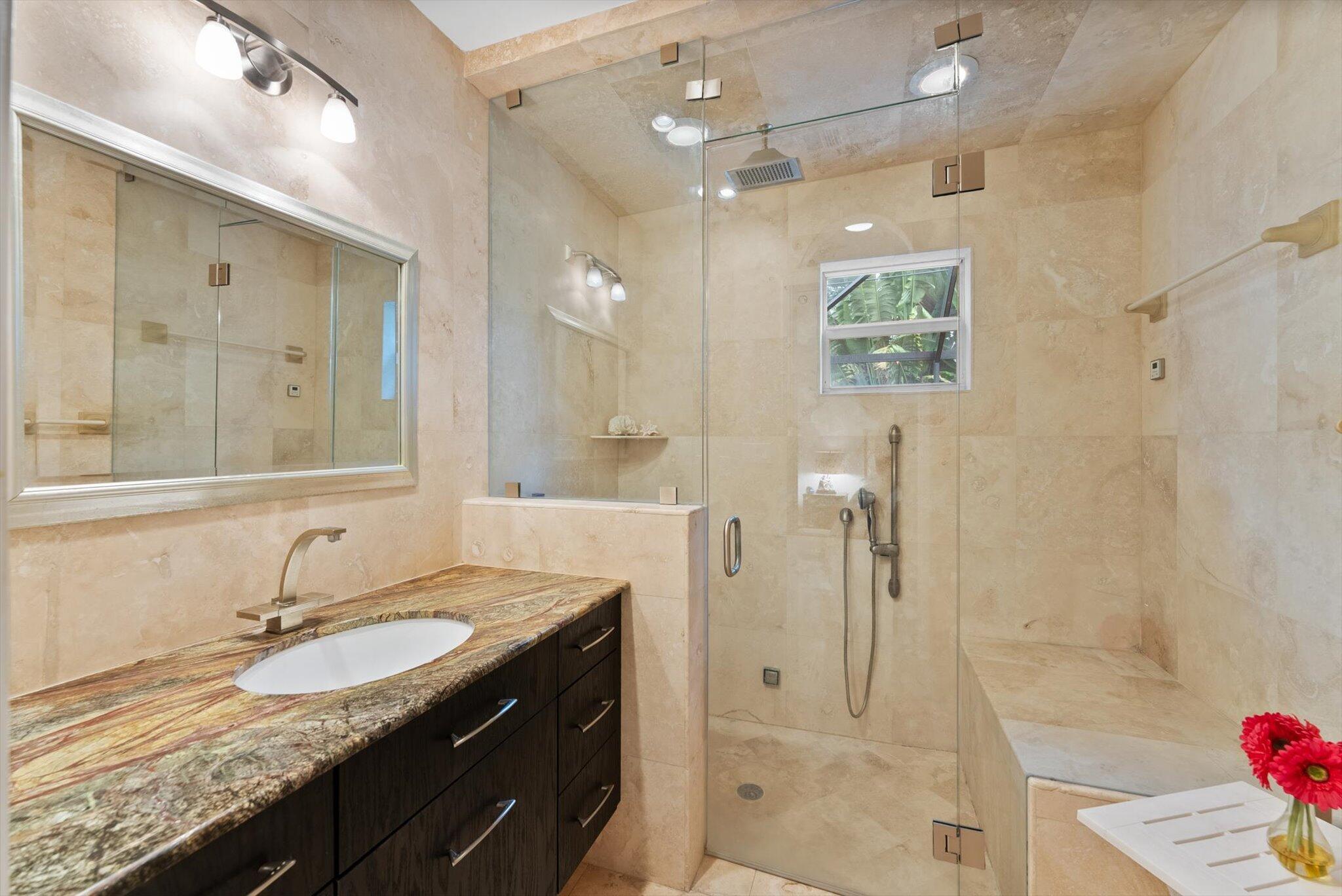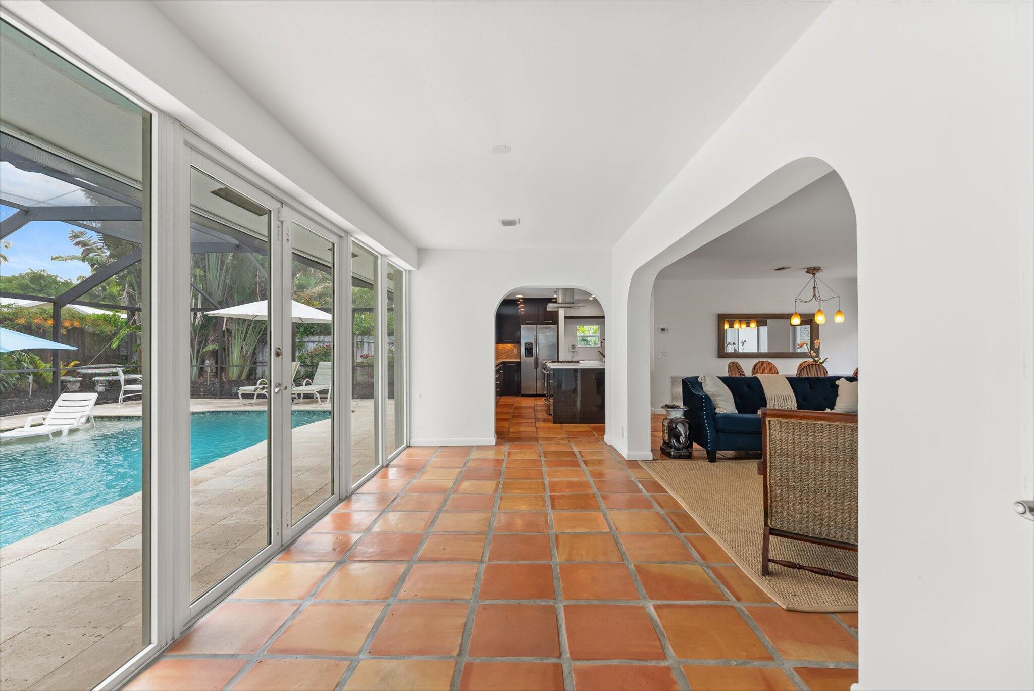 This charming 3/2 home is located in the highly desirable East Boca Raton community of Tunison Palms, a stones throw away from the magnificent Historic ''Old Floresta'' district, on a beautiful private, quiet street adorned with lush landscaping. The main living area is open and bright with a magnificent updated chef's kitchen featuring a caesarstone waterfall island, stainless steel appliances, custom Italian cabinetry, and brushed glass. The backyard is nothing short of an oasis, offering a custom salt-water pool with sun shelves and bubblers set on a travertine deck with an outdoor shower and hot tub, amidst numerous fruit and flower trees. The elegant Primary Bedroom, offers both an updated en-suite bathroom with steam shower, and a custom walk-in closet.Location! Location! Location!