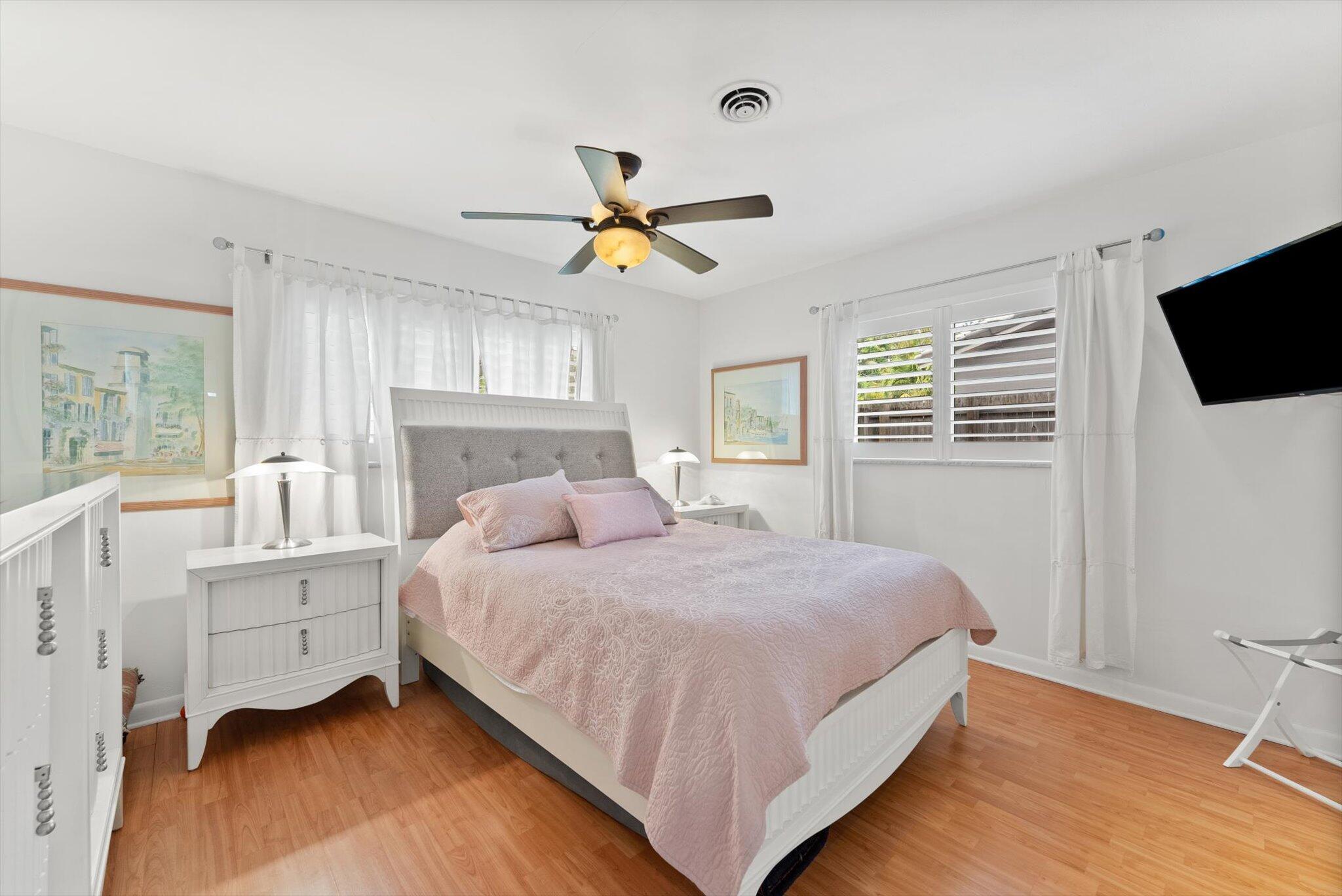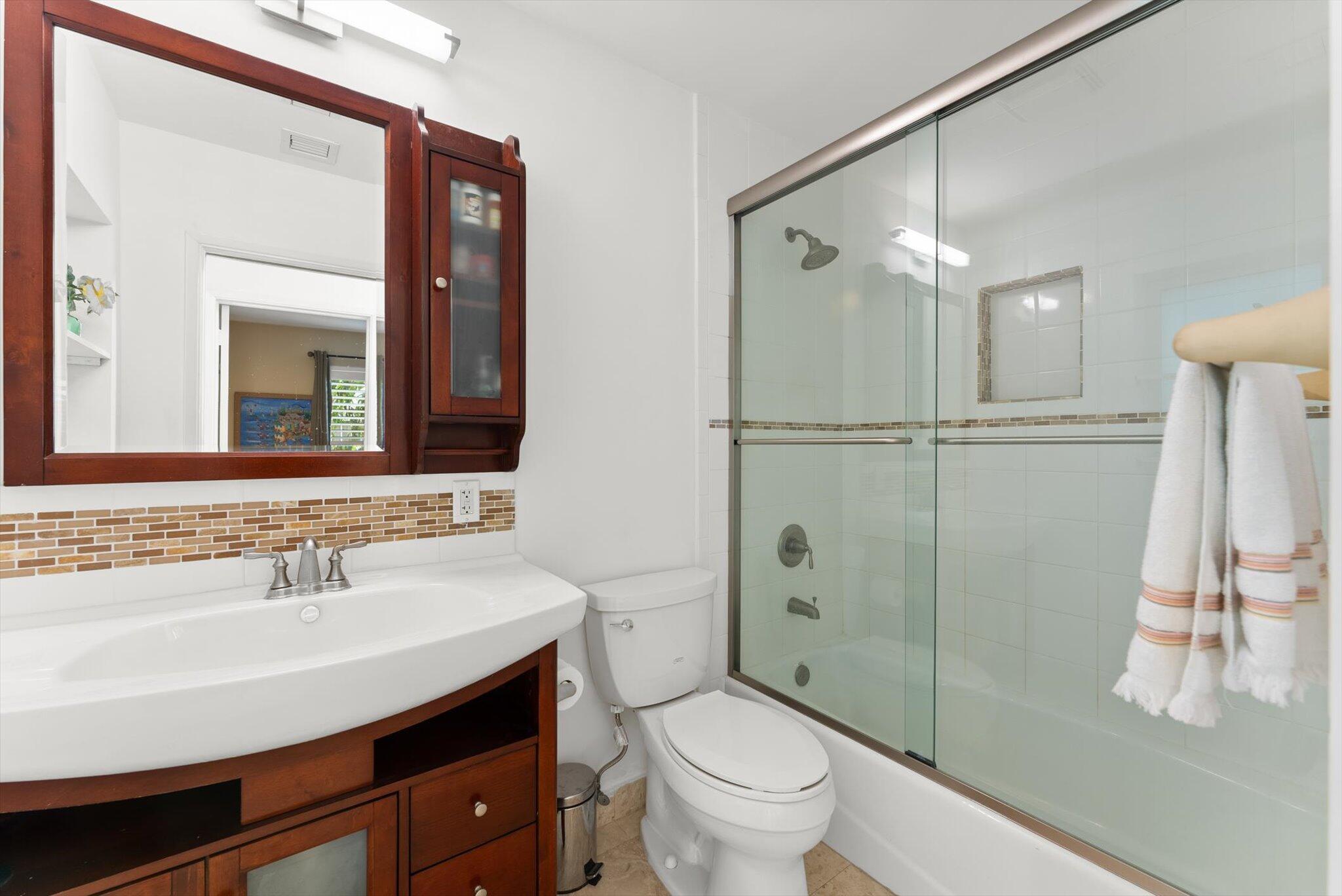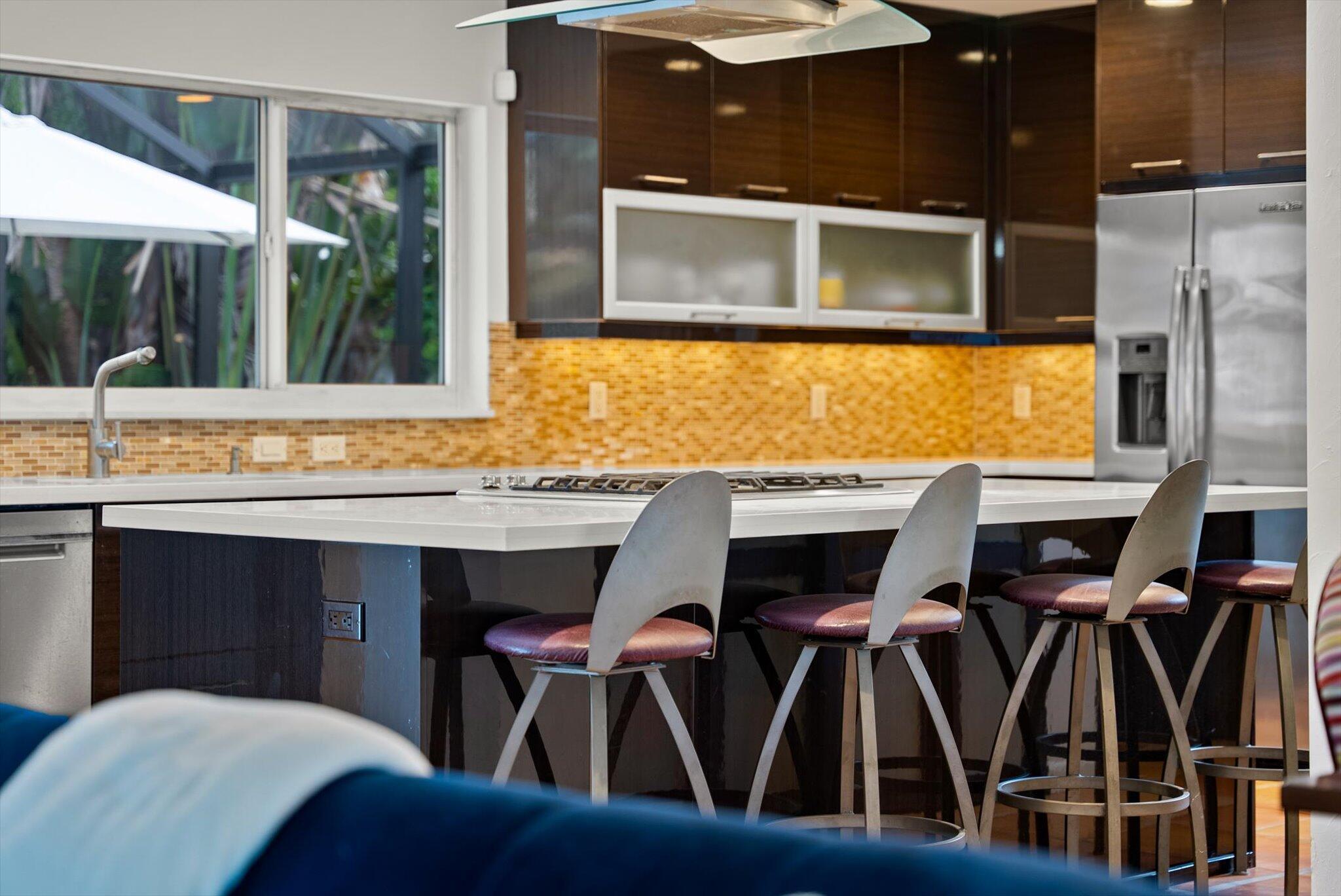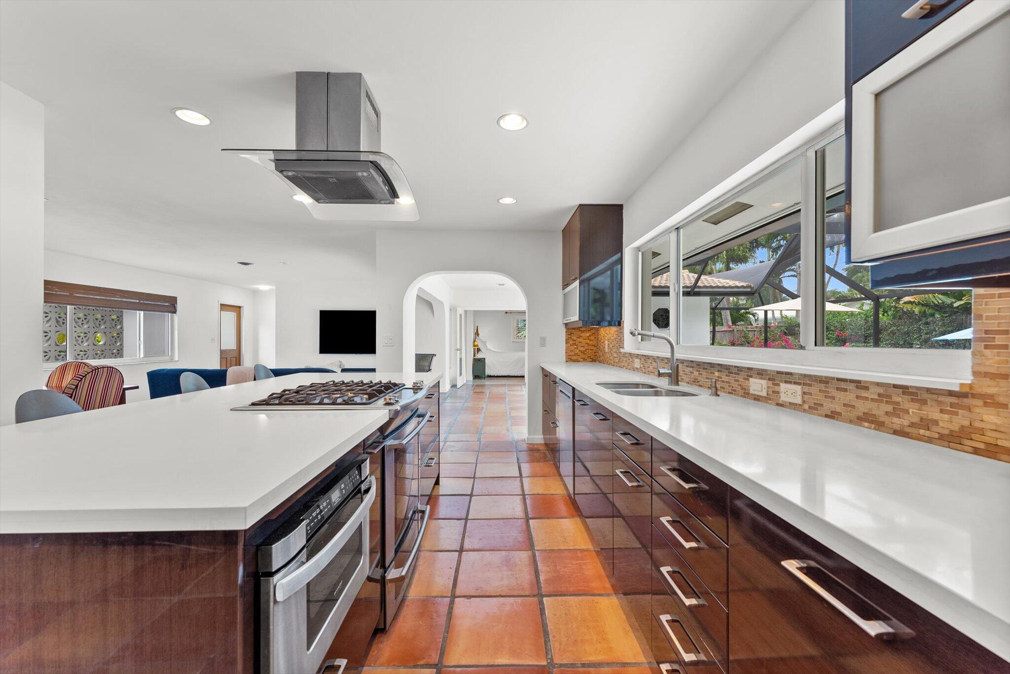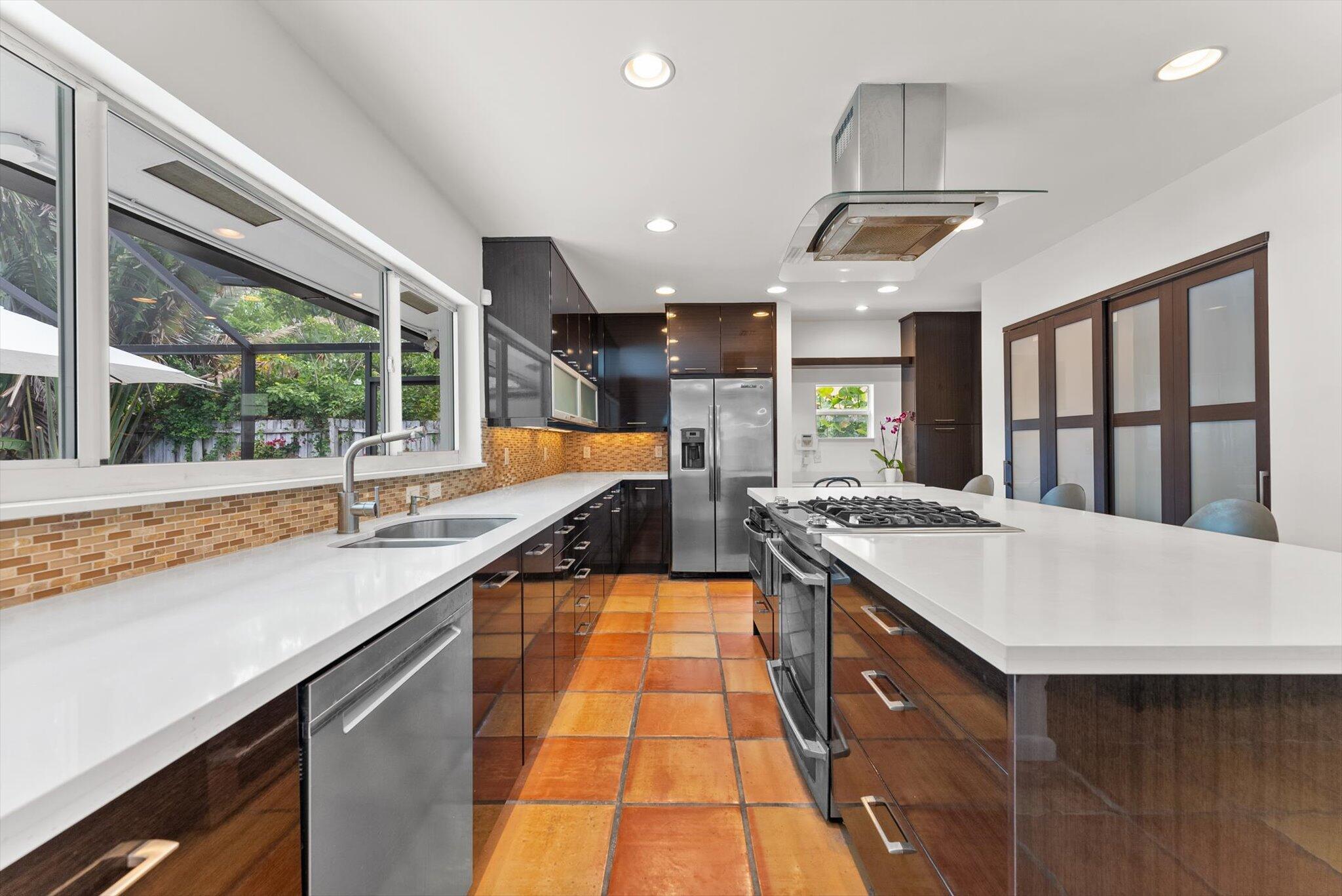 This charming 3/2 home is located in the highly desirable East Boca Raton community of Tunison Palms, a stones throw away from the magnificent Historic ''Old Floresta'' district, on a beautiful private, quiet street adorned with lush landscaping. The main living area is open and bright with a magnificent updated chef's kitchen featuring a caesarstone waterfall island, stainless steel appliances, custom Italian cabinetry, and brushed glass. The backyard is nothing short of an oasis, offering a custom salt-water pool with sun shelves and bubblers set on a travertine deck with an outdoor shower and hot tub, amidst numerous fruit and flower trees. The elegant Primary Bedroom, offers both an updated en-suite bathroom with steam shower, and a custom walk-in closet.Location! Location! Location!